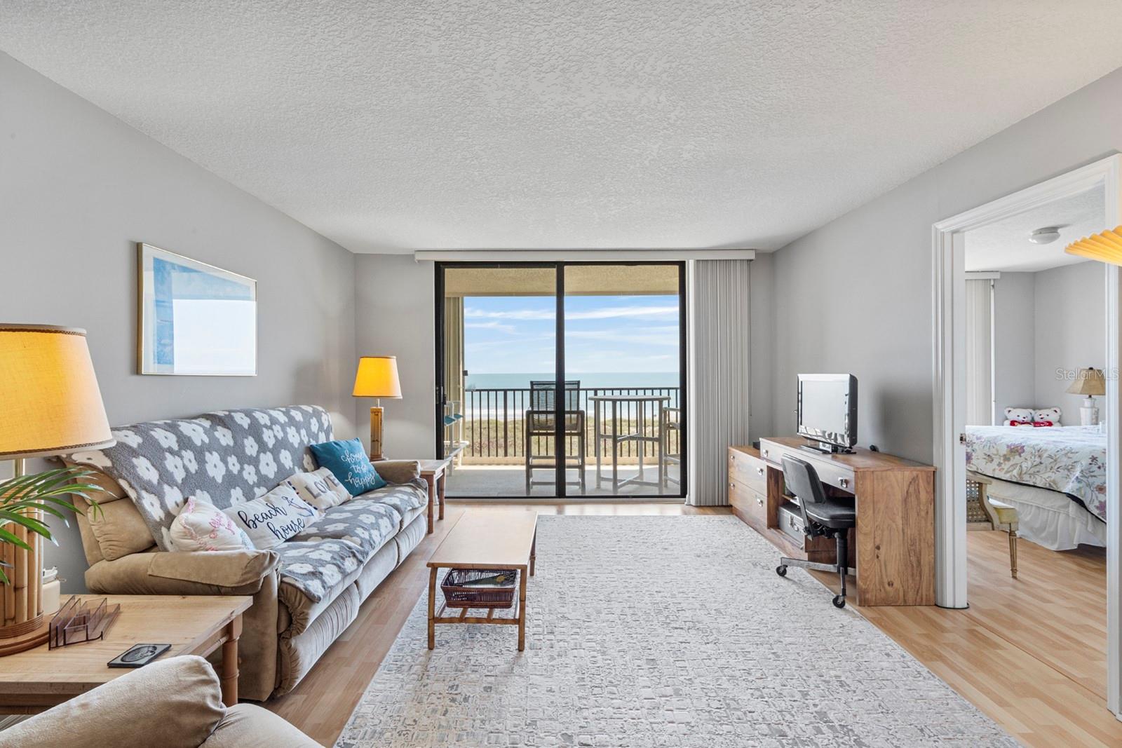 Wake up to breathtaking sunrises and the soothing sound of waves in this direct oceanfront 2-bedroom, 2-bath condo located in desirable Cocoa Beach. This residence features a popular open-concept floor plan designed to capture stunning Atlantic Ocean views from the kitchen, dining area, living room, and primary suite. Large sliding glass doors lead to an expansive private balcony, perfect for enjoying ocean breezes, watching dolphins play, or relaxing with your morning coffee. The split-bedroom layout offers privacy, with a spacious primary suite featuring balcony access, walk-in closet, and ensuite bath. Offered fully furnished and turnkey, this condo is move-in ready with renovated kitchen and baths and laundry in unit. Royale Towers offers resort-style amenities including a heated pool and spa, clubhouse, fitness center with sauna, tennis and pickleball courts, shuffleboard, and gated private beach access. Additional features include hurricane shutters, car wash stations, and a private enclosed garage with one assigned parking space. Ideally located near Port Canaveral for rocket launches and curise ship watching, shopping, dining, and just an hour from Orlando attractions, this is your chance to own a piece of Florida’s Space Coast lifestyle.