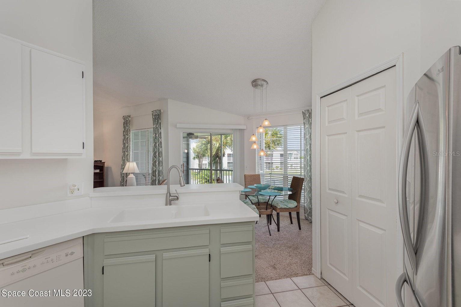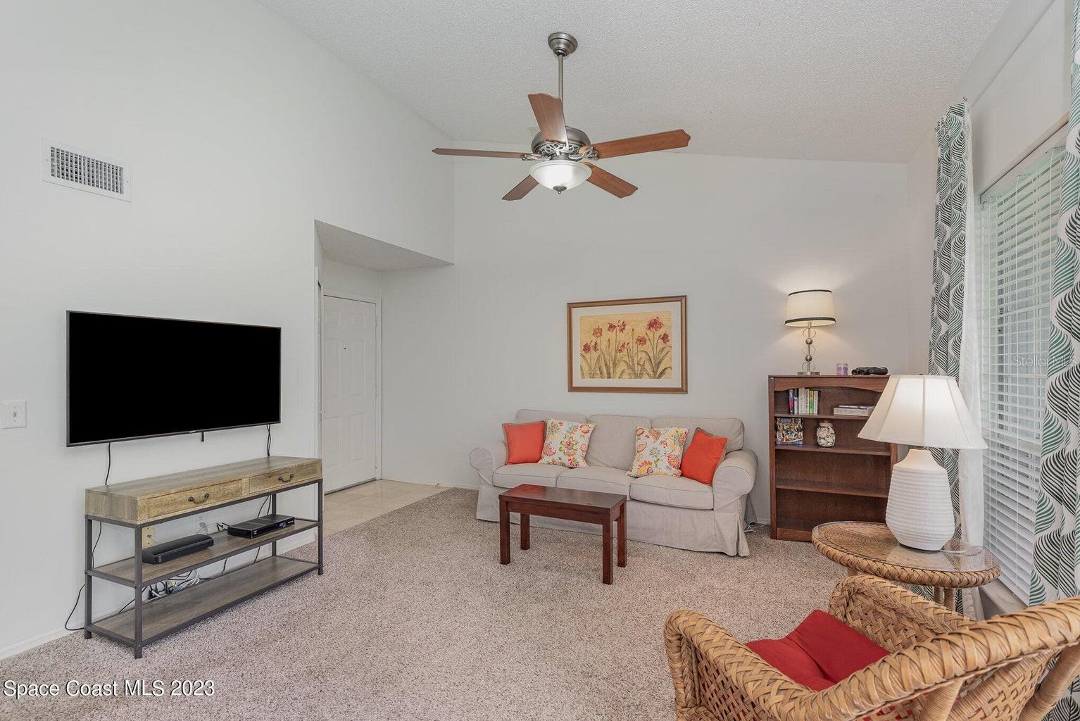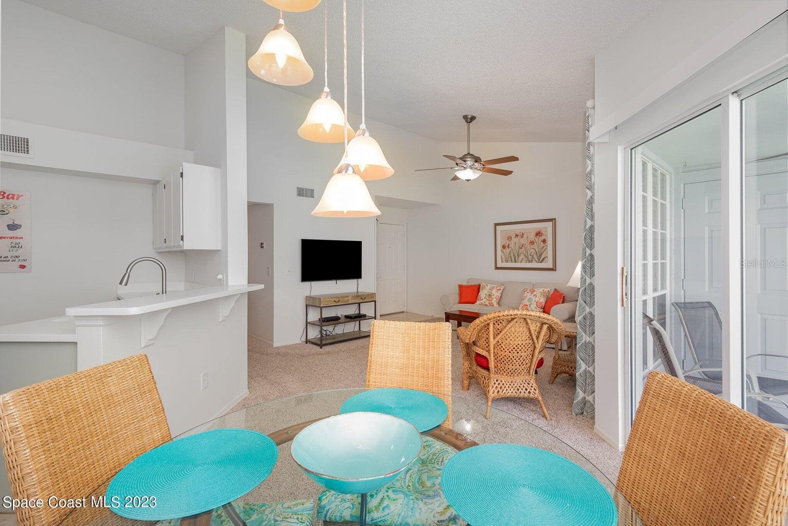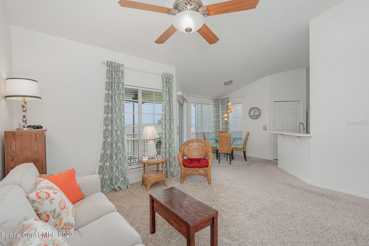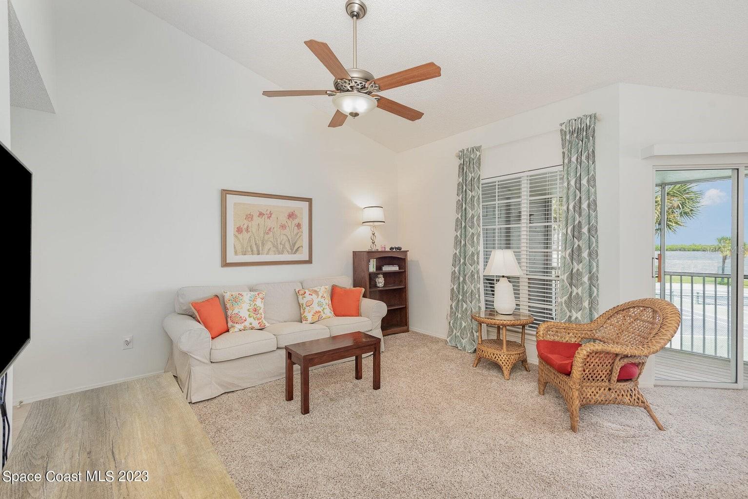 Your perfect 2/2 condo w/ DIRECT INDIAN RIVER views & FRONT ROW seats to ROCKET LAUNCHES. You cannot find a direct waterfront condo as great as this, within this price range, in Brevard County! Don't miss out on this one! 2 bed, 2 bath second story condo with gorgeous vaulted ceilings. Enjoy a cup of coffee watching the sunrise, dolphins frolic, gentle giant manatees pass-by and various sea birds from your screened balcony. After coffee step out back for a game tennis or pickleball with your neighbors. Better yet, simply watch the fun while you relax. The large grassy lawns of Sunrise Landing plus 3 fishing piers, 2 large pools, 2 in-ground spas and dry saunas CATER to your CAREFREE lifestyle. It's THE perfect Florida condo. Fullly furnished sale is optional.