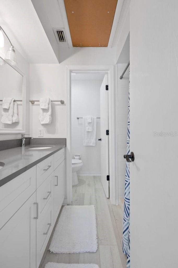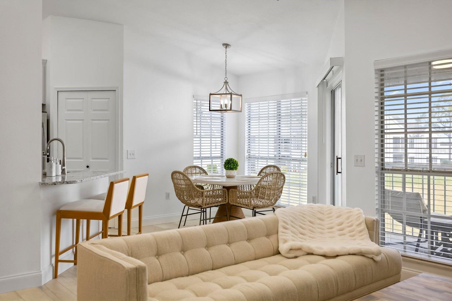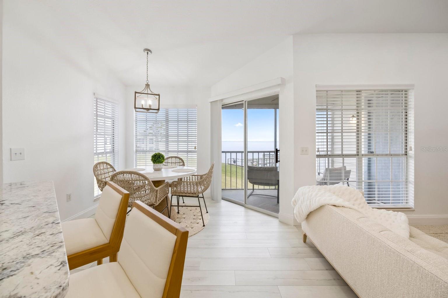 Imagine relaxing while enjoying the peaceful view and calming breeze from the Indian River and the occasional excitement of witnessing incredible Rocket Launches into space from your very own screened in balcony!! This stunning turn-key waterfront condo was beautifully updated in 2022. Upon entering the natural light-filled home the expansive view of the intracoastal waterway will captivate you. The vaulted ceiling creates a sense of spaciousness and you will certainly enjoy being on the top floor with no upstairs neighbors! The tasteful renovations include upscale features such as luxury vinyl plank flooring, granite kitchen countertops, stainless steel appliances, recessed lighting, ceiling fans, and quartz bathroom countertops. A brand new water heater was installed in 2022. New attic pull-down stairs lead to a surprisingly HUGE ATTIC STORAGE space; there's plenty of room for suitcases, holiday decorations, and treasured memorabilia. Water, Trash, Cable & Internet included in HOA.