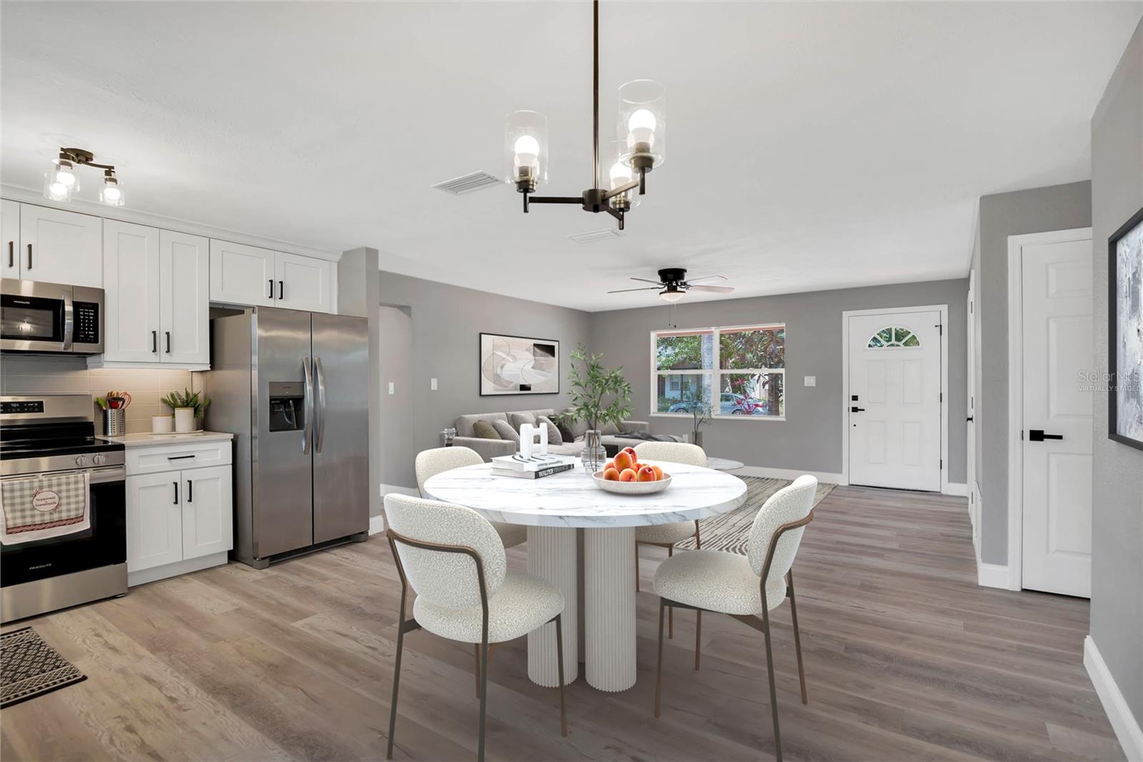 One or more photo(s) has been virtually staged. Recent Price Improvement! Charming Renovated Single-Family Home in Cocoa, Florida. Welcome to your dream home! This beautifully renovated single-family residence in Cocoa, Florida, offers the perfect blend of modern upgrades and classic charm. Boasting 3 spacious bedrooms and 3 pristine bathrooms, this home provides 1,404 square feet of comfortable living space designed to meet all your needs. Step inside to discover a bright and airy open floor plan with a convenient split layout, ensuring privacy and functionality. The entire home features brand-new, durable vinyl flooring that adds a touch of elegance to every room. The heart of this home is its stunning kitchen, complete with gleaming quartz countertops, contemporary new cabinets featuring soft-close drawers, and top-of-the-line stainless steel appliances. Whether you're a seasoned chef or love casual cooking, this kitchen is a true delight. NEW air conditioning unit and NEW ROOF, providing peace of mind for years to come. Freshly painted interiors and exteriors add to the home's pristine condition, while the thoughtfully designed landscaping enhances curb appeal and creates a serene outdoor oasis in both the front and rear yards. Located in a desirable Cocoa neighborhood, this home is close to local amenities, schools, and recreational facilities. Don't miss your chance to own this exceptional property – schedule your viewing today and make this beautiful house your new home before it's gone!