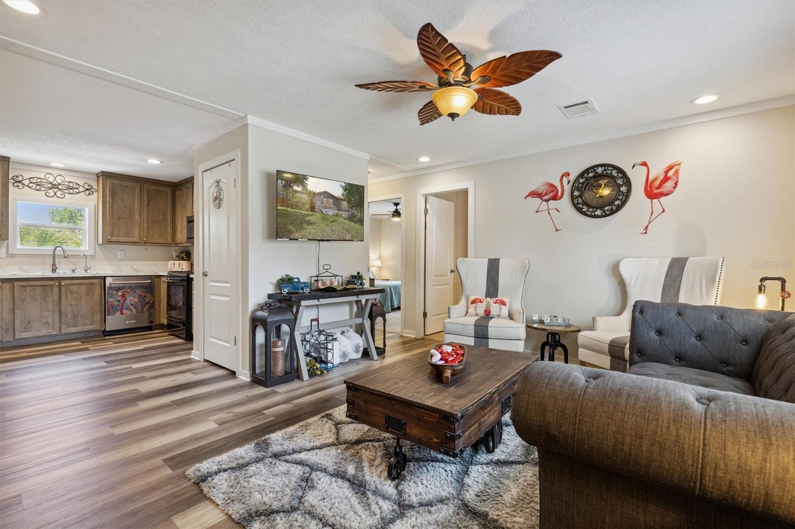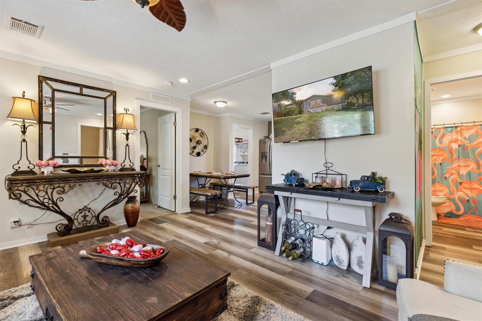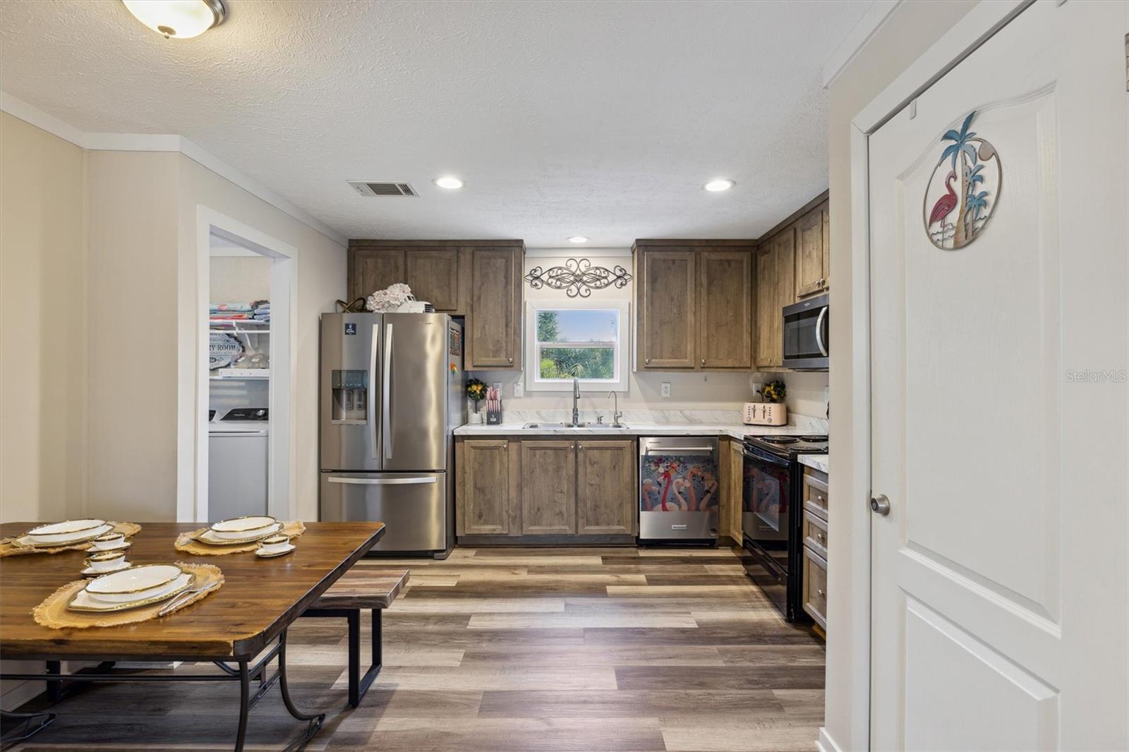 Nestled in the heart of Cocoa, this residence, built in 2020, offers the perfect blend of modern amenities and convenience. Recently upgraded with meticulous attention to detail, this home boasts a host of desirable features that are sure to impress. New kitchen with sleek stainless steel appliances, perfect for culinary enthusiasts. A convenient new washer and dryer ensure hassle-free laundry days. Enhanced with a sprinkler system for easy lawn maintenance. Accessible ramp to the back door, providing added convenience and inclusivity. RV outlet for those with adventurous spirits. Stylish vinyl plank flooring in the living area and laundry room, offering both durability and aesthetic appeal. Enjoy privacy and security with a fenced yard and a handy storage shed for all your outdoor essentials. 35-minute drive from Orlando International Airport, Only 17 minutes away from the Port Canaveral and Kennedy Space Center. there is an option to purchase fully furnished.
