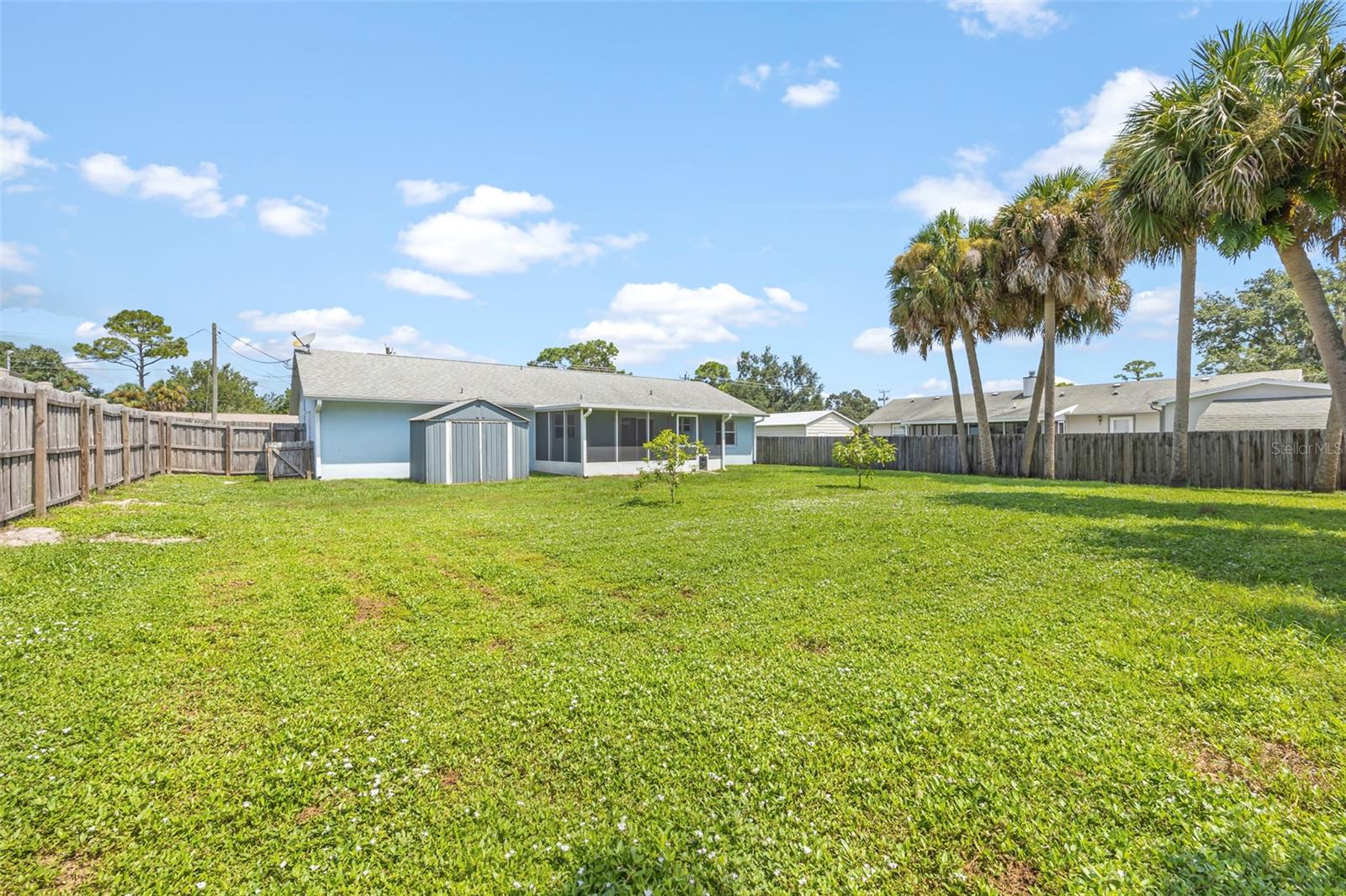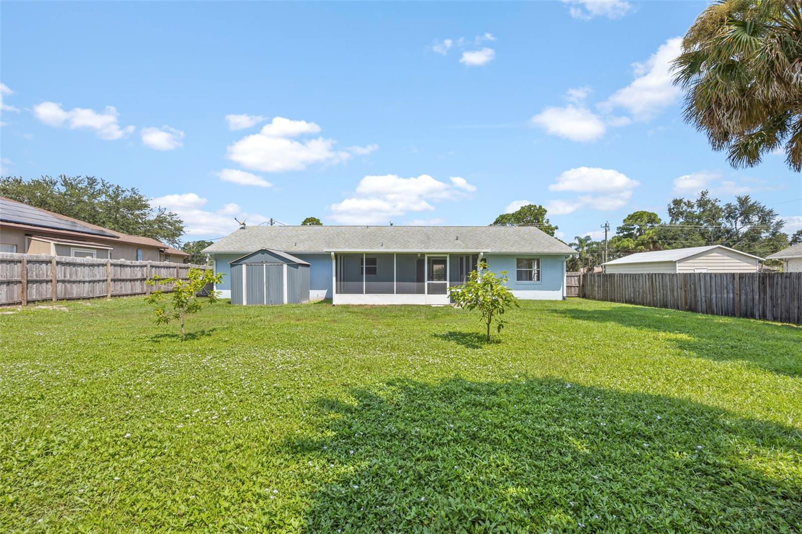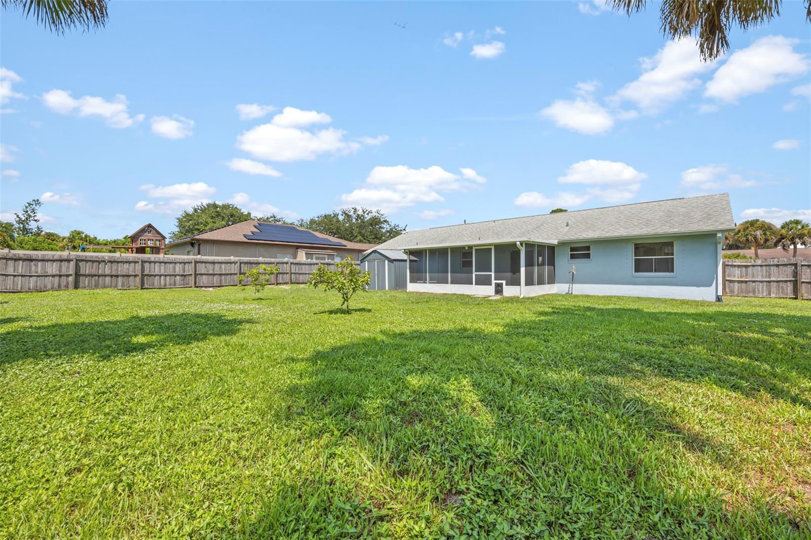 Welcome to your perfect starter home! This charming three bedroom two bathroom residence has been freshly painted inside and offers an open split floor plan with formal living room and dining room, updated kitchen with solid wood cabinets, master suite with walk-in closet and newly remodeled shower. Step outside to discover the enclosed screened in patio, a perfect spot to enjoy your morning coffee. The fully fenced in backyard offers privacy making it a great space for children and pets. Great location and close to schools. Minutes to local boating, fishing & beaches, quick access to I-95 for a short commute to Orlando & all it's attractions!