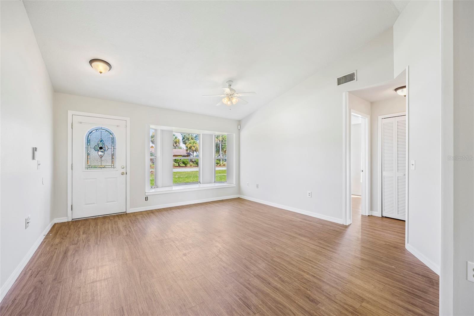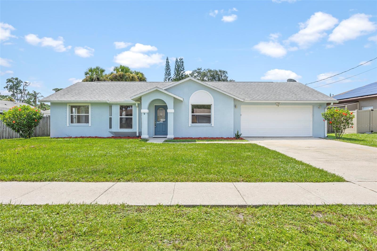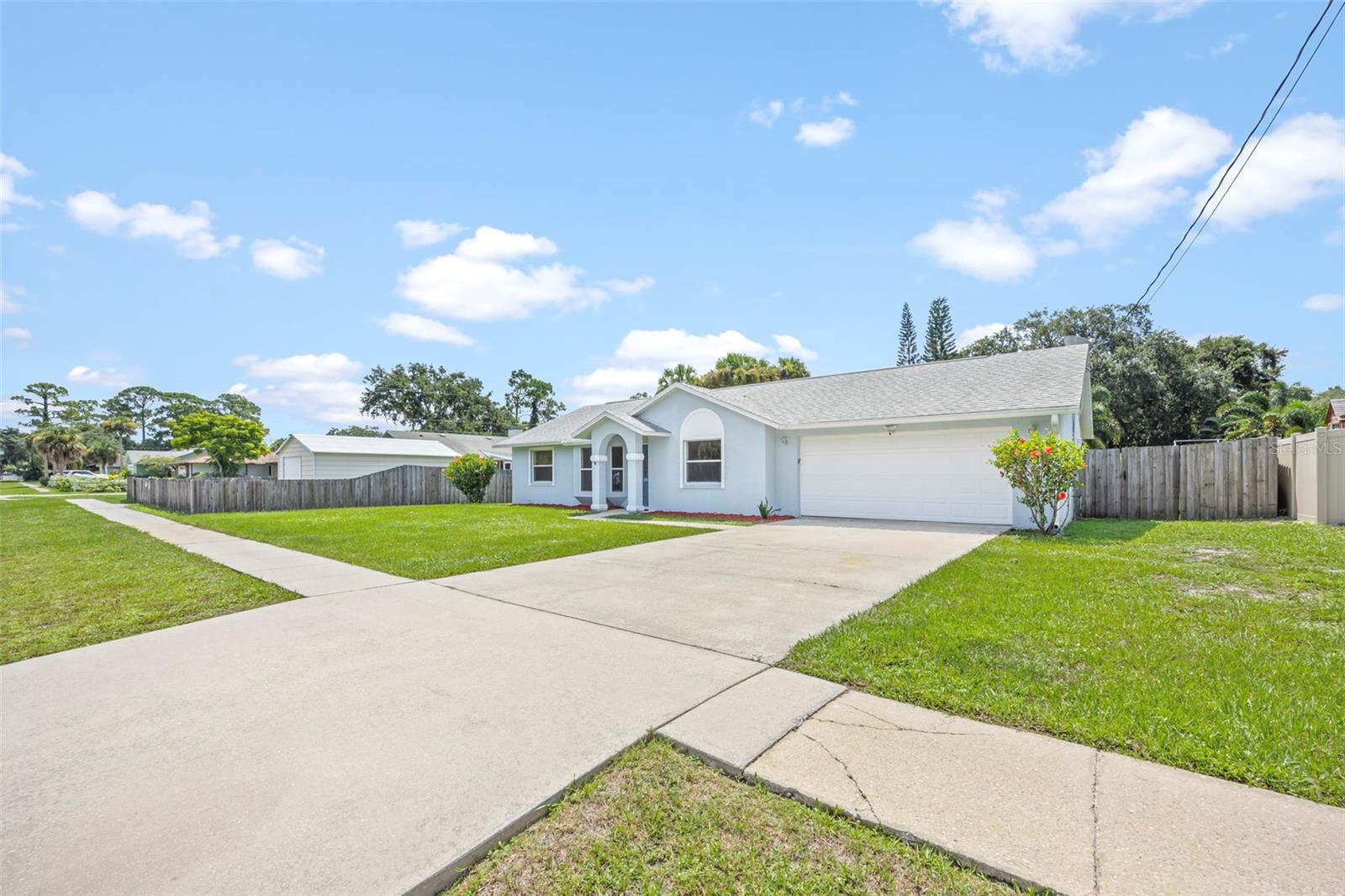 Welcome to your perfect starter home! This charming three bedroom two bathroom residence has been freshly painted inside and offers an open split floor plan with formal living room and dining room, updated kitchen with solid wood cabinets, master suite with walk-in closet and newly remodeled shower. Step outside to discover the enclosed screened in patio, a perfect spot to enjoy your morning coffee. The fully fenced in backyard offers privacy making it a great space for children and pets. Great location and close to schools. Minutes to local boating, fishing & beaches, quick access to I-95 for a short commute to Orlando & all it's attractions!