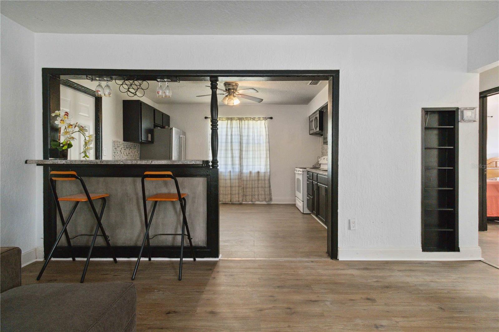 : Welcome to this updated 2-bedroom, 1-bathroom home in the heart of Cocoa! Step inside to find an open and airy living area featuring new flooring throughout, perfect for relaxing or entertaining. The updated kitchen has a stylish backsplash, breakfast bar, and all appliances included. Enjoy meals in the cozy eat-in kitchen with views of your private, fenced backyard - an ideal space for outdoor gatherings or a quiet retreat. The two bedrooms share an updated bathroom, providing a fresh and inviting feel. Nestled in an established neighborhood, this home offers charm, comfort, and convenience. Don't miss out - schedule your showing today and see why this gem is waiting for you!