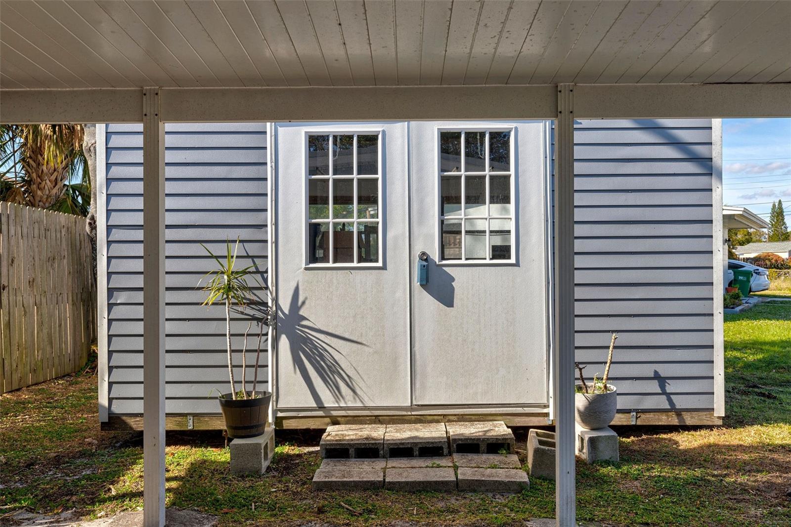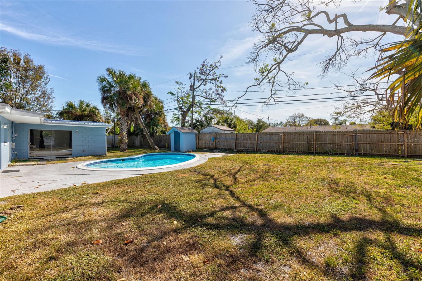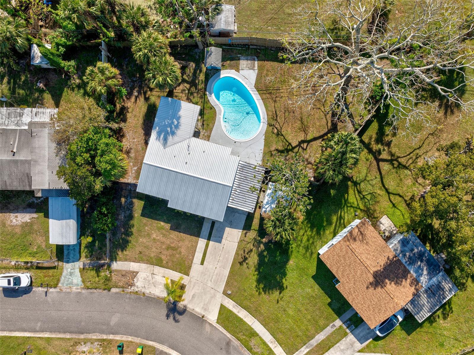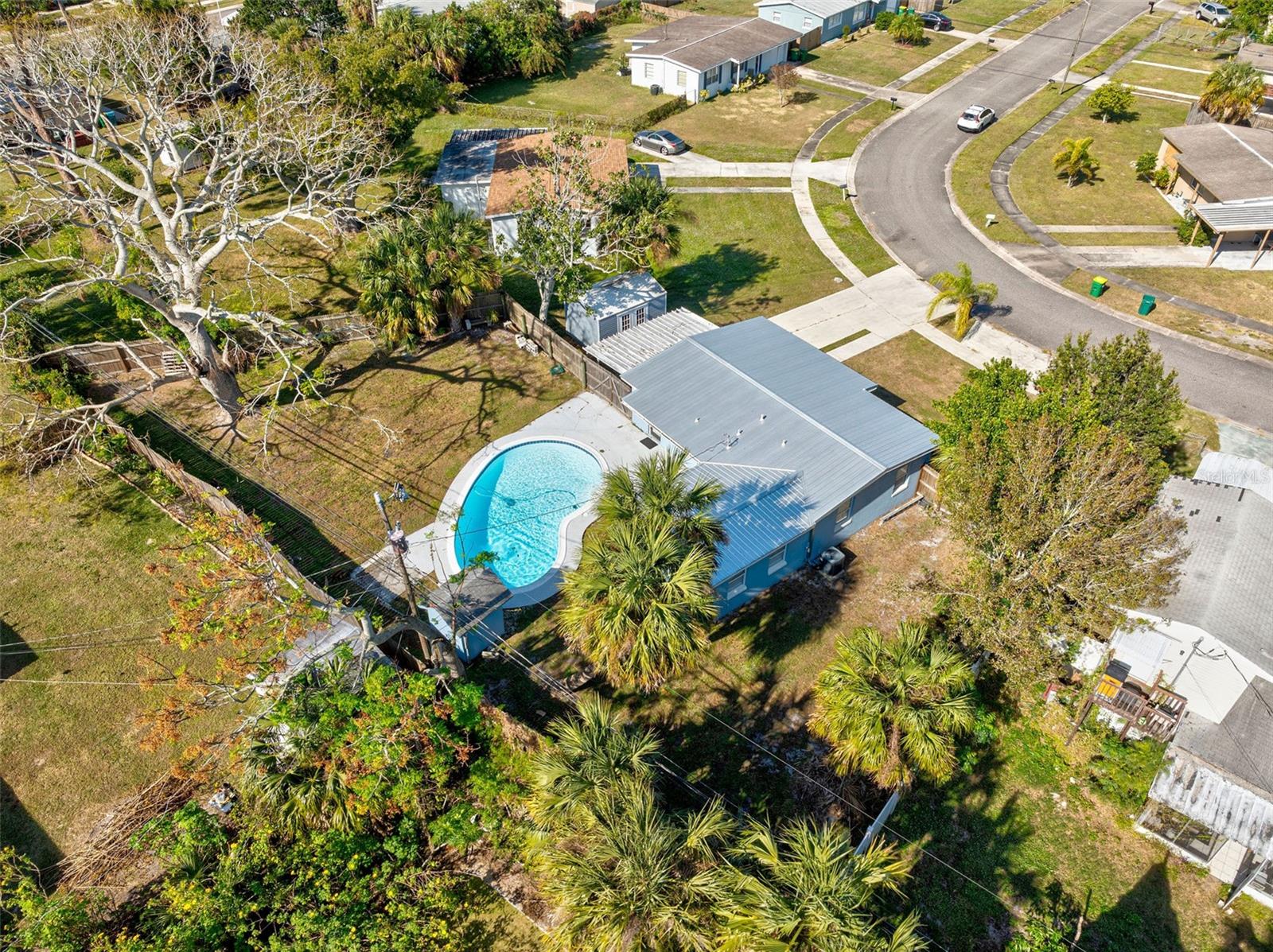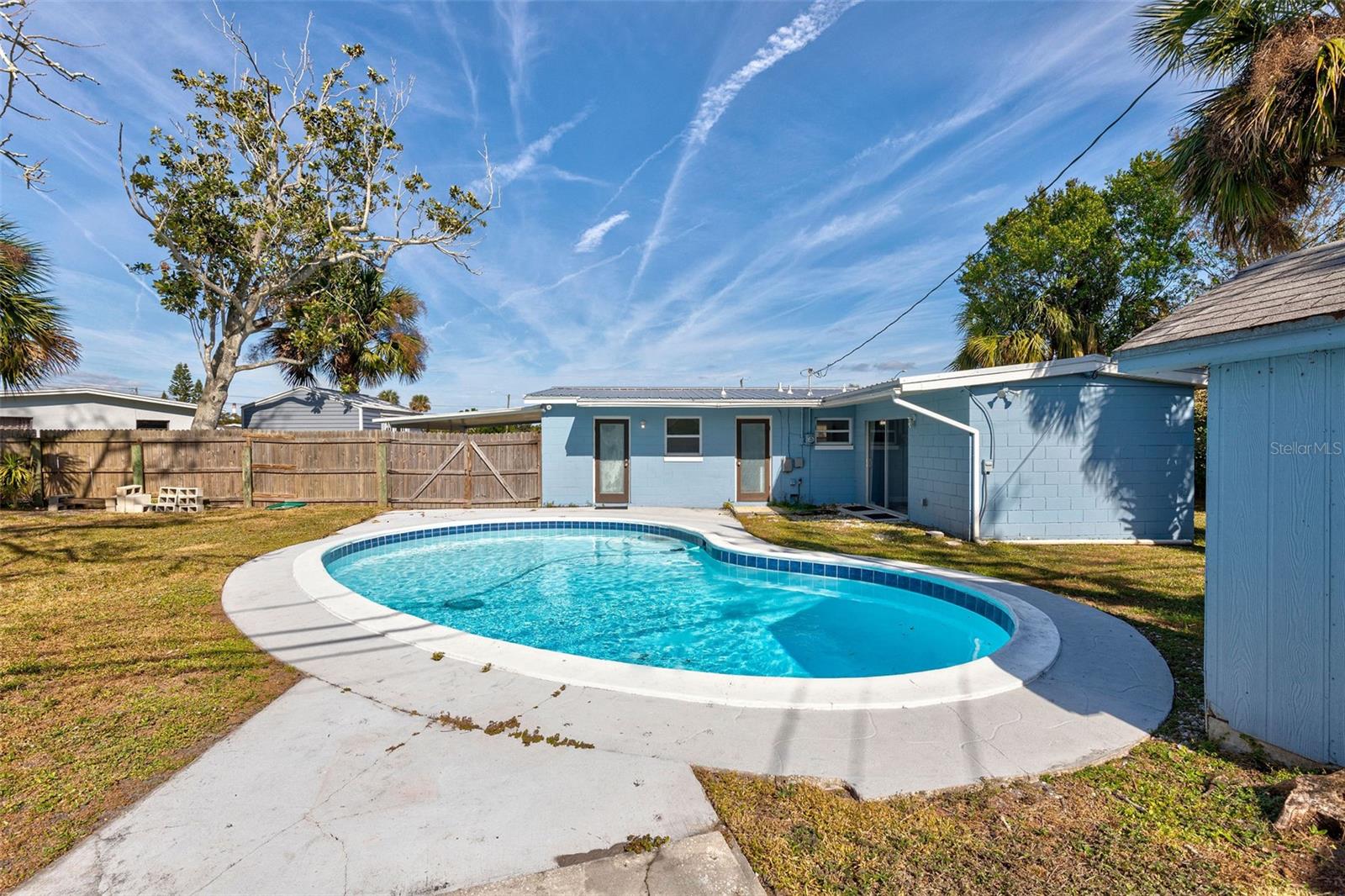 Welcome to this stunning single-family home in Port St John that includes 2 bedrooms, 2 baths and an inground POOL, with a plethora of desirable features. Kitchen has solid wood cabinets and granite countertops, Stainless Energy efficient appliances. Stacked Washer/Dryer included. Fully tiled throughout. TV's in living room and primary bedroom are included as well. Plumbing was updated and cast iron sewer pipes were replaced by the former owner. New Additions since include: NEW METAL ROOF 2021. A/C & Water Heater- 2020. Also, New Storage shed with 5 yr warranty and Electric capability,(not connected), for storage,workroom or hobbies. The pool is fully fenced for privacy in the spacious backyard that will allow you to entertain your family and guests. Centrally located with easy access to US 1, Nicol Park, Hwy I-95, Space Port, and the Beachline. Owner is motivated.