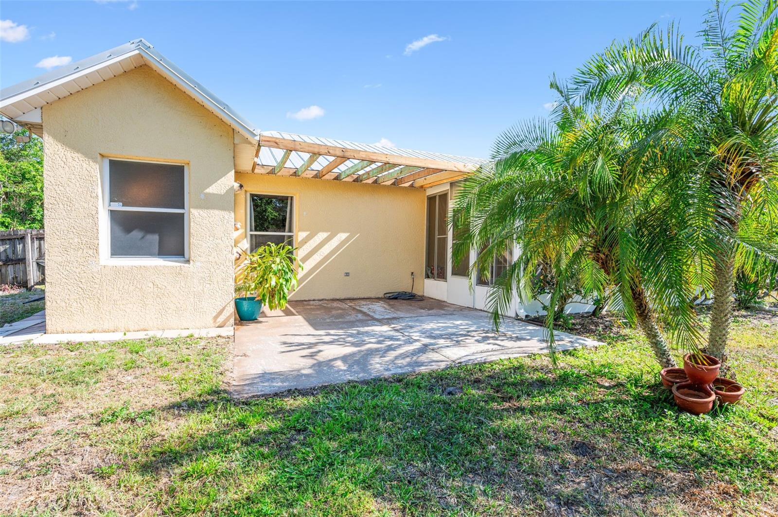 Beautifully maintained and impeccably cared for concrete block home offers the perfect blend of durability, comfort and modern style. A metal roof provides exceptional longevity, minimal maintenance, and savings on energy bills. Step inside to an open-concept layout featuring vaulted ceilings in the living room and kitchen, creating a bright and spacious atmosphere. The split-bedroom design offers added privacy, with the master suite tucked away for peace and quiet. The master bedroom includes a walk-in closet for extra storage. Move-in ready home boasts clean finishes and meticulous upkeep throughout. Outside, enjoy a large, fully fenced backyard-ideal for relaxing or entertaining. The updated patio , enclosed with both screens and vinyl windows, offers a peaceful retreat. Perfectly situated near the Space Center, schools, I-95, beaches, shopping and local sports fields. This home delivers convenient access to everything the Space Coast has to offer.