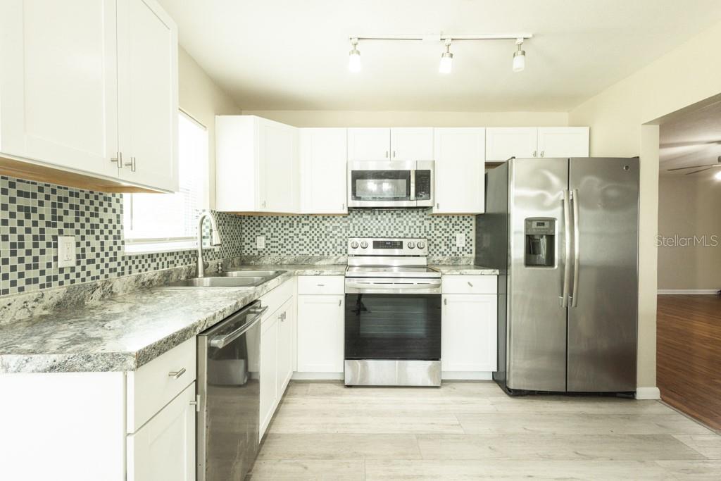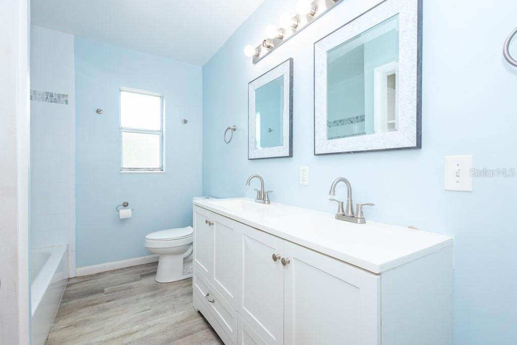 Welcome to this charming 4 bedroom/2 bath home with single car garage. Natural light, from the many big windows, reflects beautifully on the refinished, original hardwood flooring throughout. You're oversized, eat-in kitchen features modernized appliances, cabinetry, flooring and lighting and is open to the huge living room. Both renovated, master and hall baths contain dual vanities and tile. Large closets and new ceiling fans complete each of the four bedrooms. Other updates include, windows, electric panel, receptacles & switches, light fixtures, plumbing, hot water tank, privacy fence, NEW A/C. don't miss out on the opportunity to make this house your own!