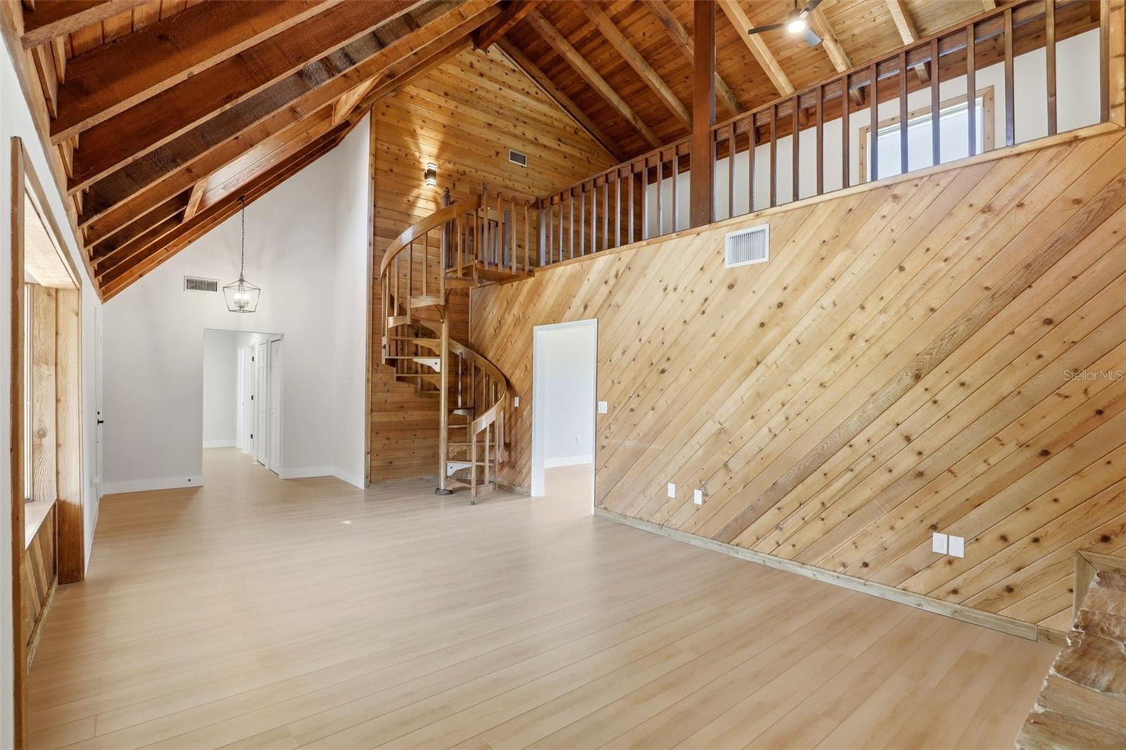 This beautifully renovated 4 bedroom, 3 bathroom home is located in a sought-after neighborhood of Cocoa and sits on an impressive 1.05 acre lot, offering exceptional space and privacy. From the moment you arrive, you’ll appreciate the gorgeous curb appeal, manicured landscaping, and the convenience of a 2-car attached garage. The property also includes a separate detached garage, perfect for extra parking, storage, a workshop, or hobby space. Inside, the home features brand new luxury vinyl flooring, modern light fixtures, and an open layout floor plan. The living room is highlighted by a charming stone-lined fireplace that creates a warm and inviting atmosphere. The updated kitchen is equipped with stainless steel appliances and quartz countertops, with a sliding glass door leading to the screened-in patio, complete with ceiling fans. Upstairs, an additional bonus area offers the perfect space for an office, playroom, or extra lounge area. Each bedroom offers ceiling fans, large windows, and abundant natural light. The primary bathroom has been beautifully renovated with a tile-lined walk-in shower and an updated vanity, providing a spa-like feel. The expansive backyard is ideal for gatherings, outdoor activities, or simply enjoying peaceful sunsets. With no HOA, you have the freedom to make the property your own. Conveniently located with quick access to I-95, Hwy 520, and Hwy 524, this home provides easy travel to beaches, fishing, hunting, the Space Center, Port Canaveral, and even Orlando. This is a rare opportunity to enjoy modern living on over an acre of land in a prime Cocoa location.