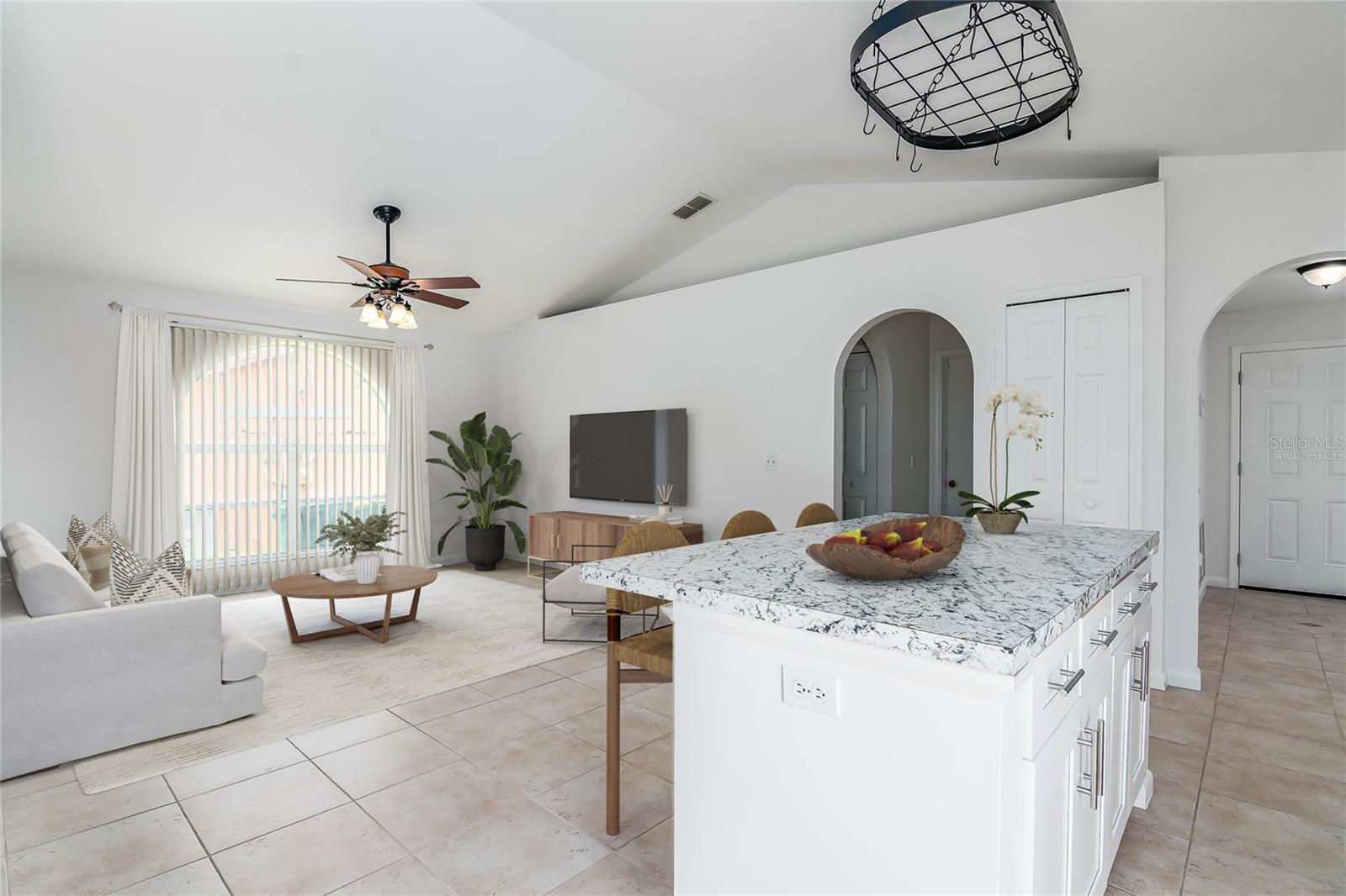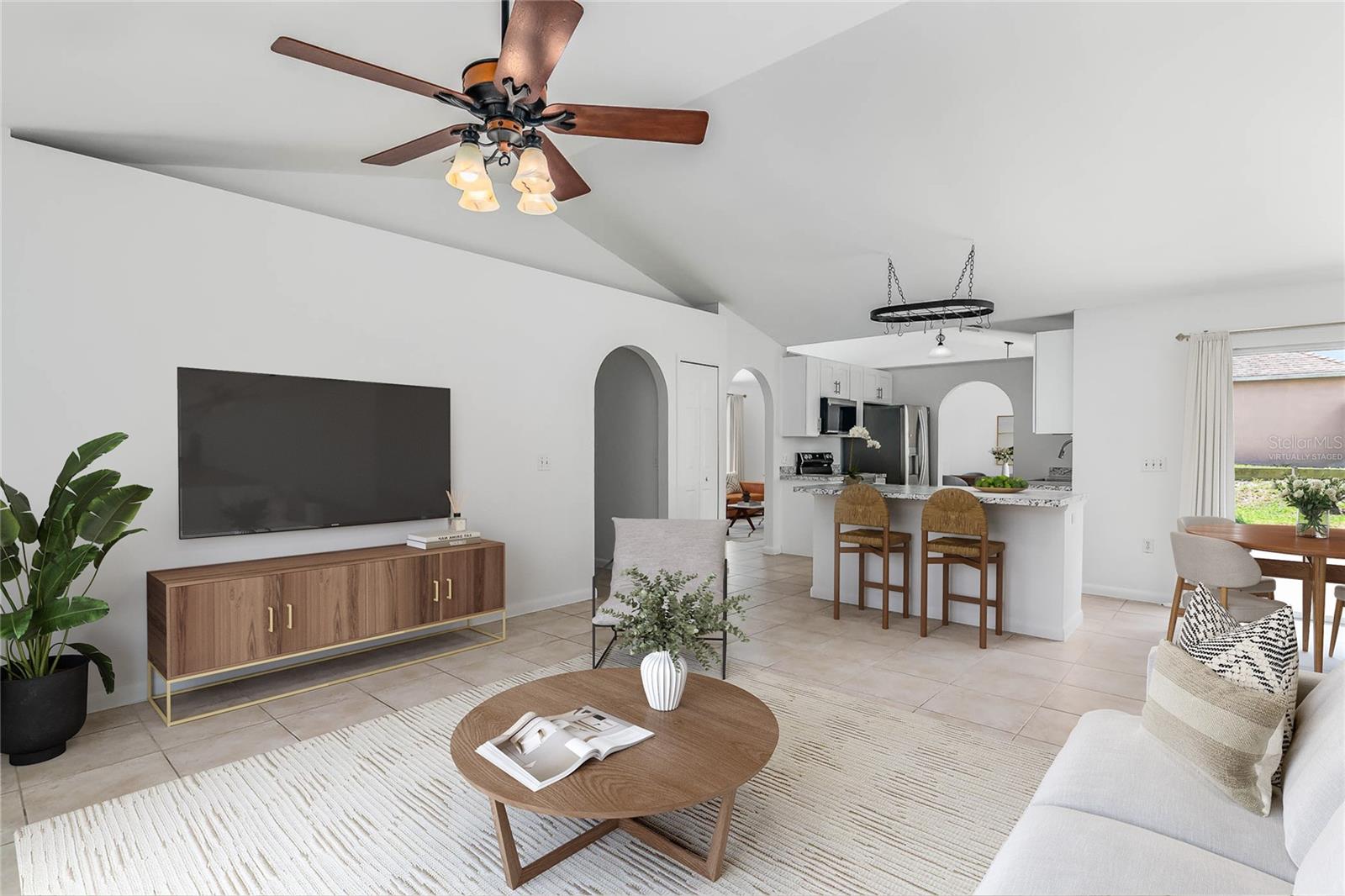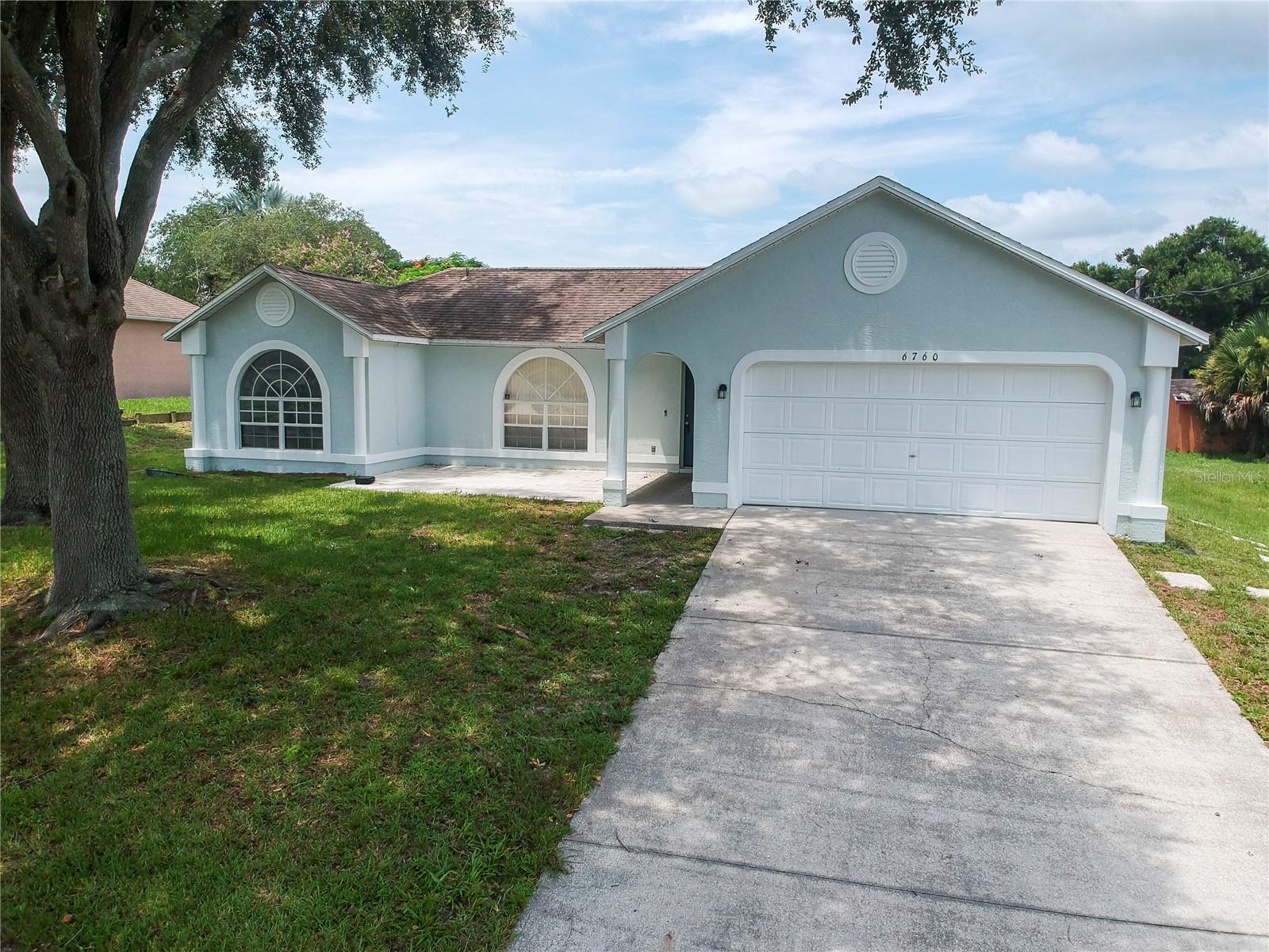 A new roof will be installed prior to closing. Major upgrades include a brand-new whole-house plumbing system and a newly installed septic system for peace of mind. No HOA! Discover your own private retreat in this updated 4-bed, 2-bath home offering comfort, flexibility, and freedom. Set in a tree-lined neighborhood, this move-in-ready residence feels welcoming from the moment you enter. The open living area is filled with natural light and features vaulted ceilings and tile flooring. The refreshed kitchen includes white cabinets, a center island, and a breakfast nook with sliding glass doors to the backyard. The primary suite is a relaxing escape with an updated en-suite bath and a walk-in closet. Fresh interior and exterior paint enhance the clean, modern feel. The spacious backyard provides privacy and room to relax or entertain. Conveniently located near shopping, dining, and parks, with easy access to Orlando, the beaches, and Kennedy Space Center, making daily living simple.