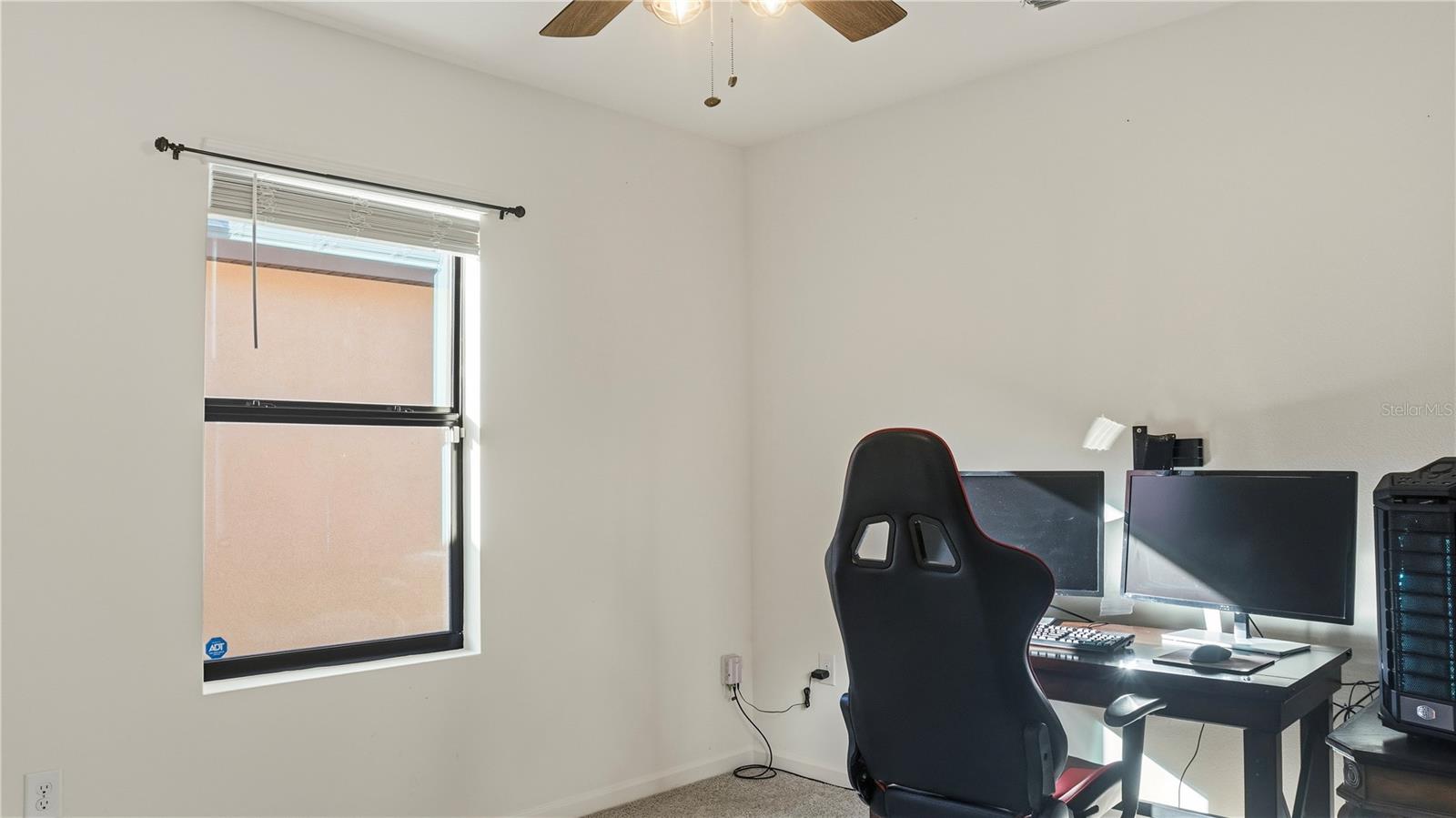 Welcome to the extended Cali, offering an open floor plan and a covered lanai with a beautiful water view. Easy access to the walking trail that leads to the community pool and playground. Your kitchen boasts a large walk-in pantry, a large island, and an open dining and living space to entertain. The owner's suite is ample, with a double-vanity bath and a large walk-in closet. Three additional bedrooms and the guest bathroom provide separate space to spread out. Each bedroom and the living area have ceiling fans. The garage has a built-in storage system for better organization. This home is wired for smart technology and a security system. The lawn features new sod, and the irrigation system is economical, utilizing its own well. Adamson Creek community is a quiet community with easy access to I-95, Cape Canaveral, beaches, and 30 minutes to Orlando International Airport.