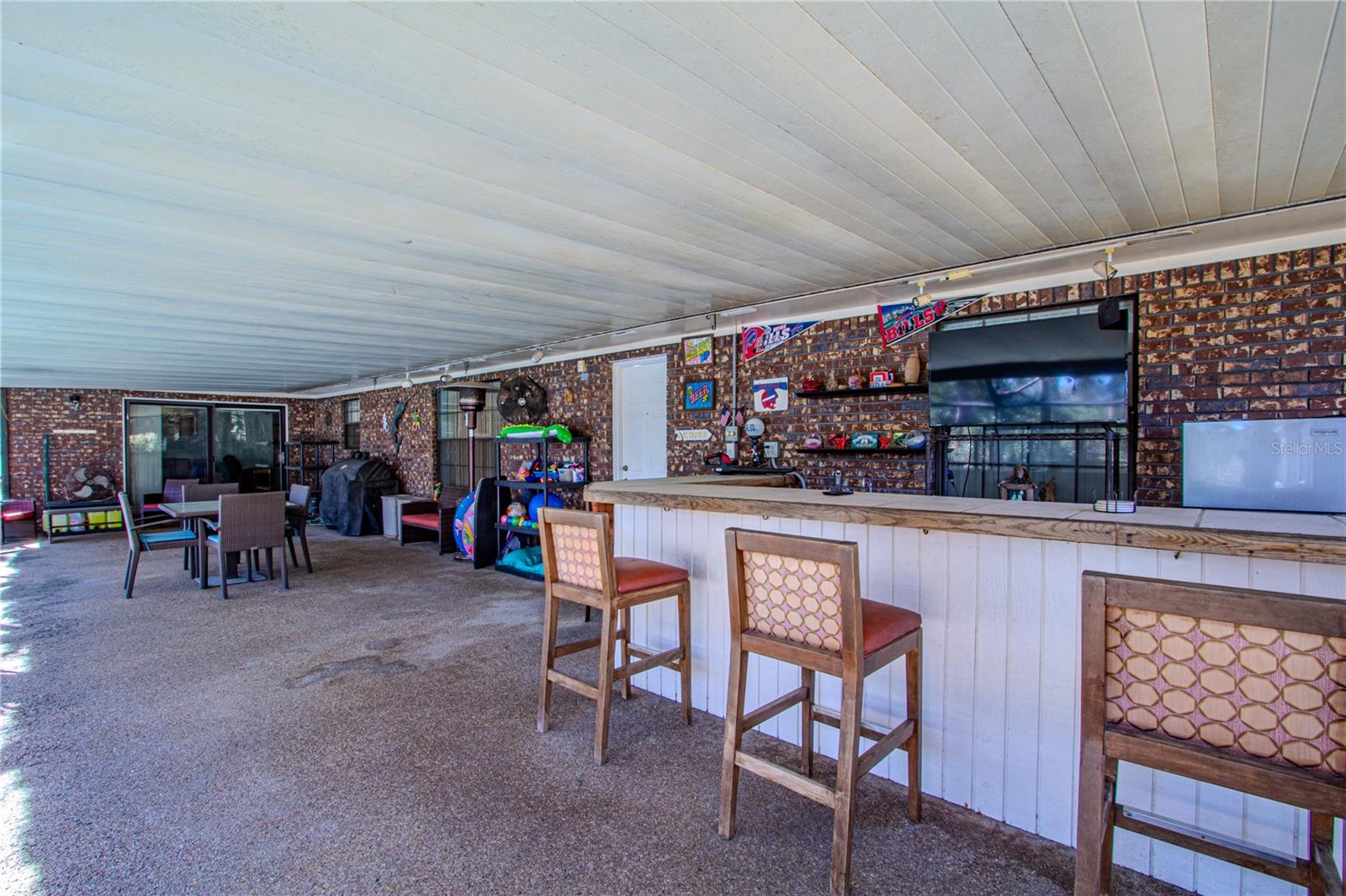 Classic Florida living with space to spread out—this solid one-story brick home offers 4 full bedrooms and 3 full bathrooms on a generous, tree-shaded lot with a long driveway and attached 2-car garage. Inside, enjoy a comfortable, open flow with a spacious family room featuring wood-look flooring, plus a large kitchen with ample cabinetry, plenty of counter space, and a center island/breakfast bar—ideal for everyday living and entertaining. Separate dining and living room areas provides extra flexibility for gatherings. The split layout is practical and family-friendly, including two bedrooms connected by a Jack-and-Jill bathroom, plus a convenient pool bath with direct access to the lanai/pool area—perfect for guests and outdoor living. Step outside to your private backyard oasis: a screened-in pool with an expansive deck and a huge covered lanai, complete with a bar/entertaining area for weekend cookouts, game days, and relaxing Florida evenings. Major updates in 2025 include a NEW roof and a NEW septic system, providing peace of mind for the next owner. Come see the setting, the layout, and the ultimate outdoor living setup!