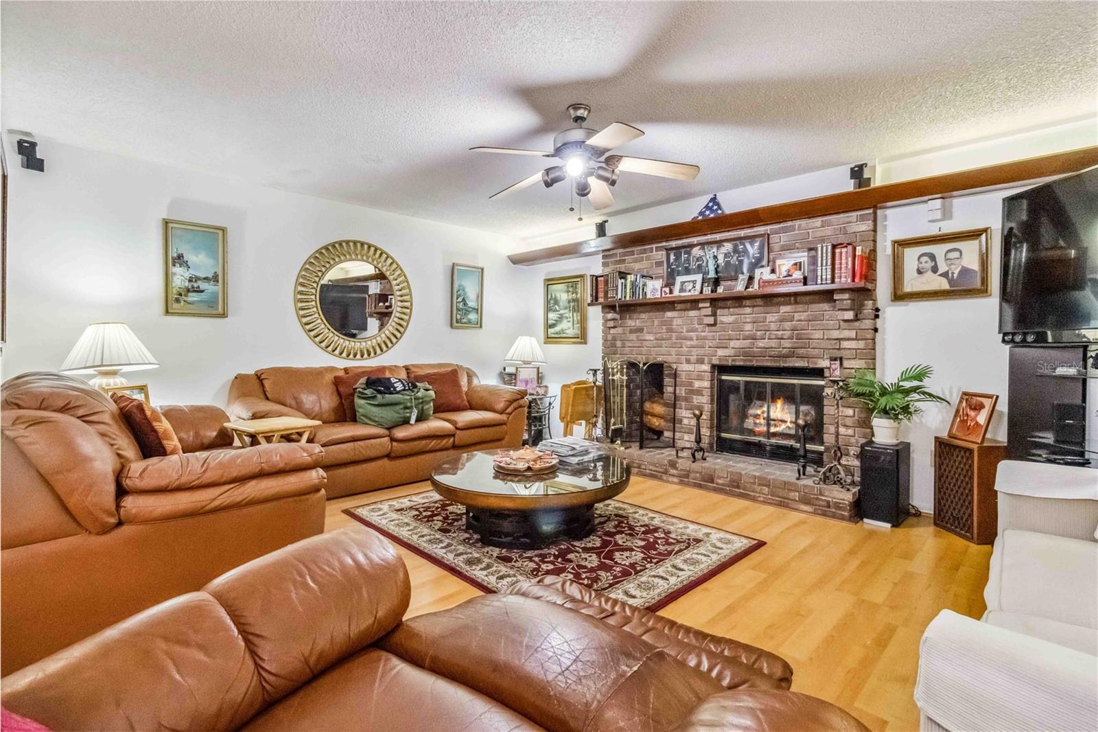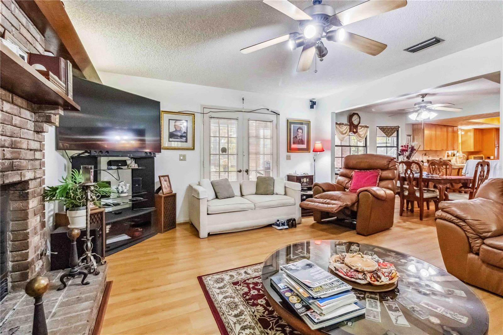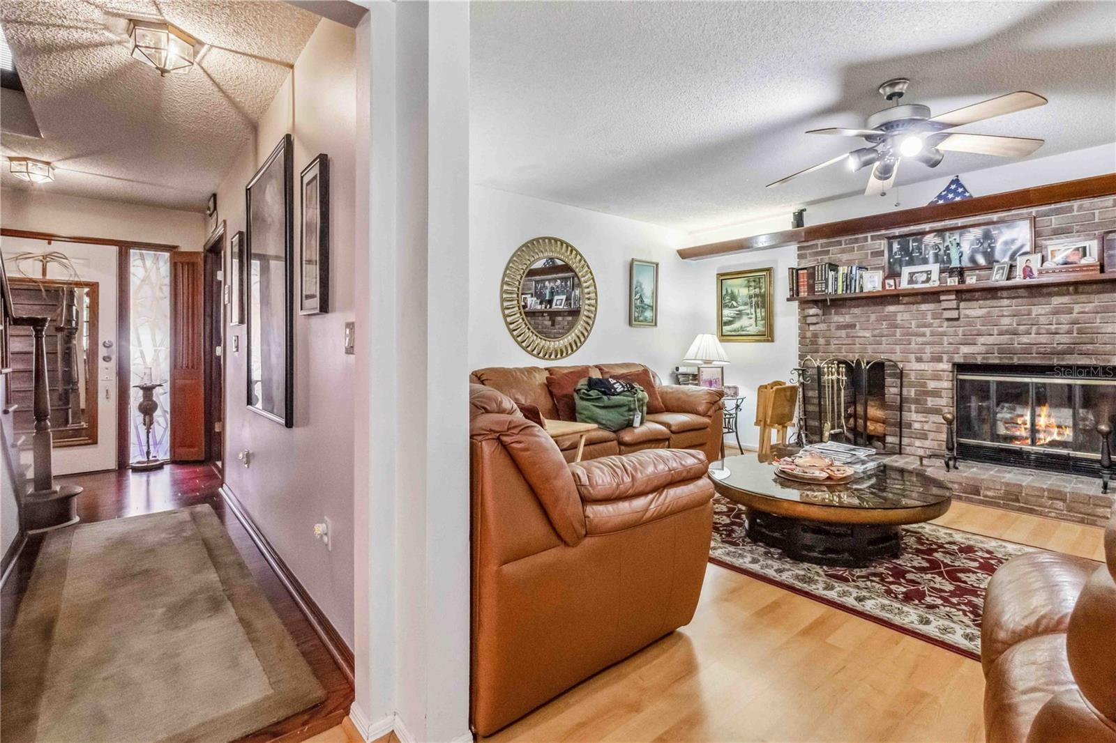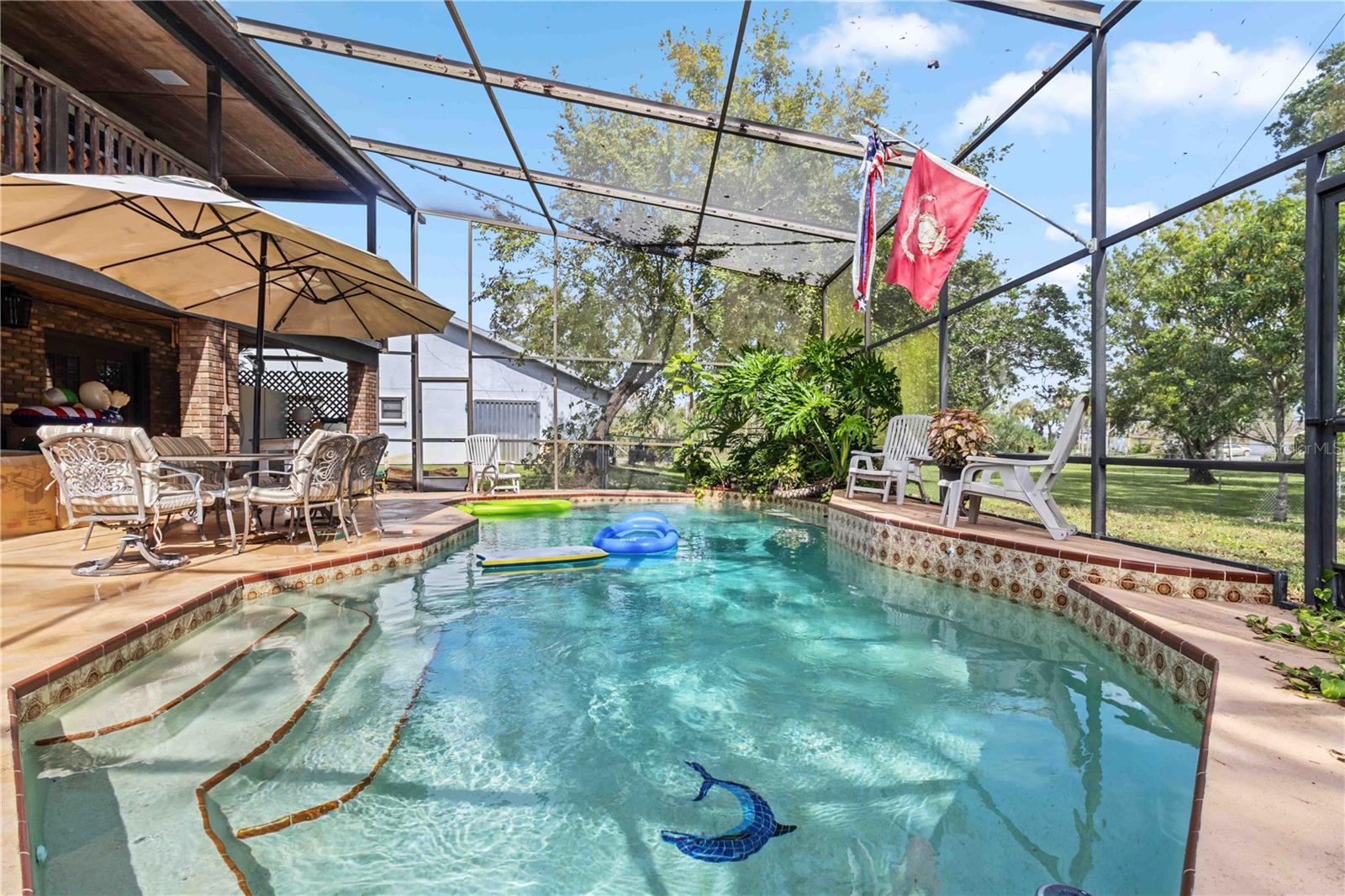 Location, Location, Location! This beautifully crafted two-story Tudor-style home sits on just over half an acre, featuring a screened-in pool and a lush backyard. With 3 bedrooms (one converted into a spacious California Closet), 3.5 bathrooms, and a 2.5-car garage, there’s parking for up to 9 vehicles. The kitchen boasts granite countertops, stainless steel appliances, and a breakfast bar. The owner’s suite includes a large bathroom, a California Closet, and a private balcony overlooking the pool and backyard. Enjoy cozy gatherings around the gas or wood-burning fireplaces, host formal dinners, or relax in the inviting family room. The low $150/year HOA grants access to a community dock and boat ramp on the scenic Indian River, offering stunning, unobstructed rocket launch views. Recent updates include a 2024 roof, solar heating, and A/C. Additionally, all exterior doors have been reconditioned after the latest storm, ensuring durability and charm.
