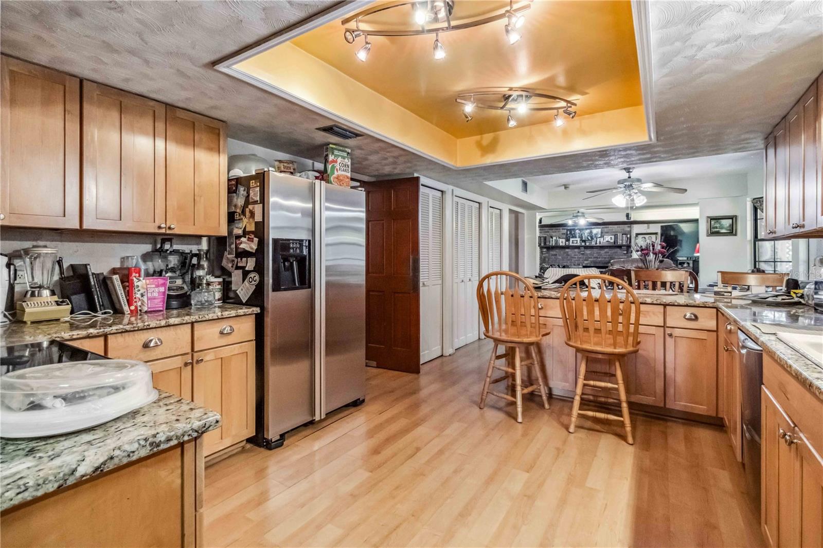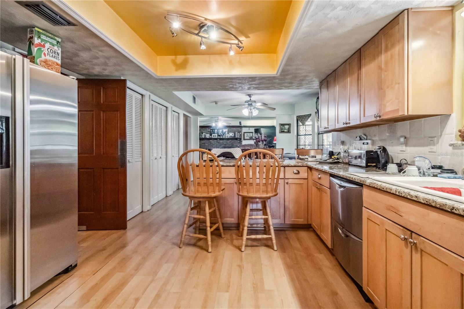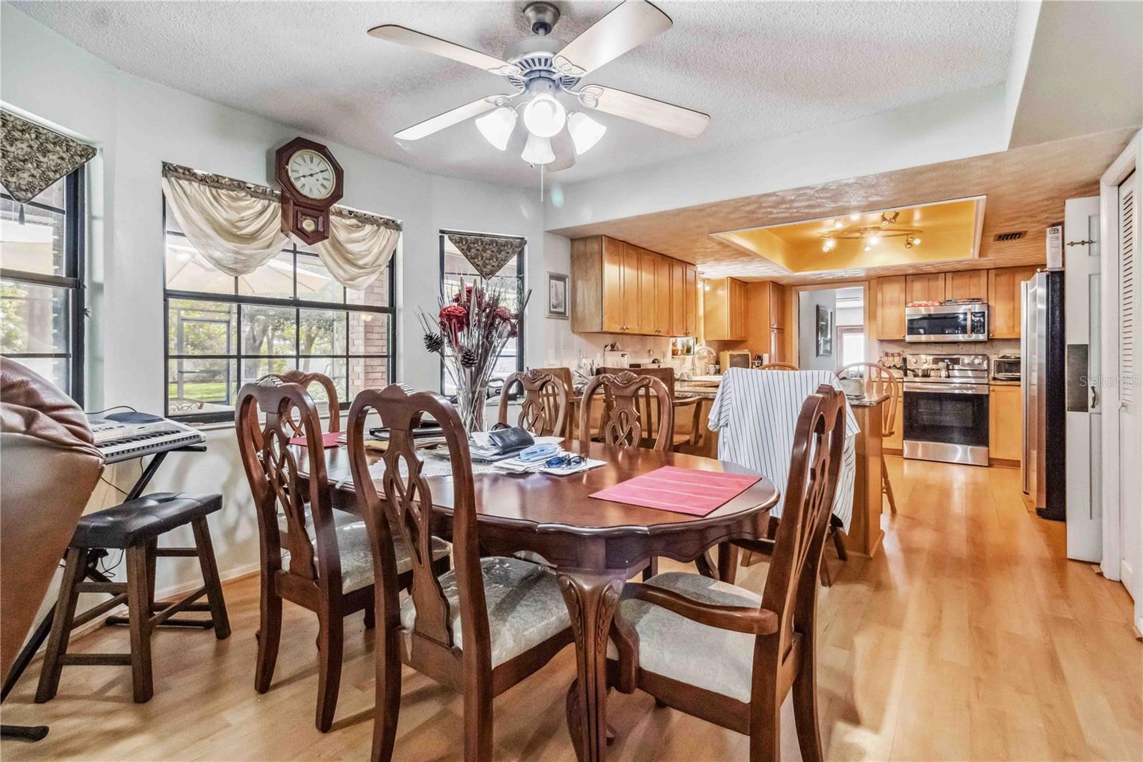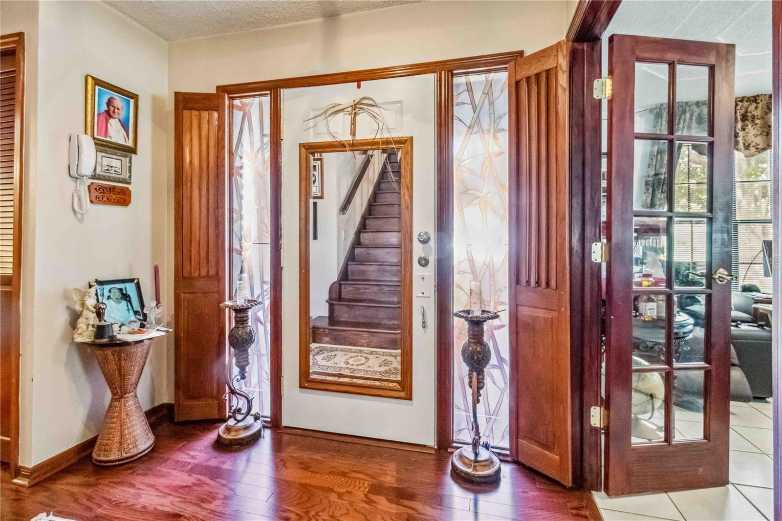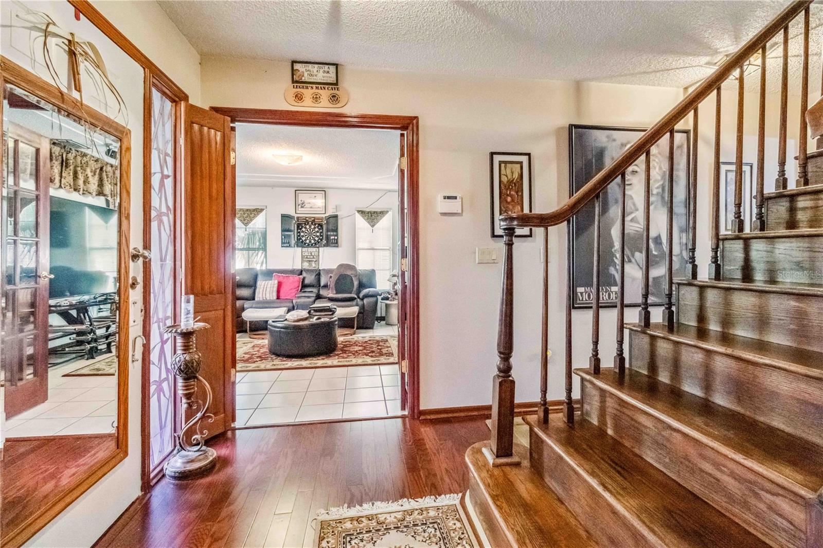 Location, Location, Location! This beautifully crafted two-story Tudor-style home sits on just over half an acre, featuring a screened-in pool and a lush backyard. With 3 bedrooms (one converted into a spacious California Closet), 3.5 bathrooms, and a 2.5-car garage, there’s parking for up to 9 vehicles. The kitchen boasts granite countertops, stainless steel appliances, and a breakfast bar. The owner’s suite includes a large bathroom, a California Closet, and a private balcony overlooking the pool and backyard. Enjoy cozy gatherings around the gas or wood-burning fireplaces, host formal dinners, or relax in the inviting family room. The low $150/year HOA grants access to a community dock and boat ramp on the scenic Indian River, offering stunning, unobstructed rocket launch views. Recent updates include a 2024 roof, solar heating, and A/C. Additionally, all exterior doors have been reconditioned after the latest storm, ensuring durability and charm.