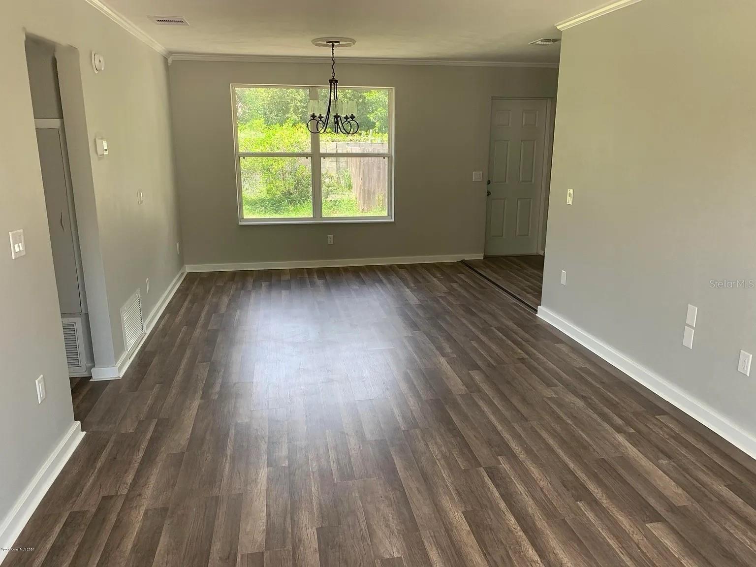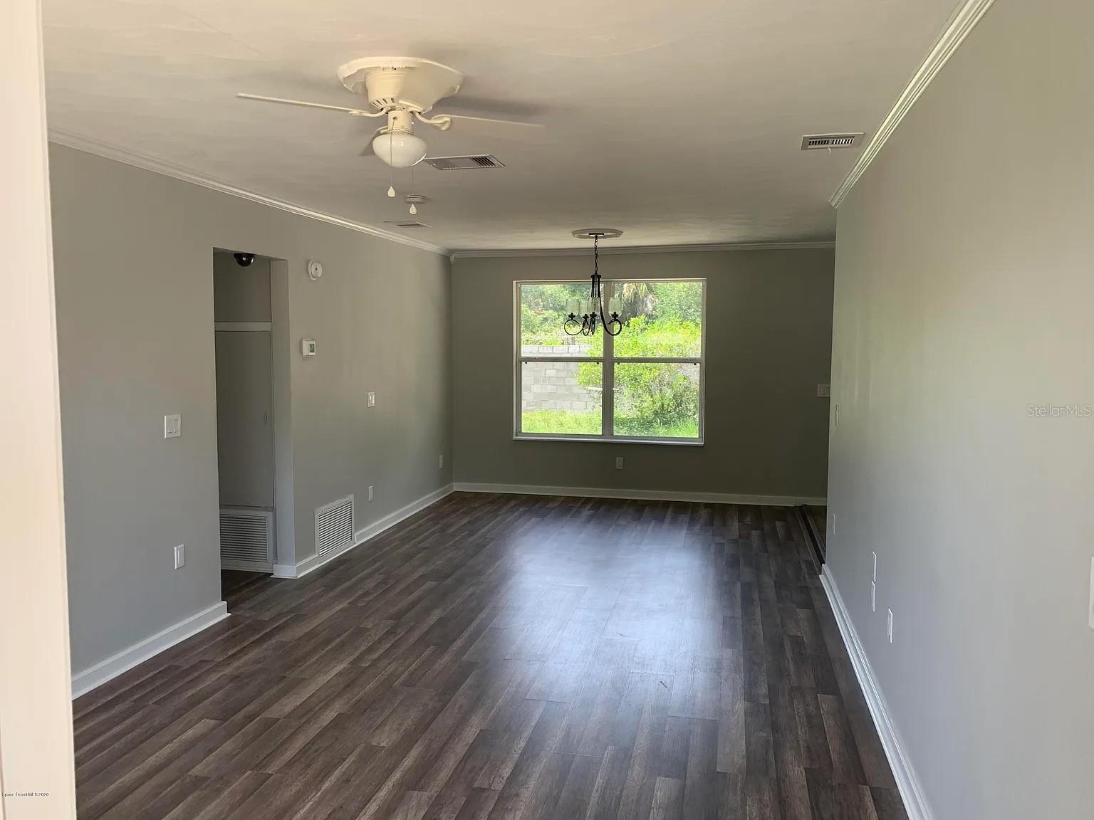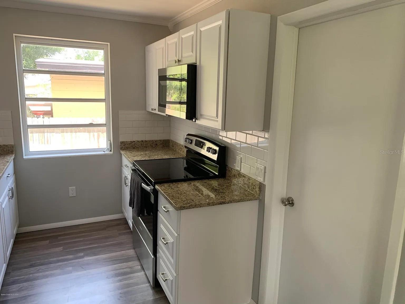 Renovated Home in Cocoa Hills This charming concrete block home features three bedrooms and two bathrooms. It includes a laundry room and pantry, and the third bedroom has a private outside entrance. Located minutes from Cocoa Village and the upcoming Brightline train station. It is only 9 minutes to Cocoa Beach and 11 minutes to Kennedy Space Center. Orlando International Airport is 33 minutes from the door, and the Orlando theme parks all within 1 hour of the home. The property boasts a spacious front yard with new grass and a cement driveway, as well as a large fenced backyard equipped with an 8-foot cement wall along the back. The backyard also has a gravel driveway and gate. A new sprinkler system services both the front and back yards, using city water and sewer, along with repurposed water for landscaping. The home has undergone extensive renovations, including the roof, electrical system, plumbing, flooring, hot water heater, HVAC, and ducts. The bathrooms and kitchen have been updated, featuring stainless steel appliances and granite countertops. Vinyl plank flooring is throughout all but one bathroom (tile) and the laundry room(tile). Painted gray walls, white trim, and crown molding in every room.