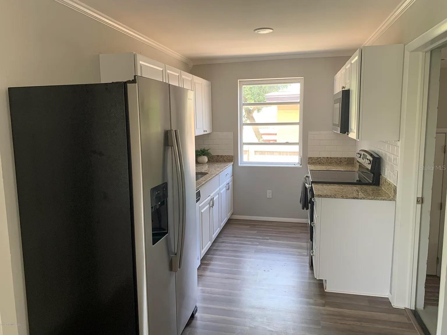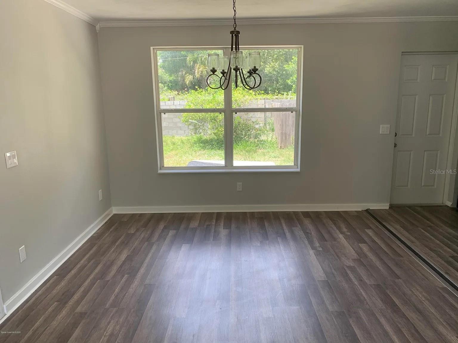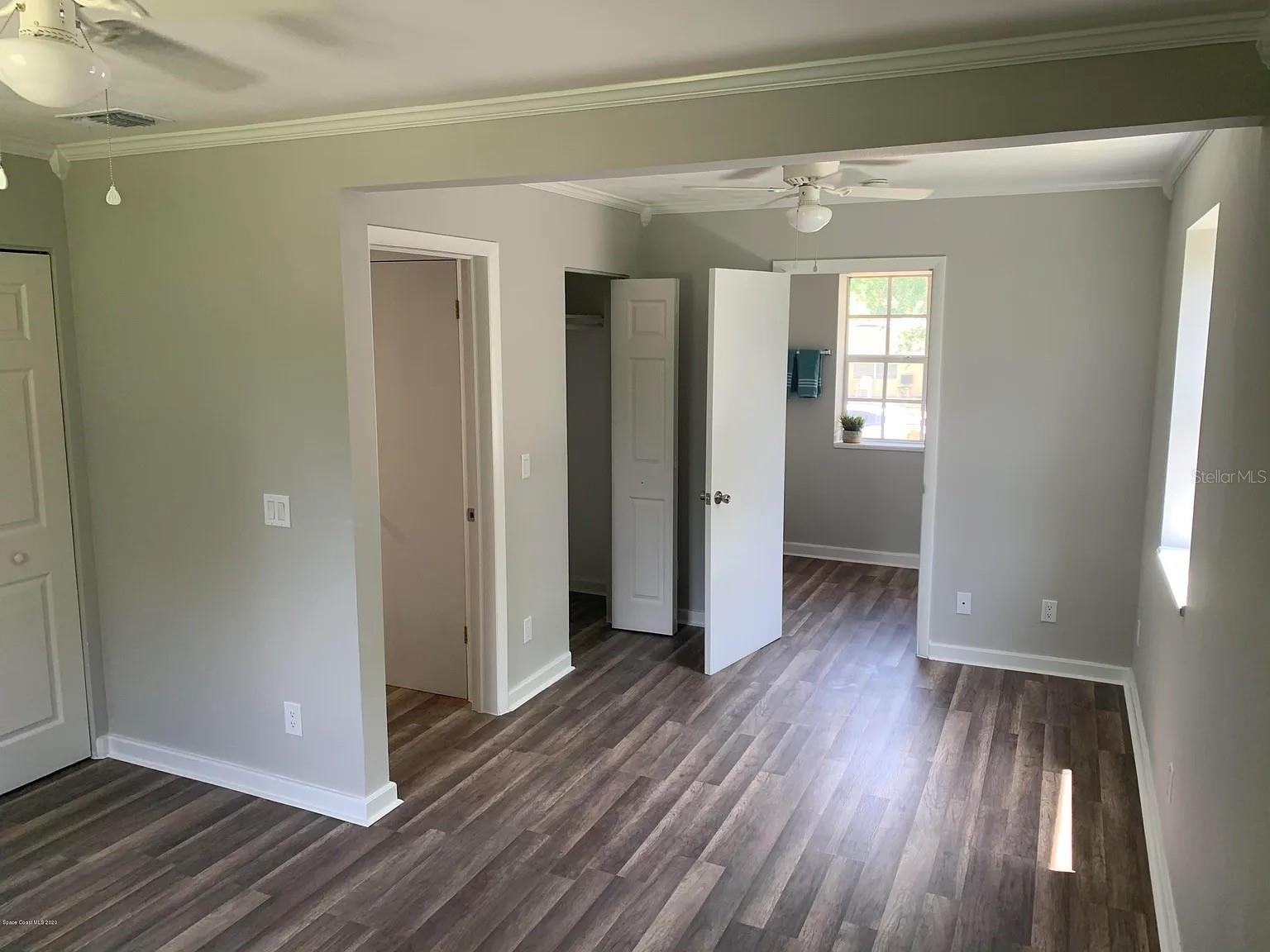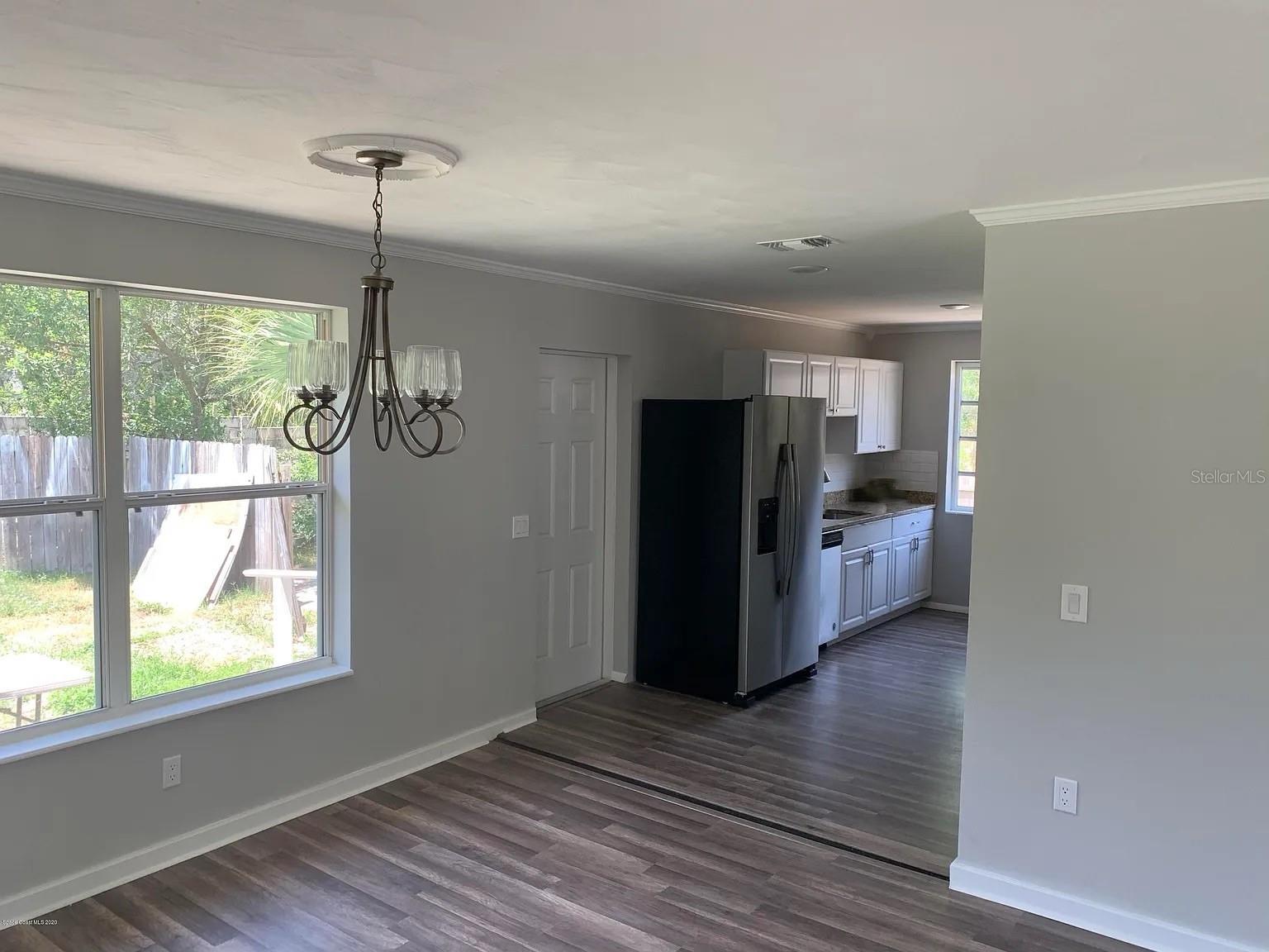 Renovated Home in Cocoa Hills This charming concrete block home features three bedrooms and two bathrooms. It includes a laundry room and pantry, and the third bedroom has a private outside entrance. Located minutes from Cocoa Village and the upcoming Brightline train station. It is only 9 minutes to Cocoa Beach and 11 minutes to Kennedy Space Center. Orlando International Airport is 33 minutes from the door, and the Orlando theme parks all within 1 hour of the home. The property boasts a spacious front yard with new grass and a cement driveway, as well as a large fenced backyard equipped with an 8-foot cement wall along the back. The backyard also has a gravel driveway and gate. A new sprinkler system services both the front and back yards, using city water and sewer, along with repurposed water for landscaping. The home has undergone extensive renovations, including the roof, electrical system, plumbing, flooring, hot water heater, HVAC, and ducts. The bathrooms and kitchen have been updated, featuring stainless steel appliances and granite countertops. Vinyl plank flooring is throughout all but one bathroom (tile) and the laundry room(tile). Painted gray walls, white trim, and crown molding in every room.