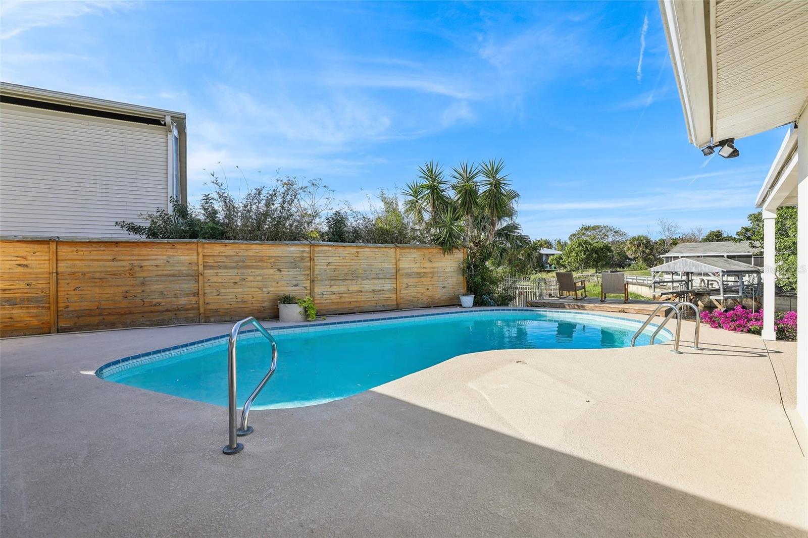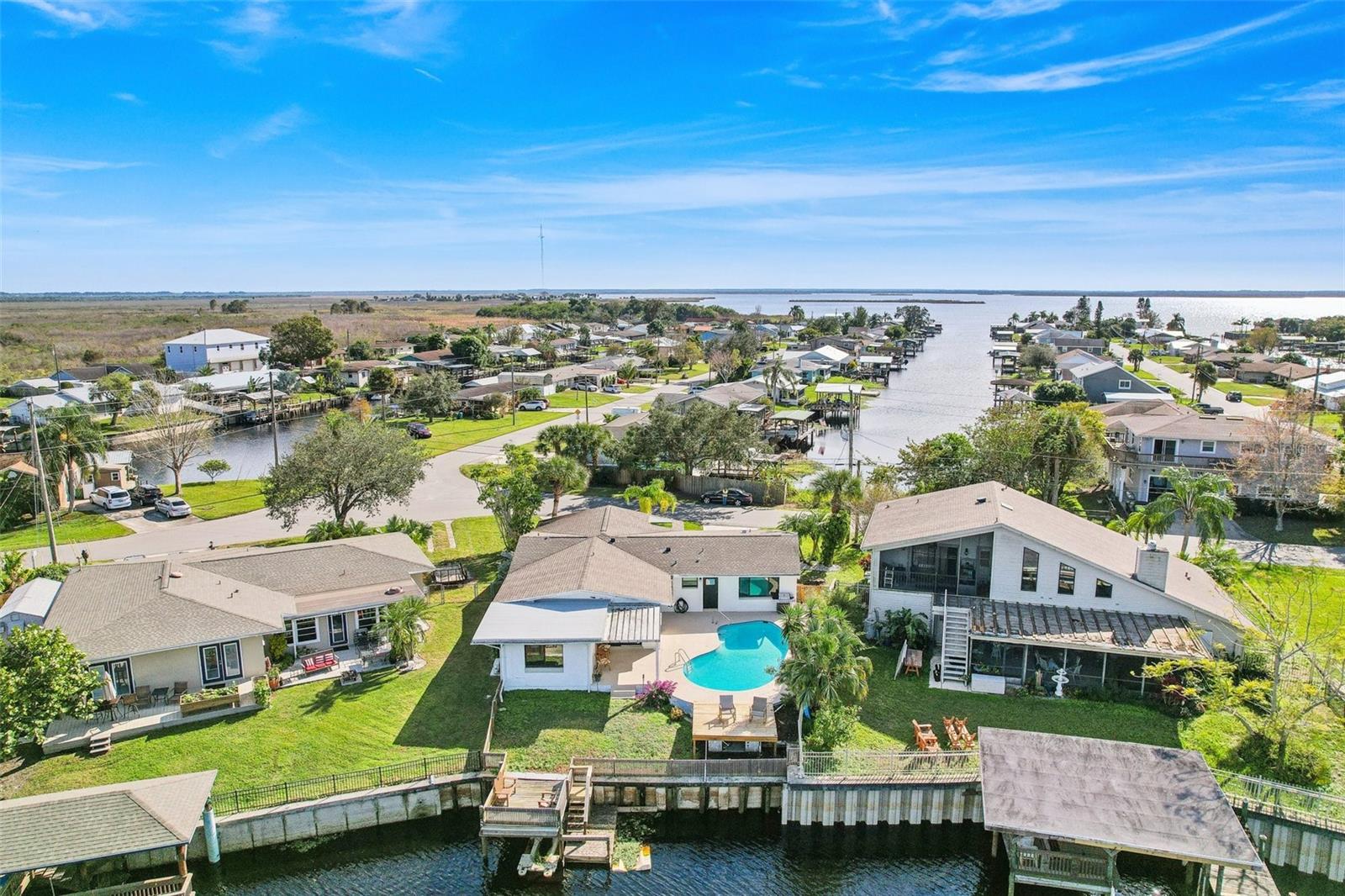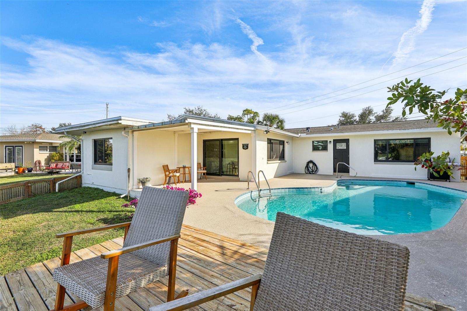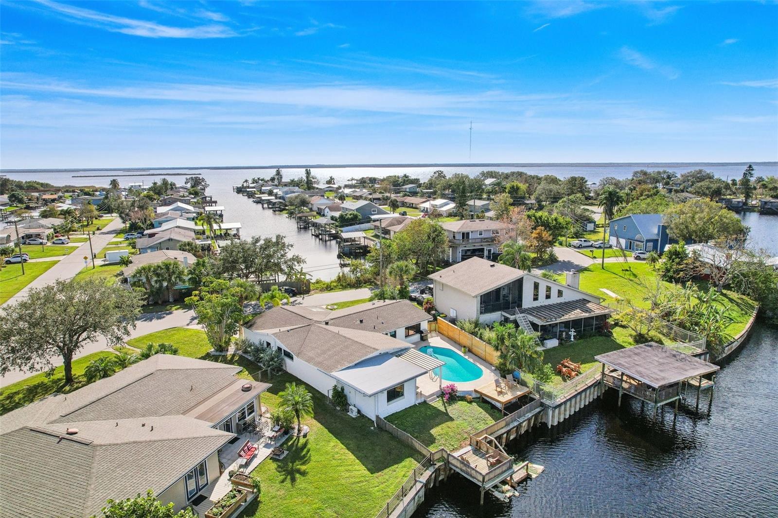 Enjoy the Florida lifestyle in this canal front home located on Lake Poinsett, a beautiful 4000+ acre lake with access to the St.John's River. Spend your days boating, fishing or relaxing in the pool or on the private dock.This 3 bedroom 3 bath concrete block home has a newly resurfaced in ground pool and has been elegantly remodeled from top to bottom. With new plumbing (no cast iron) and new electrical, this home is ready for you to move right in. Roof approx 6 years old, AC 4 yrs old, water, heater 3 yrs old, pool pump 2 yrs old. Almost every surface has been beautifully updated including new flooring, paint, windows, bathrooms and a spectacular kitchen. The primary bedroom suite features a walk in closet, luxurious walk in shower and double sinks. The second bedroom also has a private bath. The third bedroom is being used as on office and there is a third bathroom off the hallway for guests. You will love the open floor plan, soaring ceilings and high end finishes.