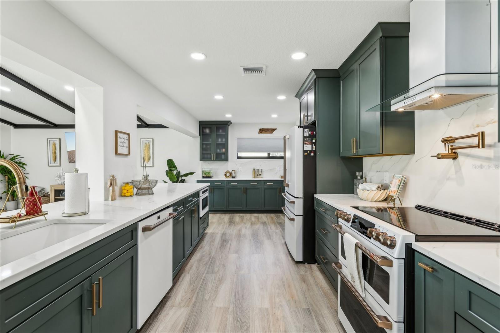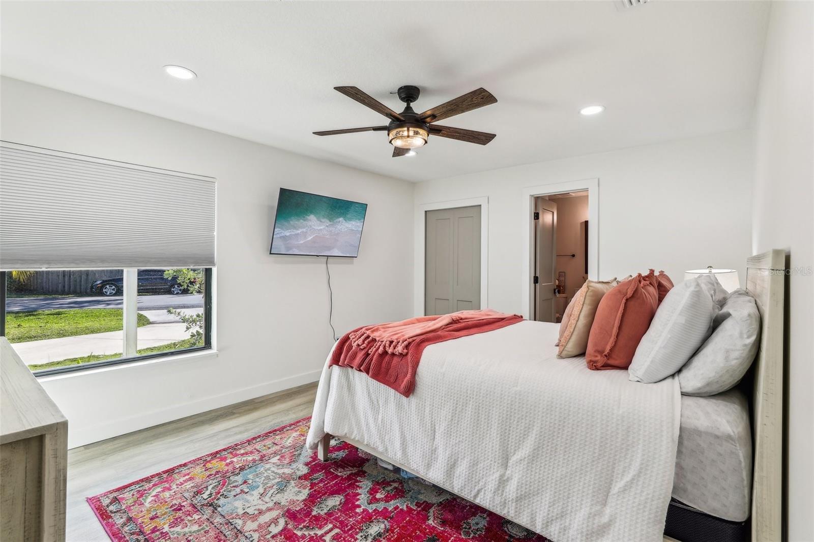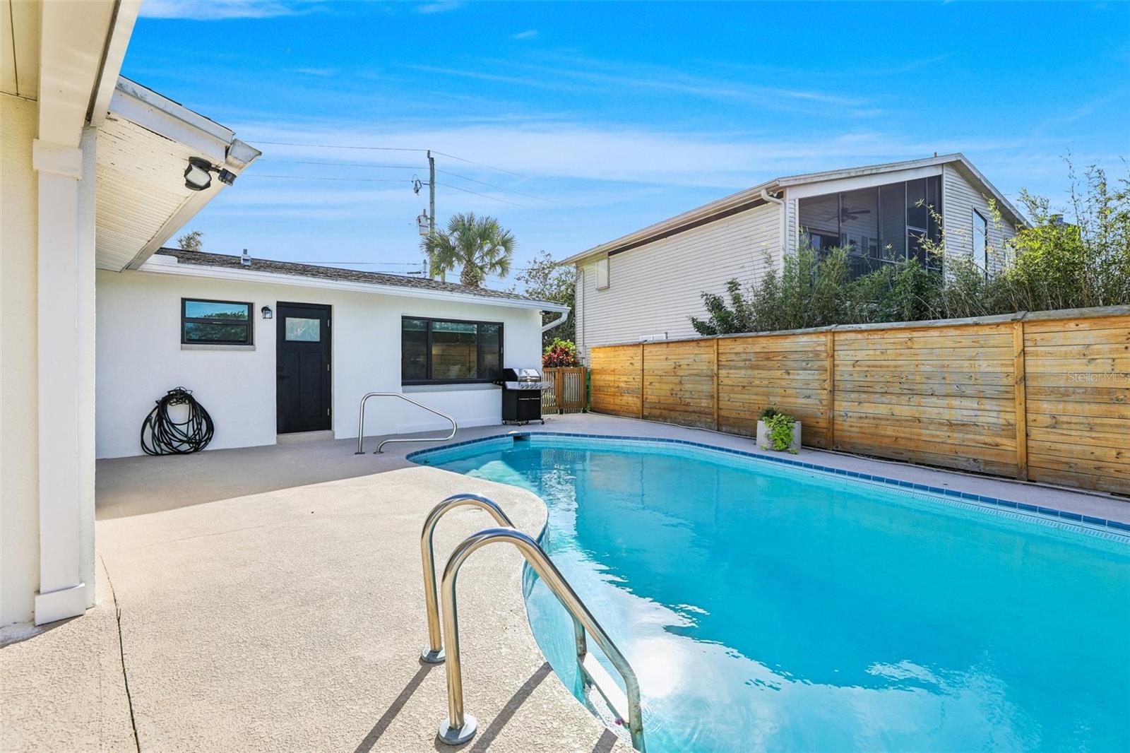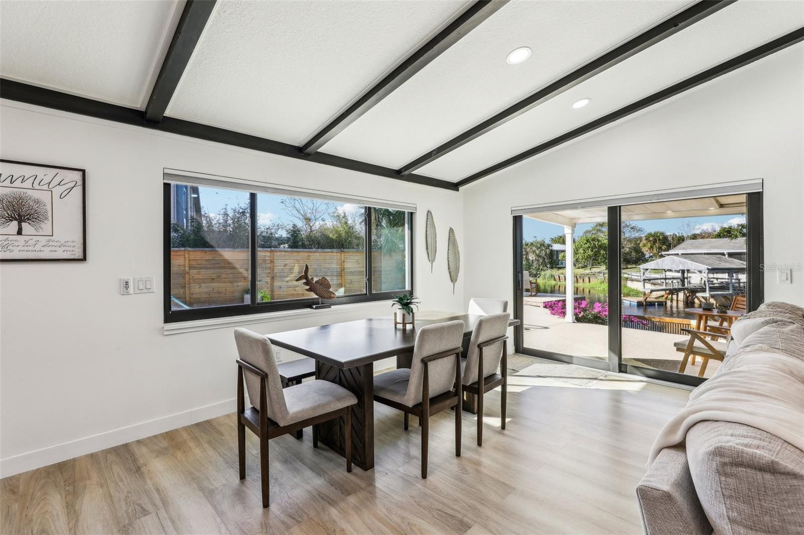 Enjoy the Florida lifestyle in this canal front home located on Lake Poinsett, a beautiful 4000+ acre lake with access to the St.John's River. Spend your days boating, fishing or relaxing in the pool or on the private dock.This 3 bedroom 3 bath concrete block home has a newly resurfaced in ground pool and has been elegantly remodeled from top to bottom. With new plumbing (no cast iron) and new electrical, this home is ready for you to move right in. Roof approx 6 years old, AC 4 yrs old, water, heater 3 yrs old, pool pump 2 yrs old. Almost every surface has been beautifully updated including new flooring, paint, windows, bathrooms and a spectacular kitchen. The primary bedroom suite features a walk in closet, luxurious walk in shower and double sinks. The second bedroom also has a private bath. The third bedroom is being used as on office and there is a third bathroom off the hallway for guests. You will love the open floor plan, soaring ceilings and high end finishes.