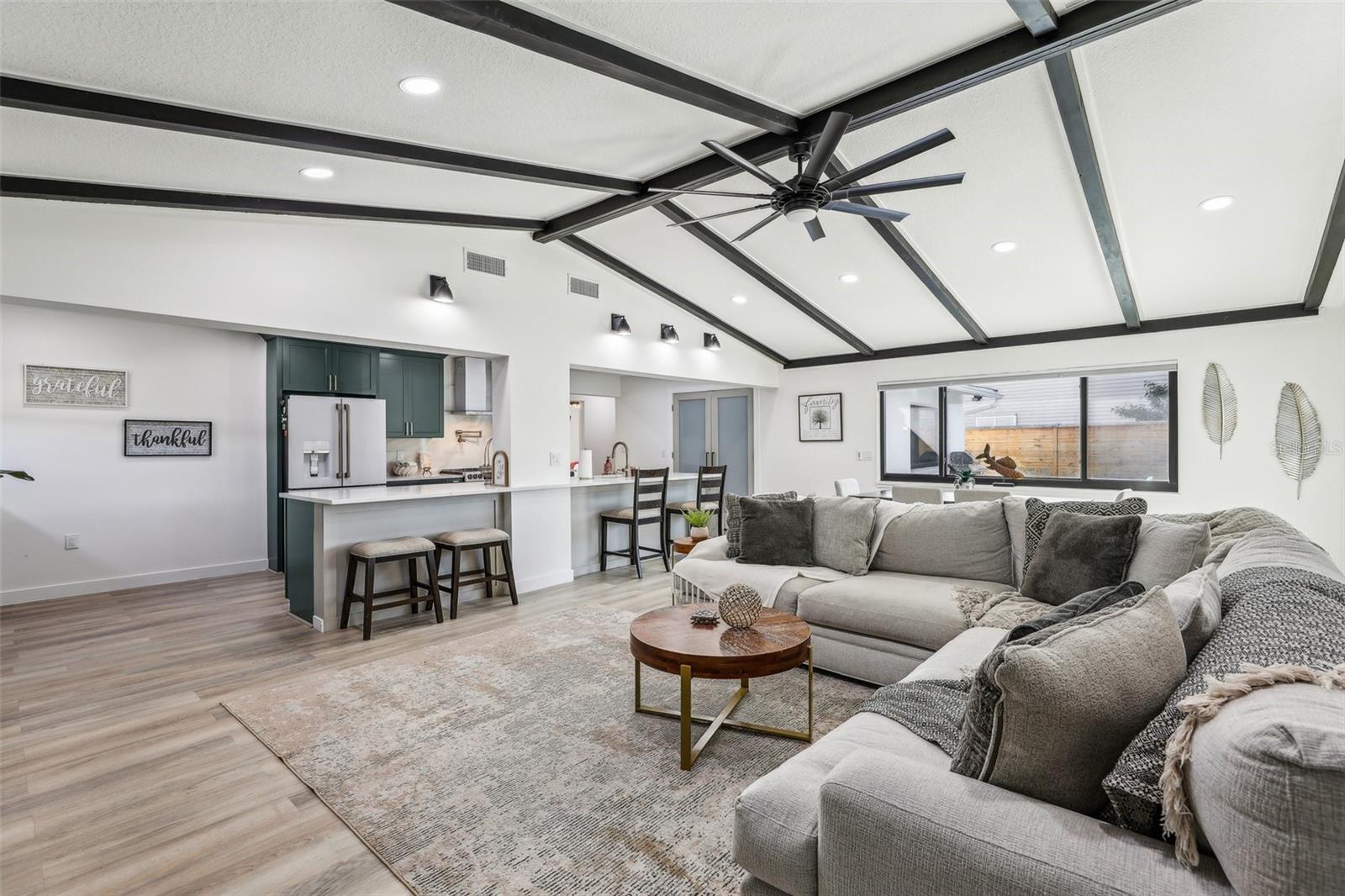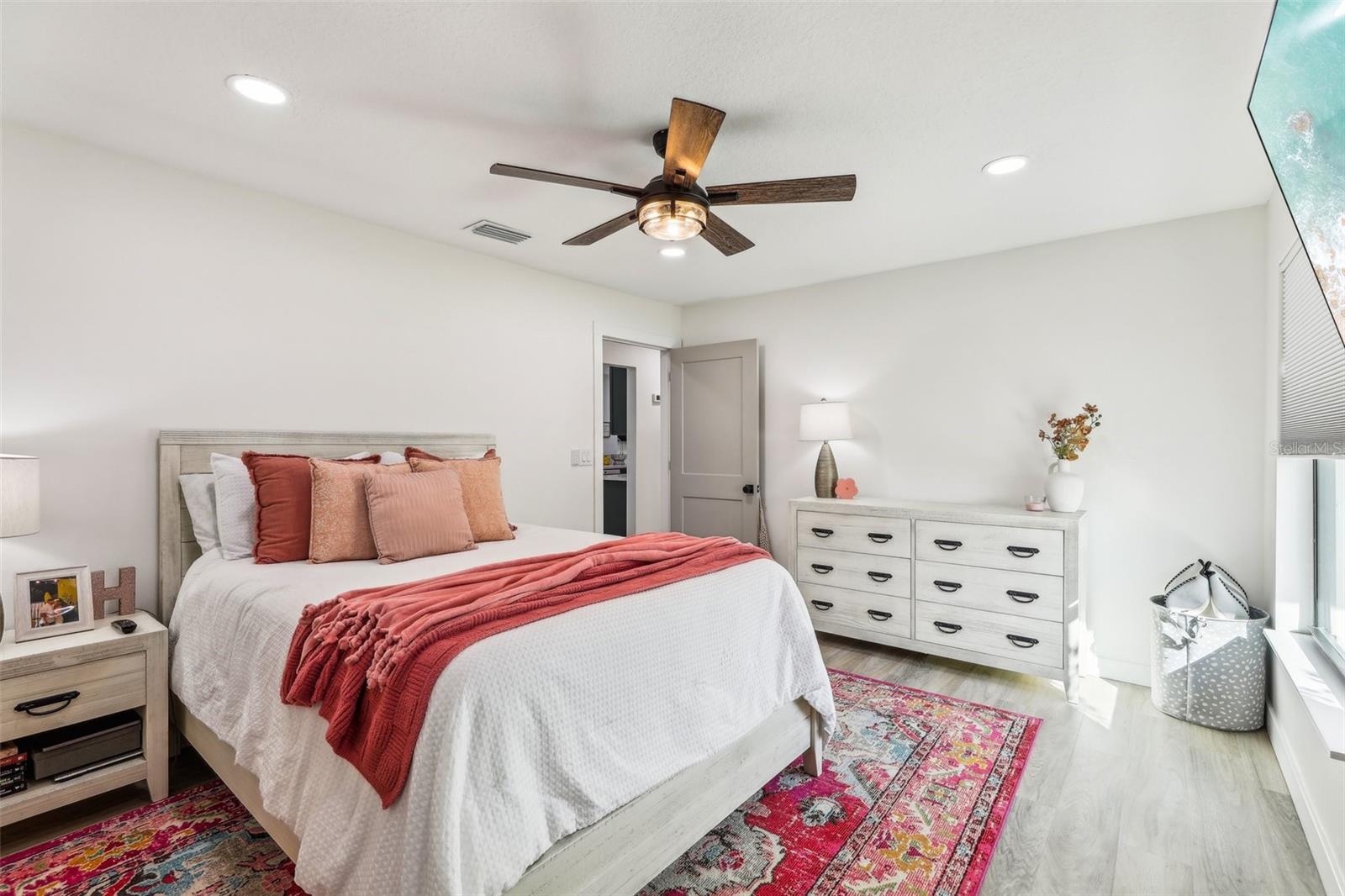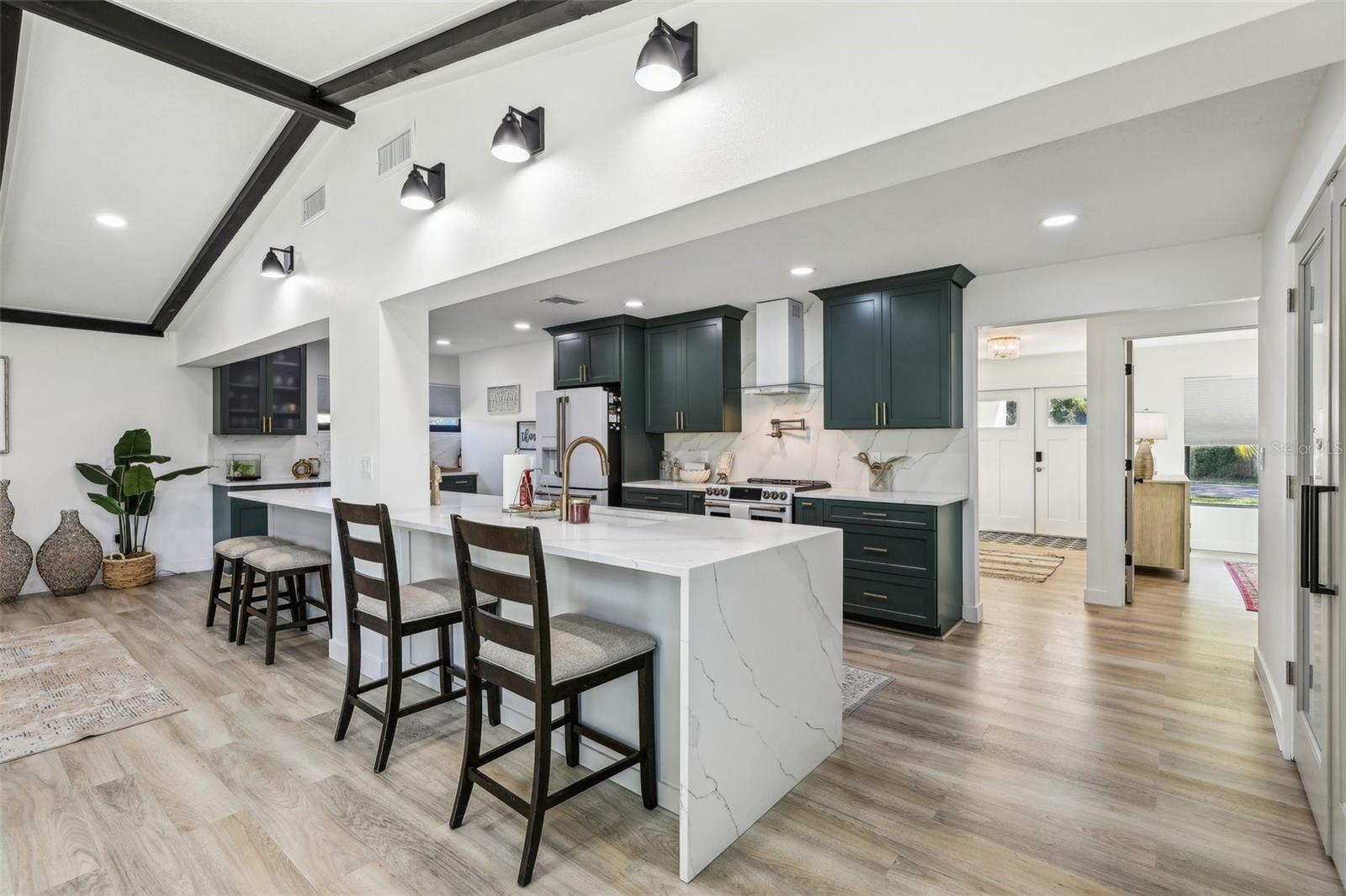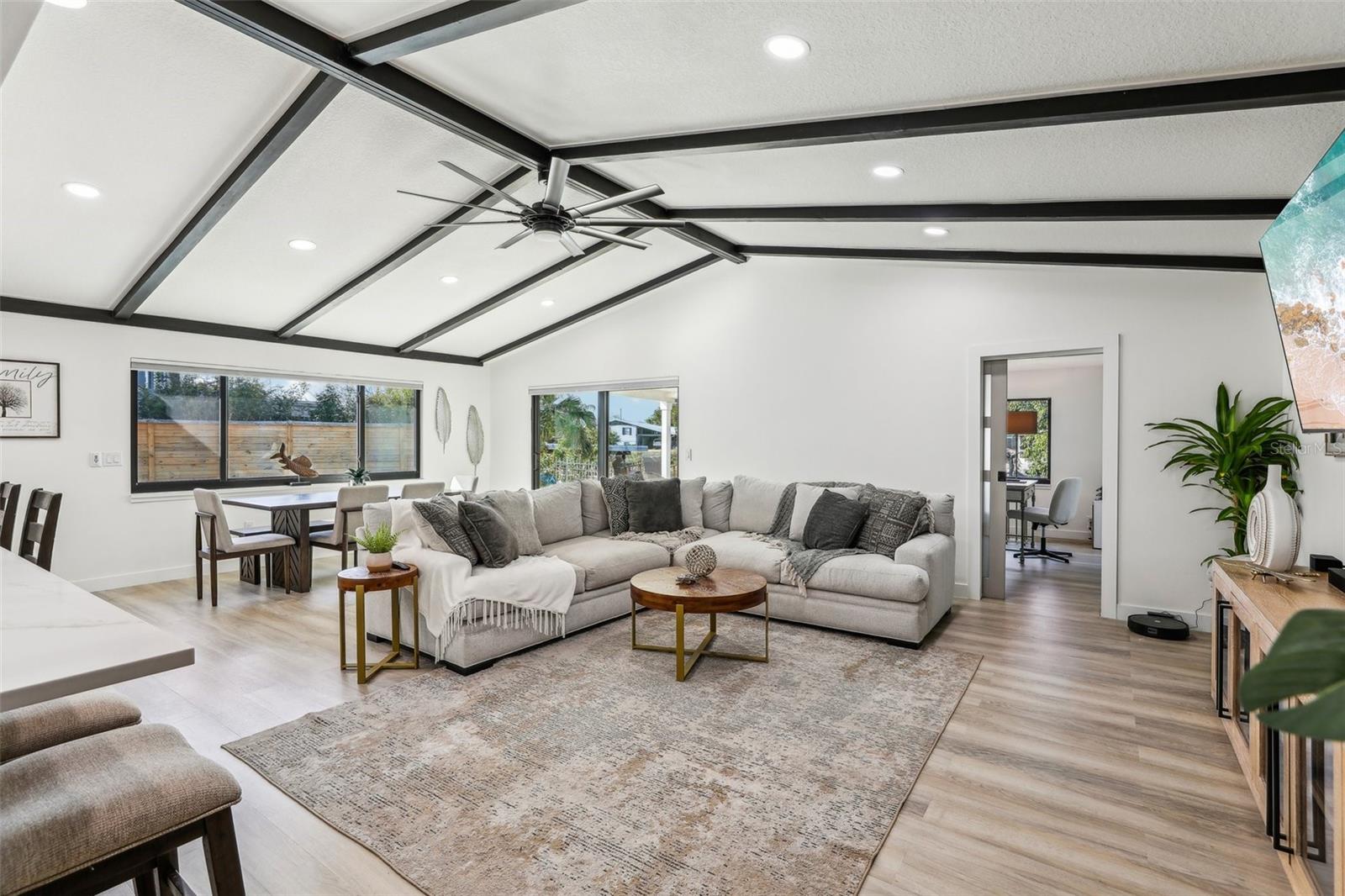 Enjoy the Florida lifestyle in this canal front home located on Lake Poinsett, a beautiful 4000+ acre lake with access to the St.John's River. Spend your days boating, fishing or relaxing in the pool or on the private dock.This 3 bedroom 3 bath concrete block home has a newly resurfaced in ground pool and has been elegantly remodeled from top to bottom. With new plumbing (no cast iron) and new electrical, this home is ready for you to move right in. Roof approx 6 years old, AC 4 yrs old, water, heater 3 yrs old, pool pump 2 yrs old. Almost every surface has been beautifully updated including new flooring, paint, windows, bathrooms and a spectacular kitchen. The primary bedroom suite features a walk in closet, luxurious walk in shower and double sinks. The second bedroom also has a private bath. The third bedroom is being used as on office and there is a third bathroom off the hallway for guests. You will love the open floor plan, soaring ceilings and high end finishes.