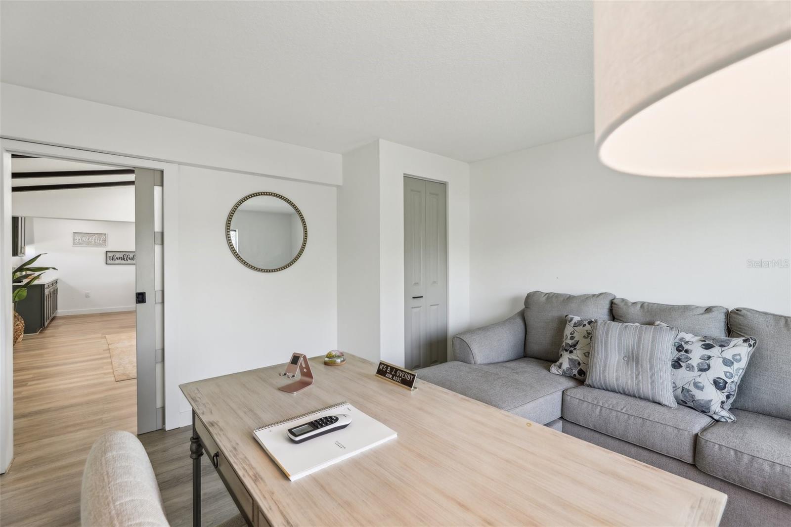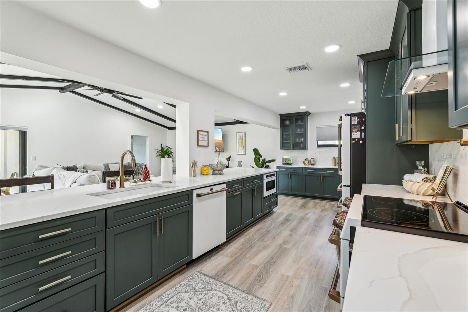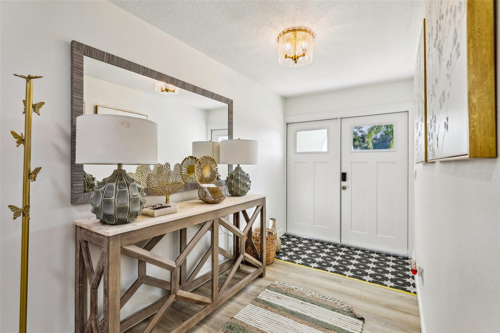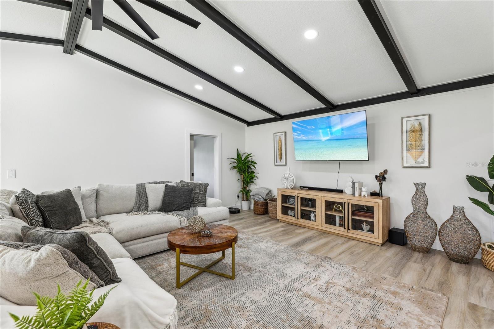 Enjoy the Florida lifestyle in this canal front home located on Lake Poinsett, a beautiful 4000+ acre lake with access to the St.John's River. Spend your days boating, fishing or relaxing in the pool or on the private dock.This 3 bedroom 3 bath concrete block home has a newly resurfaced in ground pool and has been elegantly remodeled from top to bottom. With new plumbing (no cast iron) and new electrical, this home is ready for you to move right in. Roof approx 6 years old, AC 4 yrs old, water, heater 3 yrs old, pool pump 2 yrs old. Almost every surface has been beautifully updated including new flooring, paint, windows, bathrooms and a spectacular kitchen. The primary bedroom suite features a walk in closet, luxurious walk in shower and double sinks. The second bedroom also has a private bath. The third bedroom is being used as on office and there is a third bathroom off the hallway for guests. You will love the open floor plan, soaring ceilings and high end finishes.