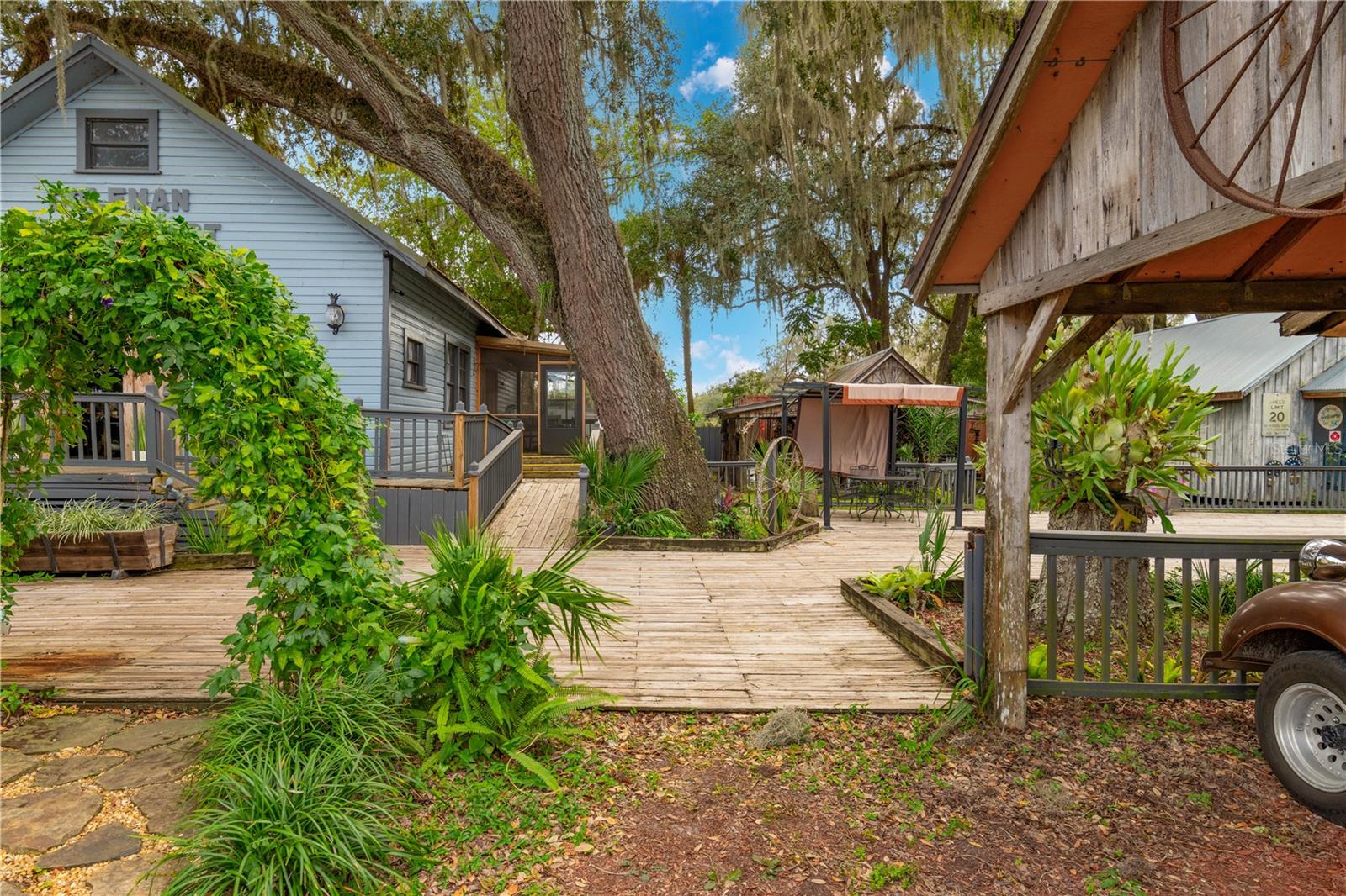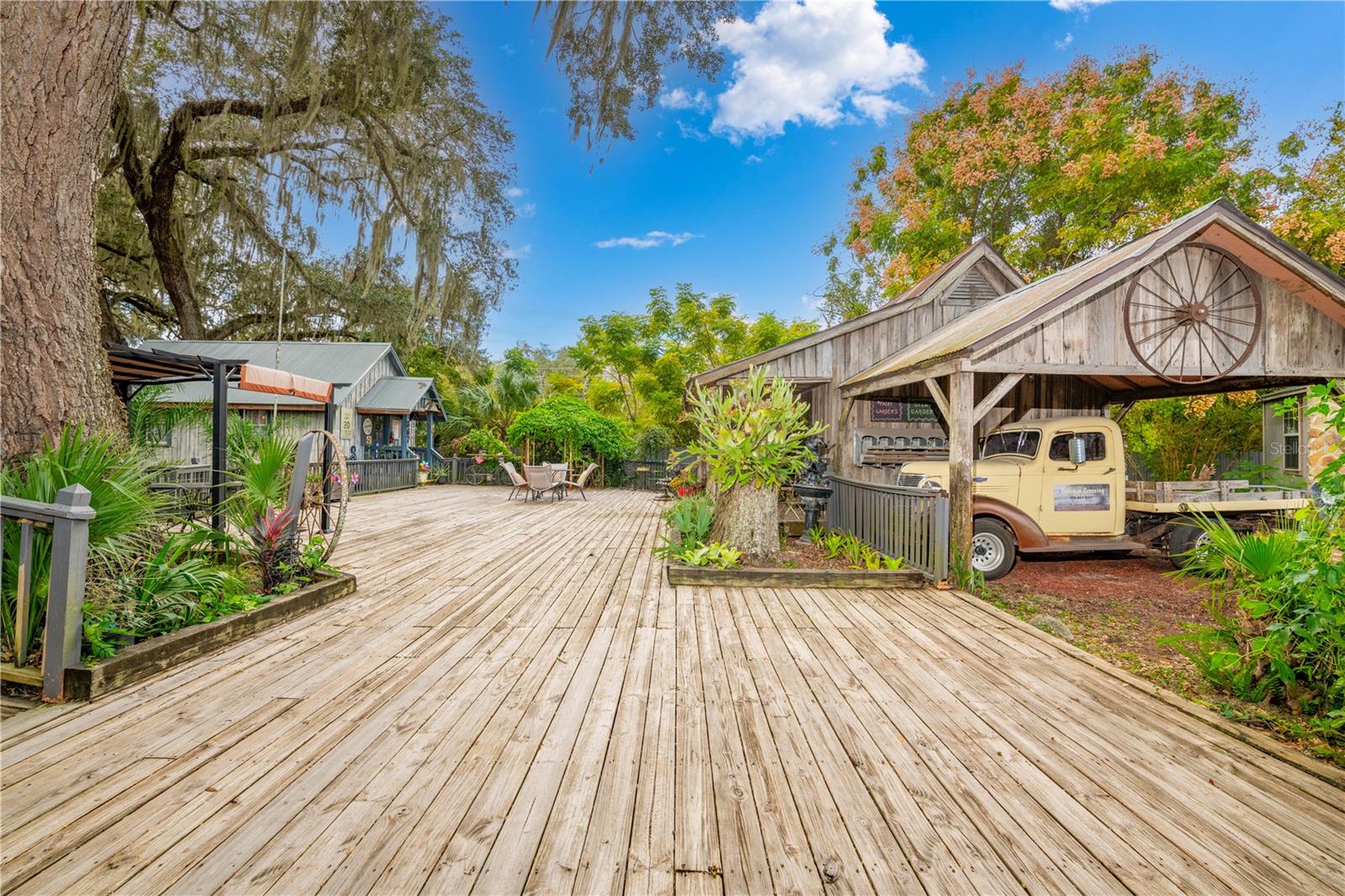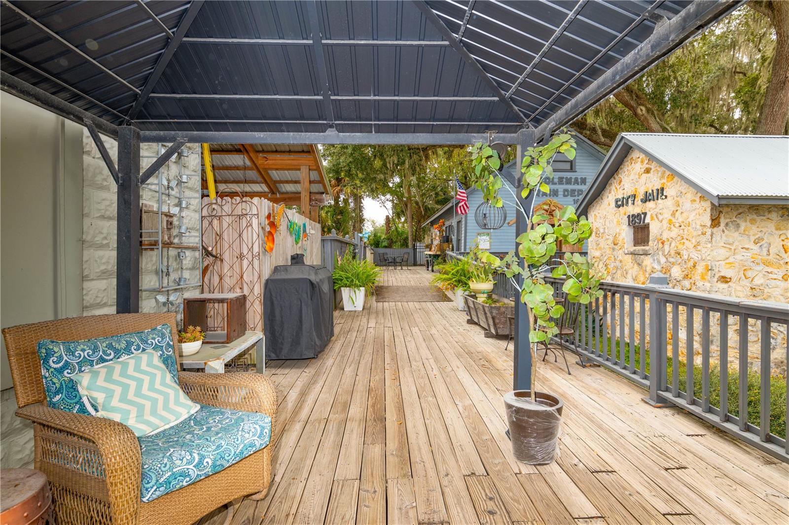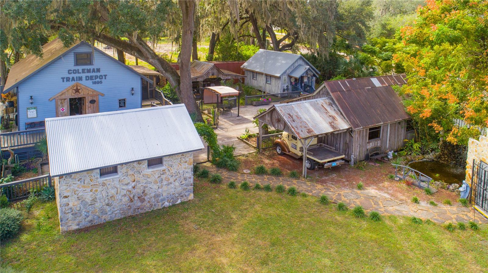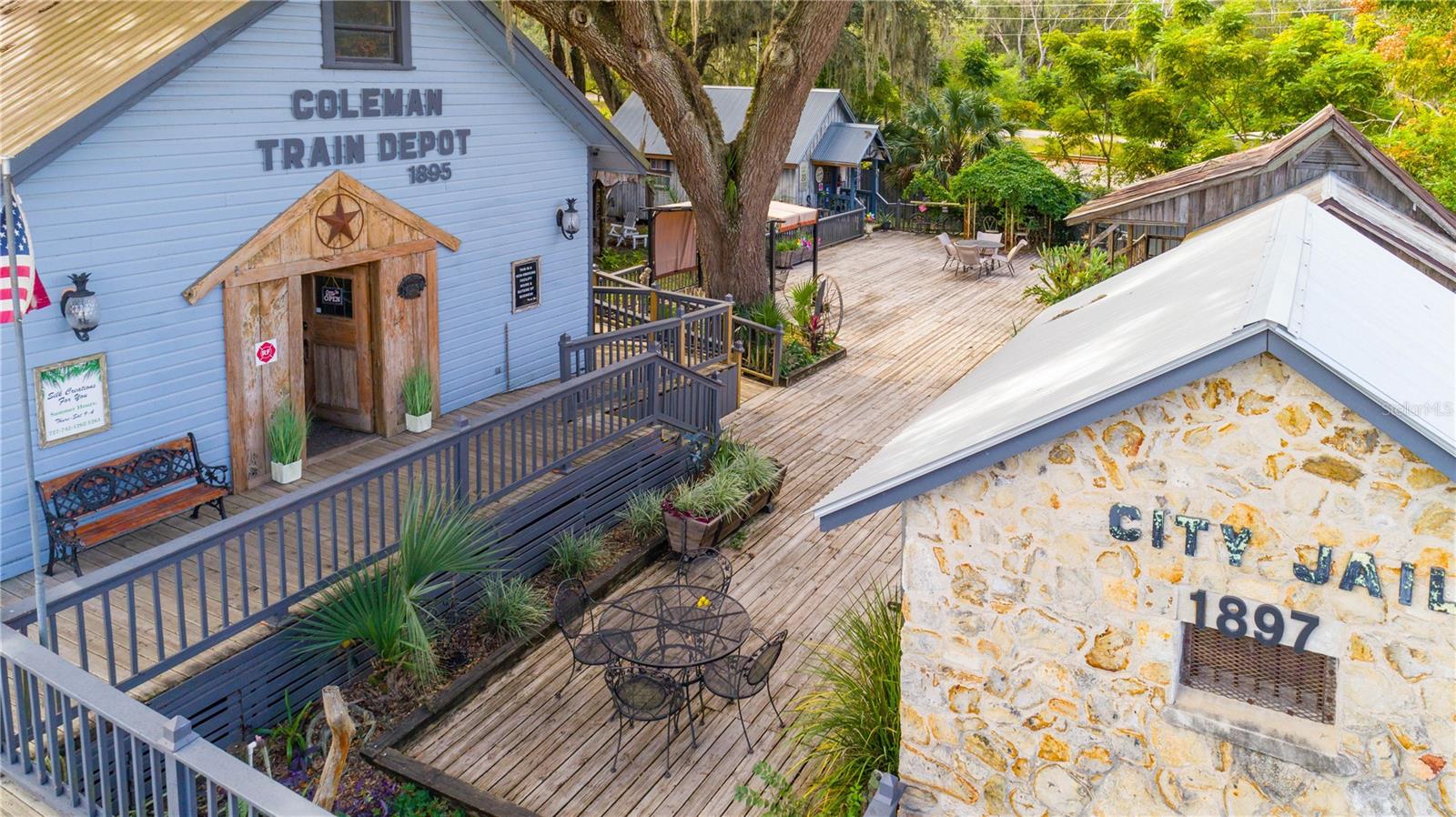 Introducing Coleman Crossing Historic Village, an extraordinary commercial property nestled on a corner lot spanning over half an acre along the historic U.S. Highway 301 in Coleman, Florida. This unique and charming historic village comprises five distinct buildings, each brimming with the rich heritage and character of this quaint Florida community. The centerpiece of Coleman Crossing Historic Village is the main building, a venerable general store that dates back to 1895. Stepping inside, visitors are immediately transported through time, with original ceilings that whisper stories of days gone by. The walls of the general store are adorned with pecky cypress harvested from the nearby Withlacoochee River, adding a touch of natural beauty to the historical charm. Adjacent to the main building stands the Coleman Train Depot, another architectural gem from 1895. This relic from the past was moved onto the property, and its vintage appeal adds a sense of nostalgia to the village. Its presence reminds visitors of a time when railroads played a vital role in connecting communities across the nation. One can't help but be intrigued by the presence of the original Coleman Jail, constructed on the property in 1897. With its unyielding iron doors, bearing the stamp of 1878, this structure is a testament to the history of law and order in the region, offering a fascinating glimpse into the past. The village's oldest building is the schoolhouse, which was built in 1867 and relocated from Adamsville, Florida. Inside, the original school bell still hangs, ready to chime in echoes of yesteryears. The wooden floors, steeped in history, creak gently as you walk through, evoking the spirit of education in days long past. An exceptional addition to the village is the oldest post office in the state of Florida, dating back to 1876. Originally hailing from Sopchoppy, Florida, it made its journey down the Withlacoochee River on a ferry boat before being reassembled on this property. This historic post office is a living testament to the state's postal history and a reminder of the importance of written communication in the past. In addition to this extraordinary collection of historical structures, the sale of Coleman Crossing Historic Village includes a thriving home decor business. The business is an integral part of the property, offering an opportunity to continue and expand the tradition of providing unique and timeless pieces to patrons who appreciate the charm and allure of this one-of-a-kind destination. Coleman Crossing Historic Village offers a rare opportunity to own a piece of Florida's history while also engaging in a vibrant and established business venture. Whether you're a history enthusiast, an entrepreneur, or someone seeking a distinctive property with endless potential, this historic village in Coleman, Florida, promises a captivating journey through time and an exciting opportunity for the future.