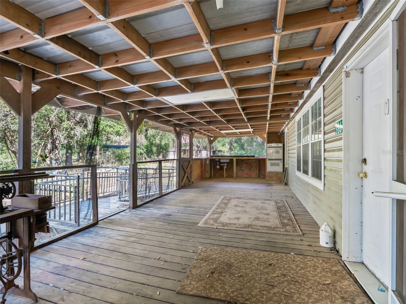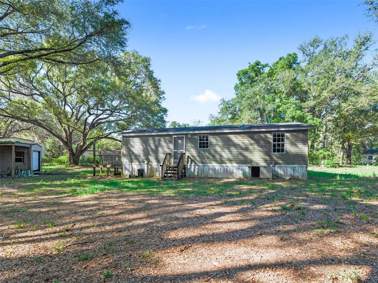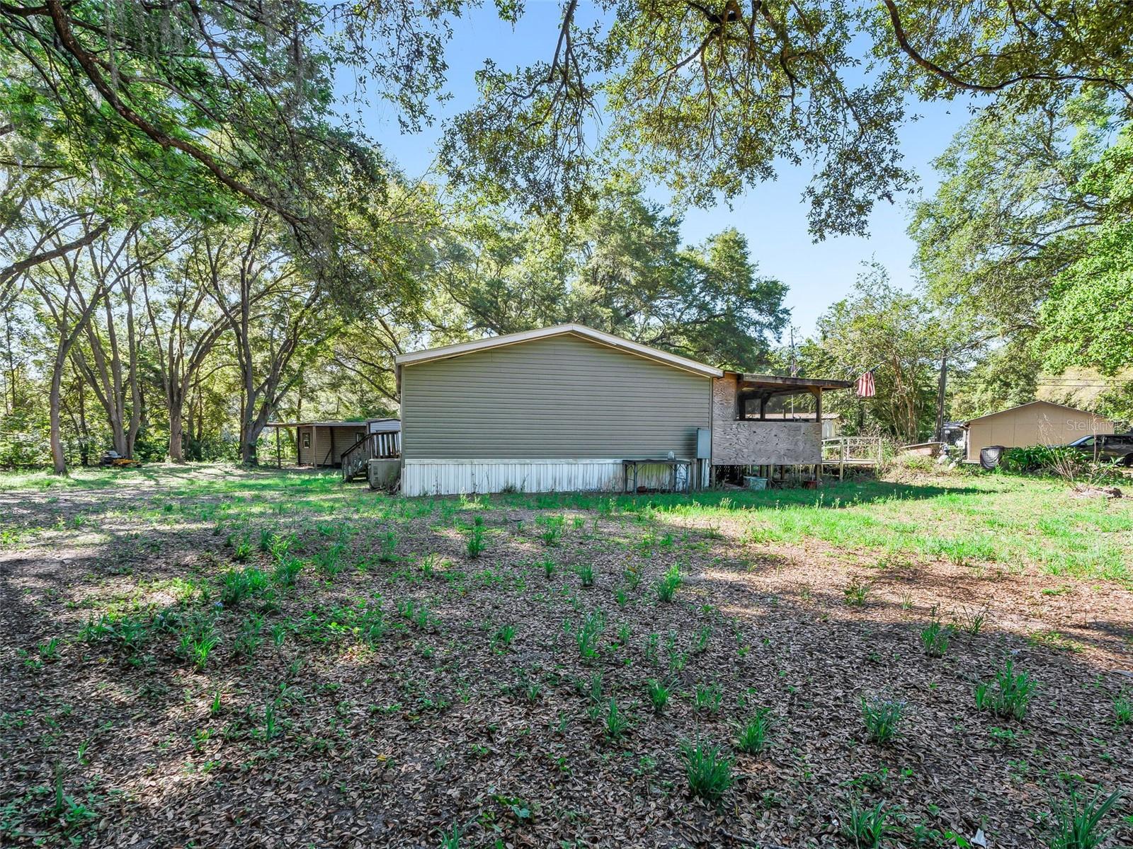 NO HOA!! Affordable country charm with privacy, space, and potential. Bring your vision and make this peaceful retreat your own. This 2015 3-bedroom, 2-bath home is a wonderful opportunity for first-time homebuyers, downsizers, or anyone seeking peaceful country living with convenience. Situated on just under an acre at the end of a quiet road, this private setting is surrounded by beautiful oak trees and backs up to 800 acres, offering a serene backdrop and added privacy.Enjoy relaxing mornings on the screened porch or entertain outdoors with the cozy outdoor kitchen area. Inside, the cute country-style kitchen features an island and opens to comfortable living spaces ready for your personal touch. The home offers a handicap-accessible ramp to the front entrance, a covered carport, a storage shed with electric, and an additional lean-to for extra storage.Centrally located with convenient access to the Turnpike and within reach of Ocala, Tampa, and Orlando, this property offers peaceful living without sacrificing accessibility. With a little love, this could be the perfect place to call home. Schedule your private showing today!