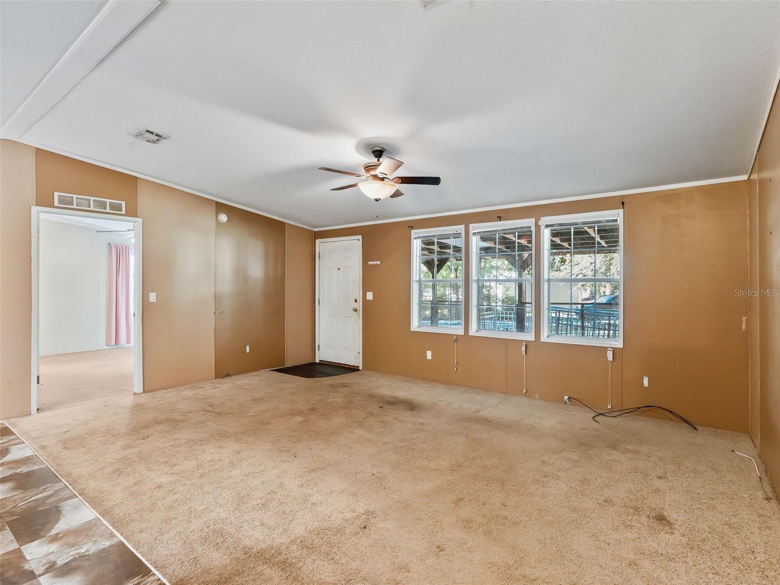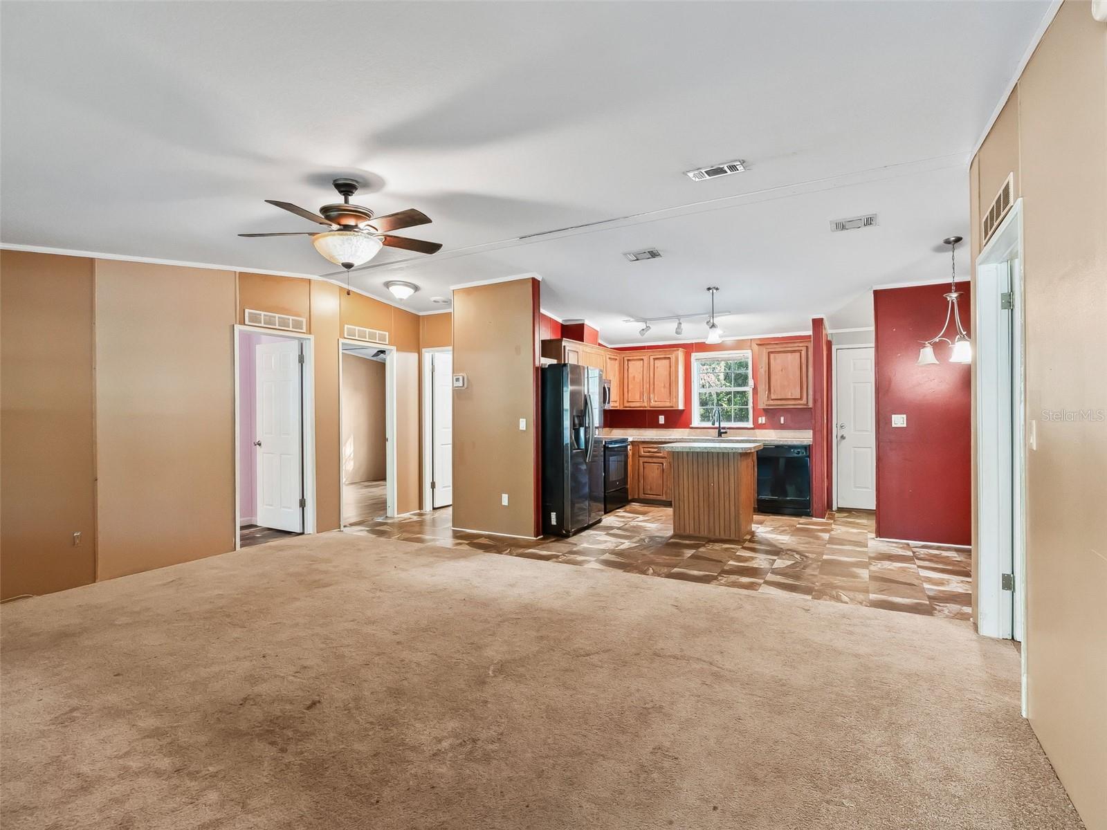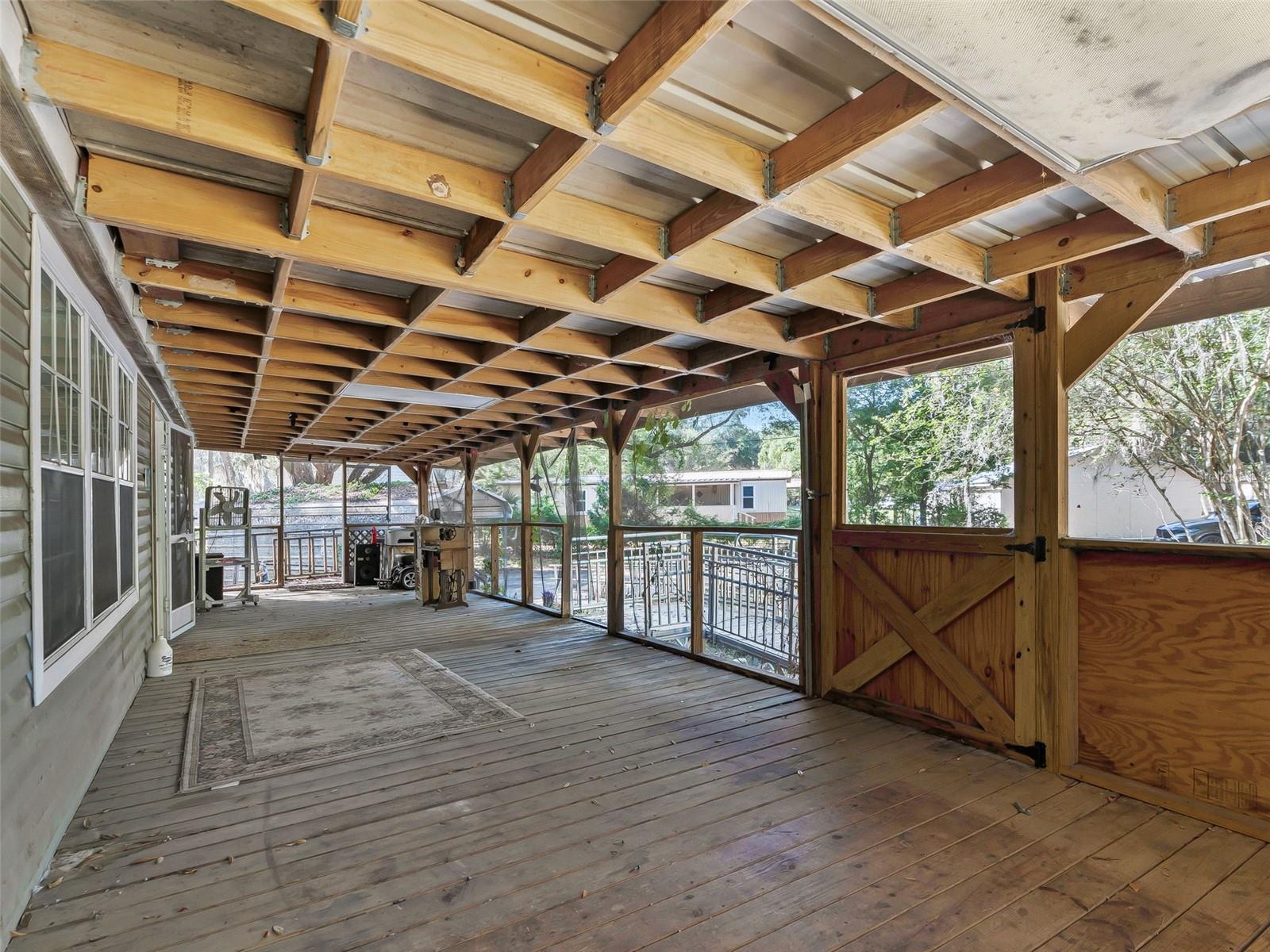 NO HOA!! Affordable country charm with privacy, space, and potential. Bring your vision and make this peaceful retreat your own. This 2015 3-bedroom, 2-bath home is a wonderful opportunity for first-time homebuyers, downsizers, or anyone seeking peaceful country living with convenience. Situated on just under an acre at the end of a quiet road, this private setting is surrounded by beautiful oak trees and backs up to 800 acres, offering a serene backdrop and added privacy.Enjoy relaxing mornings on the screened porch or entertain outdoors with the cozy outdoor kitchen area. Inside, the cute country-style kitchen features an island and opens to comfortable living spaces ready for your personal touch. The home offers a handicap-accessible ramp to the front entrance, a covered carport, a storage shed with electric, and an additional lean-to for extra storage.Centrally located with convenient access to the Turnpike and within reach of Ocala, Tampa, and Orlando, this property offers peaceful living without sacrificing accessibility. With a little love, this could be the perfect place to call home. Schedule your private showing today!