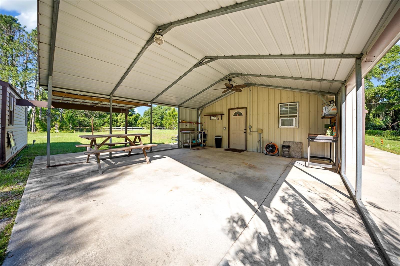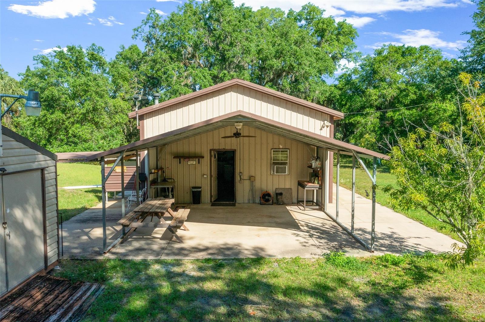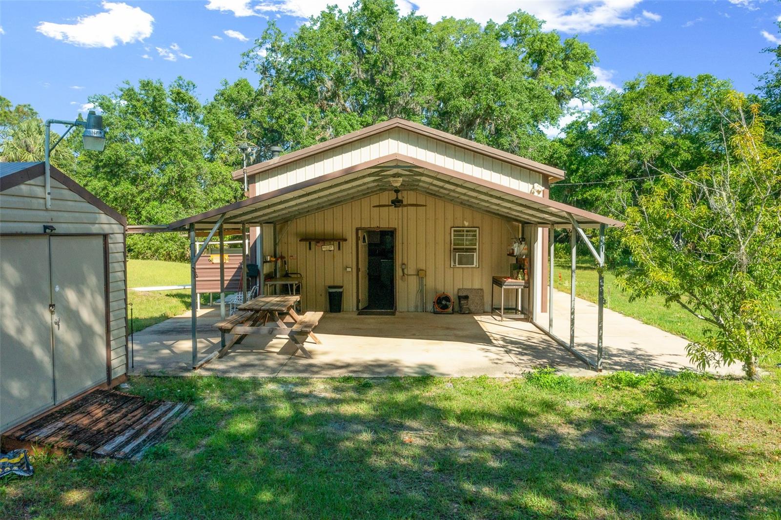 SELLER IS MOTIVATED AND JUST DROPPED A HUGE PRICE IMPROVEMENT ON THE MOST DESIREABLE REAL ESTATE TREND ON THE MARKET! BARNDOMIUM/CABIN located near historic Cross Creek, Florida. Barndominium sits on a beautiful 2.69 acre fully fenced and gated tract. 2 bedroom/1 bath, 16' ceilings, energy efficient! Covered carport and shed. RV electric and water hookup. Mature fruit trees and densely wooded borders provide the perfect amount of privacy. This parcel backs up to a tract owned by the Florida Deer Management Unit. Bring your airboat, mud boat, bass boat, bike, hunting gear and hiking boots and enjoy authentic Florida Cracker lifestyle at its best. Property is fully fenced for your horse or livestock and has a small chicken coup for your chickens. Excellent opportunity for whitetail deer, turkey, duck, fishing lodge. Cabin would make a great income producing AIRBNB. Less than 2 miles to the Orange Lake Kate Barnes Boat Ramp, Marjorie Kinnan Rawlings Estate and the world famous Yearling Restaurant. Thousands of acres of hunting/wildlife management area across the road. Gainesville-Hawthorne State Trail (Top 10 FL bike trail), 12,500 acre Orange Lake (Top 10 bass lakes) and 5,700 acre Lochloosa Lake are all within 2-5 minutes. Ideal location for work or leisure. Gainesville is only a 20 minute commute and Ocala is a 25 minute commute. Don't hesitate! This barndominium won't last long at this price!