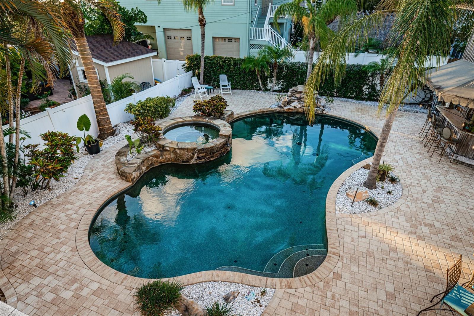 What’s Special? Backyard Oasis, Sunset views, Spacious open concept, Huge Family Room, 3 Bonus Spaces, Fully Paid Transferable Flood Insurance included, New Roof July 2024 . Welcome to your dream retreat in the heart of Crystal Beach — a rare opportunity to own a beautiful coastal home just steps away from the sparkling waters of the Gulf. Located in one of Pinellas County’s most desirable and family-friendly communities, this family residence combines timeless elegance with modern upgrades, outdoor living and breathtaking views. Step inside a bright, open-concept floor plan that flows seamlessly from living to dining to kitchen — designed for effortless entertaining and everyday comfort. The remodeled kitchen is a showpiece, featuring quartz countertops, custom cabinetry, new stainless-steel appliances including refrigerator and dishwasher, and premium fixtures throughout. Upstairs, four generously sized bedrooms offer incredible Gulf sunset views — three of which open onto private balconies for morning coffee or evening wine. A versatile fifth bedroom downstairs doubles perfectly as a home office or guest suite. Dual HVAC systems ensure year-round comfort upstairs and down. The Backyard is your own tropical oasis — a fully fenced backyard boasting a resort-style saltwater pool with cascading waterfall, hot tub, and a two-story tiki hut perfect for entertaining the kids and for hosting guests year round. Lush palm trees surround a paved deck ideal for getting together. This home was made for indoor-outdoor living. Situated just a few blocks from the Pinellas Trail, this home is perfect for outdoor enthusiasts. Zoned for top-rated schools, Crystal Beach is beloved for its safety, small-town charm, and vibrant coastal lifestyle. This is more than a home — it’s a sanctuary by the sea. Schedule your private tour today and experience the Crystal Beach lifestyle firsthand.