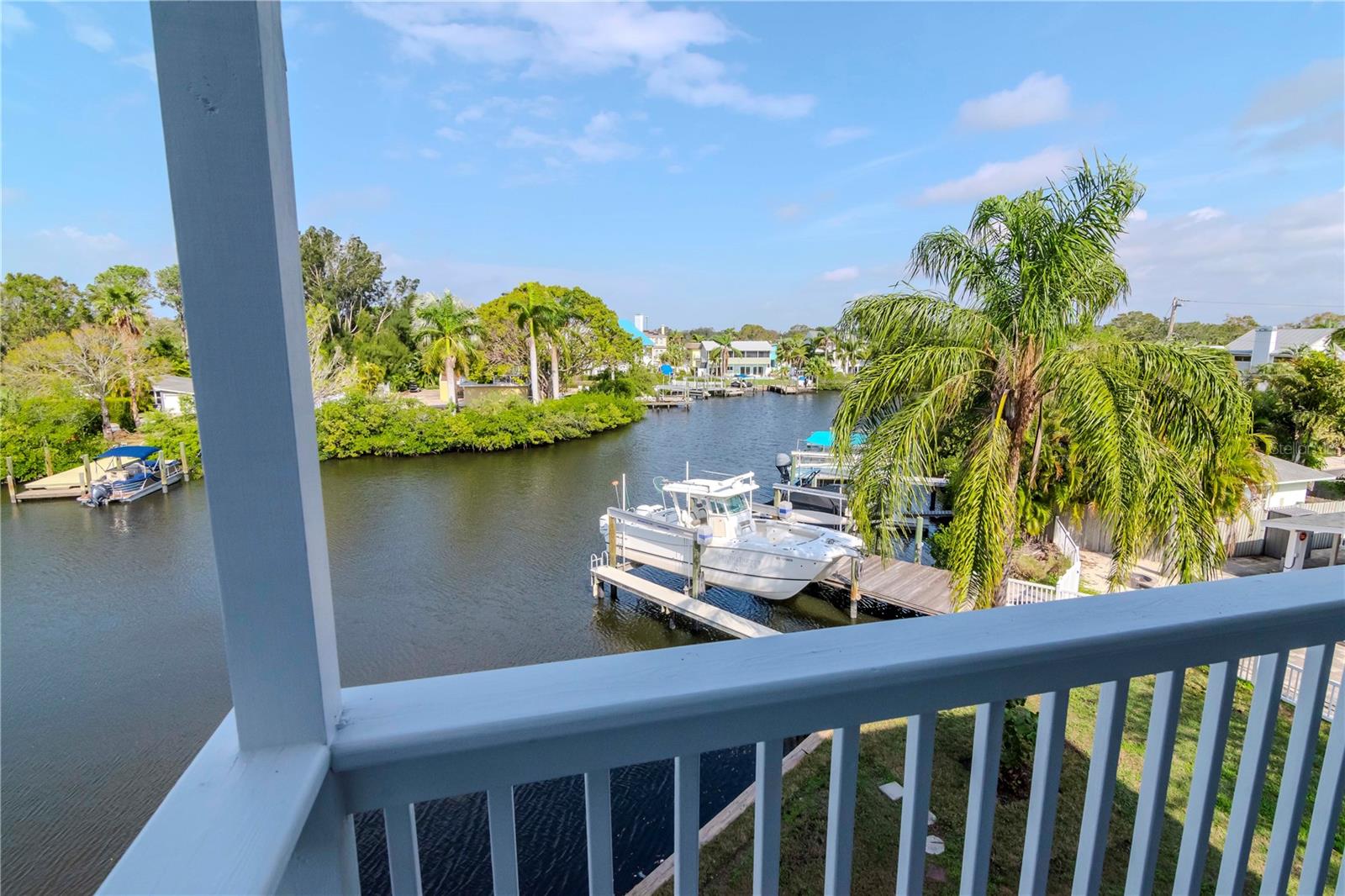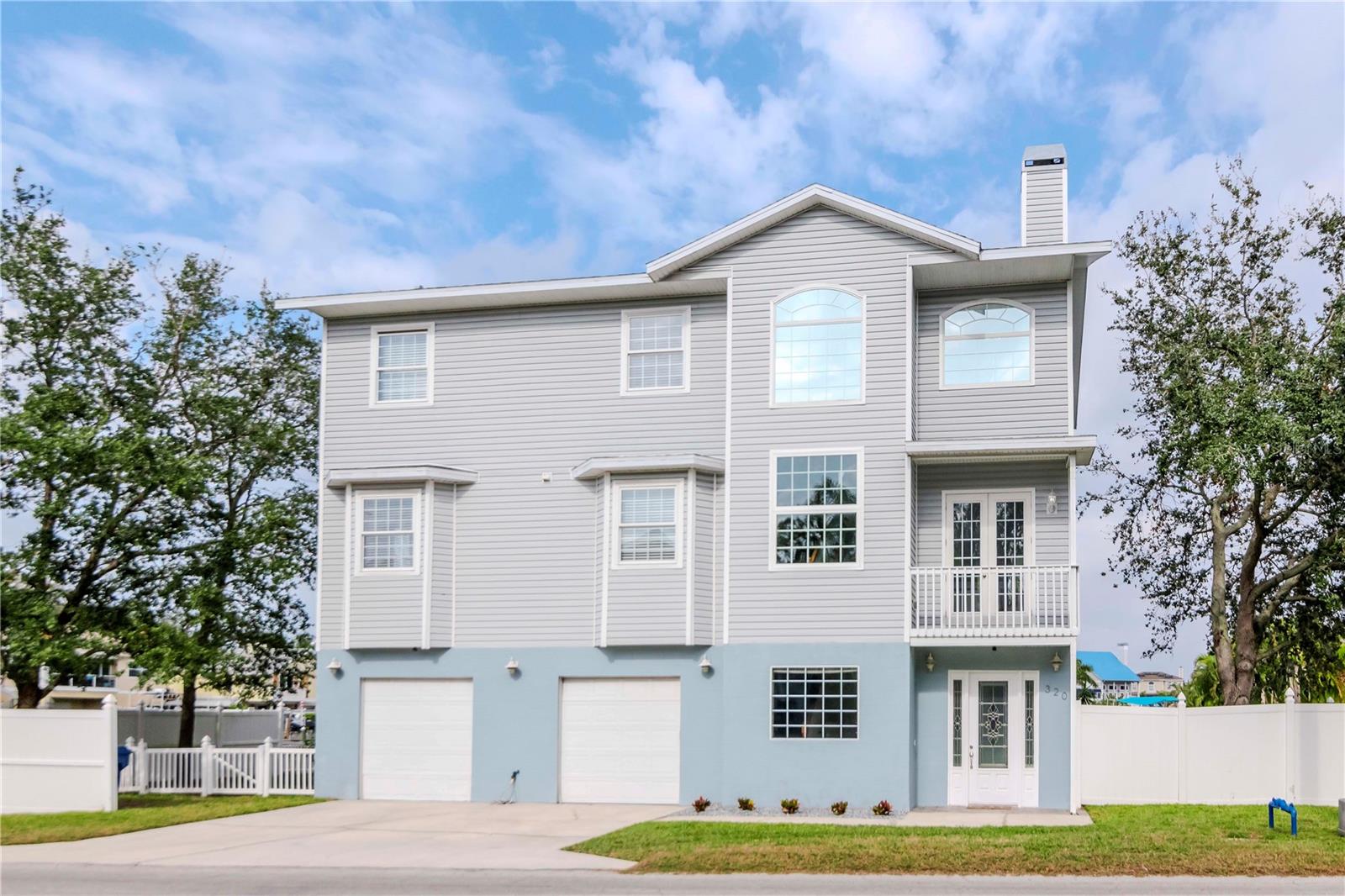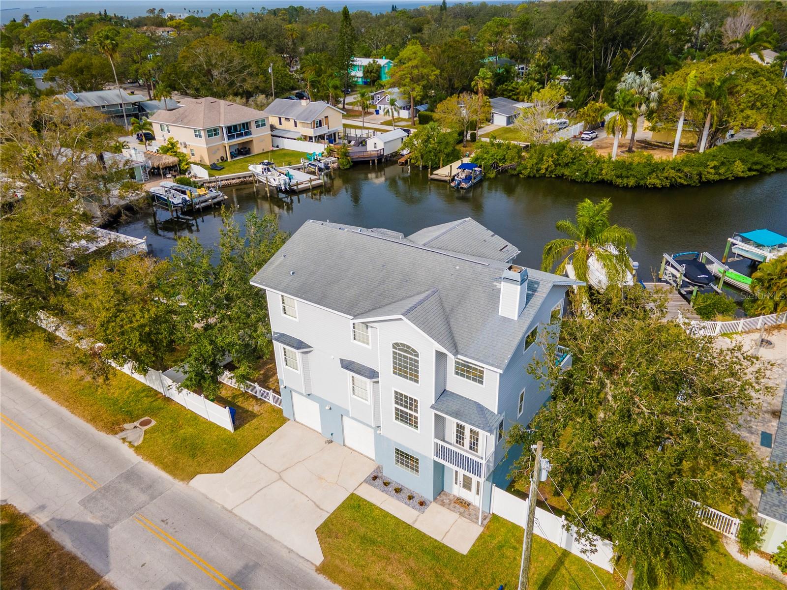 MOVE-IN READY waterfront home in the picturesque, golf cart community of Crystal Beach, near the Pinellas Trail. Waterfront stilt home on a protected bayou with 16,000 lb boat lift and no bridges to open Gulf of Mexico (Gulf of America) water. Rare, deep water access in northern Pinellas County. A true boater's paradise. Third floor has a huge primary bedroom and office with a private balcony overlooking the bayou. Walk-in shower, double sink vanity, jetted bathtub, and two walk-in closets. Second floor has two bedrooms and one and a half bathrooms. Kitchen has updated stainless steel appliances with real wood cabinets and granite countertops. New water heater and garbage disposal. Huge great room with fireplace and 20 foot ceilings. Carpet in great room has hardwood floors underneath and can easily be converted back. First floor has a two car garage with tons of storage room. Electric car charging outlet already installed in the garage for your electric car. New 25-year dimensional shingle roof installed March 2025. Whole home automatic fire extinguisher system and assumable $630 per year flood insurance policy. Zoned for A-rated Palm Harbor school district. Additional information available at www.320georgia.com