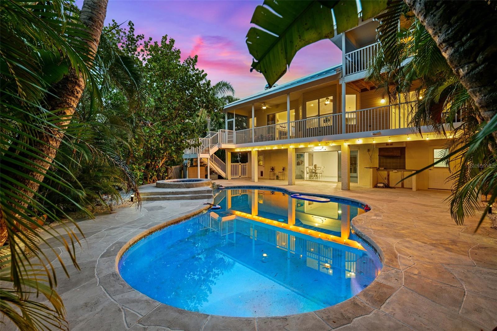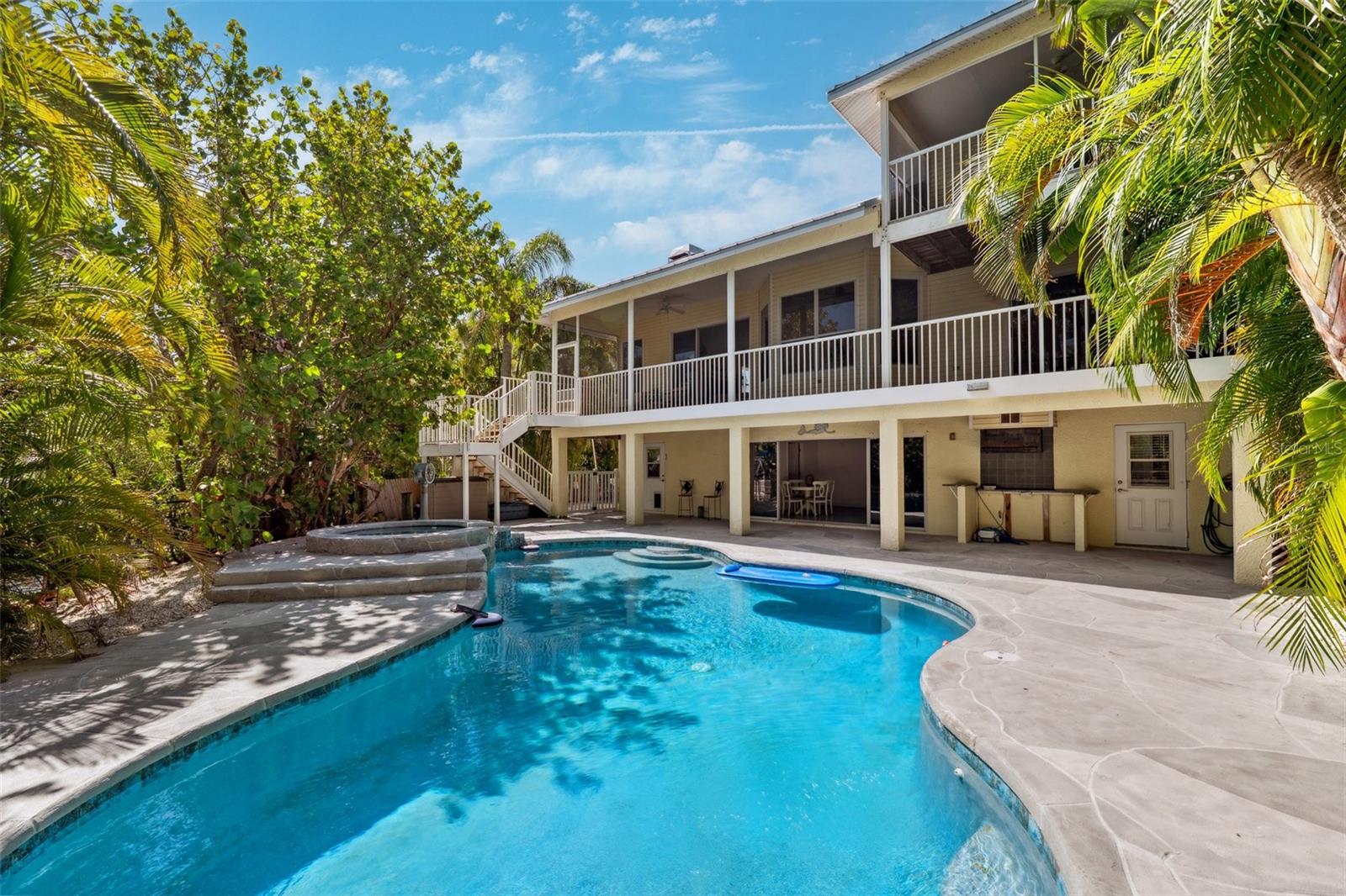 Coastal Living on the tranquil waters of Avery Bayou!! This exceptional 3-story home in Crystal Beach offers a RARE opportunity to own one of the area’s most coveted waterfront stretches. With 4 bedrooms, 3 bathrooms, expansive living areas, and a private dock with Gulf access, this property delivers the Florida lifestyle that’s becoming harder to find - casual, coastal, and effortlessly comfortable. Whether you’re a passionate boater or simply crave the serenity of waterfront living, this home delivers the lifestyle you've been longing for. Water views from every level, each balcony offering a front-row seat to nature's beauty - from your private saltwater pool to the tranquil bayou beyond. Your private dock is more than just a place to tie up - it’s a full-service haven, featuring a 15klb boat lift, water, electric, and a cleaning station. Manatees and their calves make annual visits, and as the seasons shift, dolphins glide by - reminding you that here, you're part of something truly special. The decorative stained glass double front doors make a striking first impression and lead into the open kitchen, living, and dining spaces, all designed to take full advantage of the breathtaking views through sliders. Inside, the home captures a modern coastal aesthetic: airy and inviting with a soft, beach-inspired palette, and natural light throughout. The kitchen features cabinetry with glass displays - perfect for showcasing dishes and coastal décor - while the propane fireplace serves as a warm, inviting focal point in the living area. Highlights include solid wood cabinetry, tankless gas water heater, water softener, bamboo staircase, jetted whirlpool tub in the guest bath, and additional 600 square feet of living space creates flexibility - perfect for a family room, guest suite, gym, or home office. Outside, the home is surrounded by lush tropical landscaping, including palm trees and sea grapes, offering a true coastal sanctuary. The saltwater pool - resurfaced with stamped concrete in 2020 - offers a private retreat, complete with a heater and color-changing themed lighting to set the mood for evening swims or weekend gatherings. The outdoor grilling station, connected to propane gas, makes entertaining effortless. A double-wide gate provides access to the fully fenced yard, with plenty of room to pull in an RV, boat trailer, or other large toys. You’ll also find an RV hookup, irrigation system, and in-wall pest control for added ease of ownership. With a metal roof, you’ll enjoy added durability and peace of mind for years to come. And when it’s time to explore beyond the bayou, several nearby islands and beaches along the Gulf Coast offer some of the best boating and beachcombing in the area - all just a short cruise from your dock. Crystal Beach is a golf cart-friendly community with local charm and easy access to the public beach at The Shores, where you’ll find a pavilion and unobstructed Gulf sunsets just down the road. The Pinellas Trail runs right thru town, ideal for walking, biking, or jogging your way through some of the area’s most scenic spots. Families will also appreciate the top-rated schools nearby. With a peaceful waterfront setting, generous living space, and prime location, this property captures the essence of laid-back luxury in one of Pinellas County’s most desirable communities. Rarely does a home like this become available on Avery Bayou. See... Fall in Love... Make it YOUR own!!