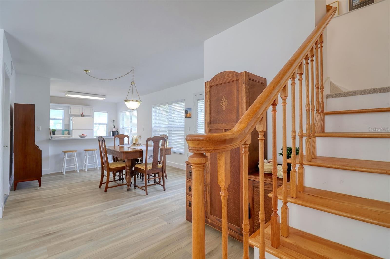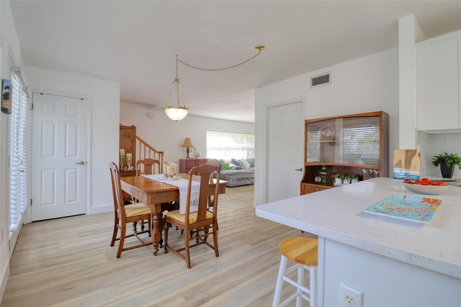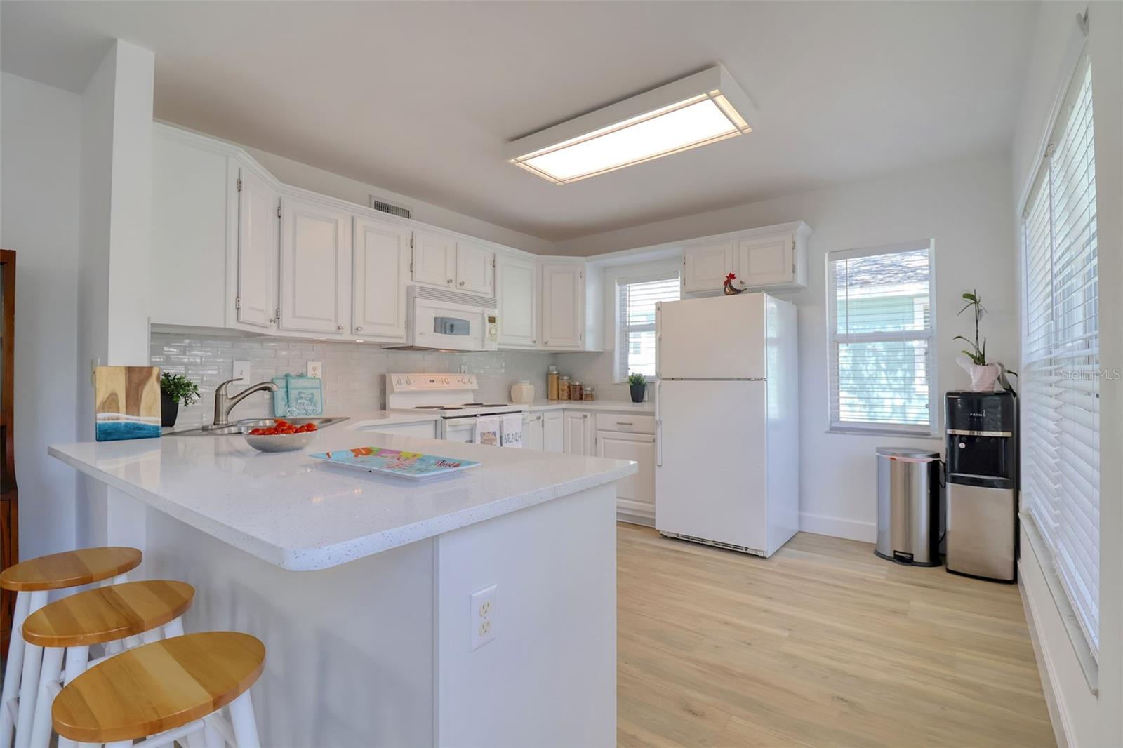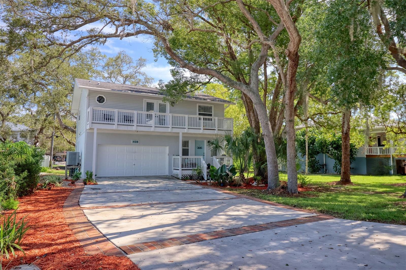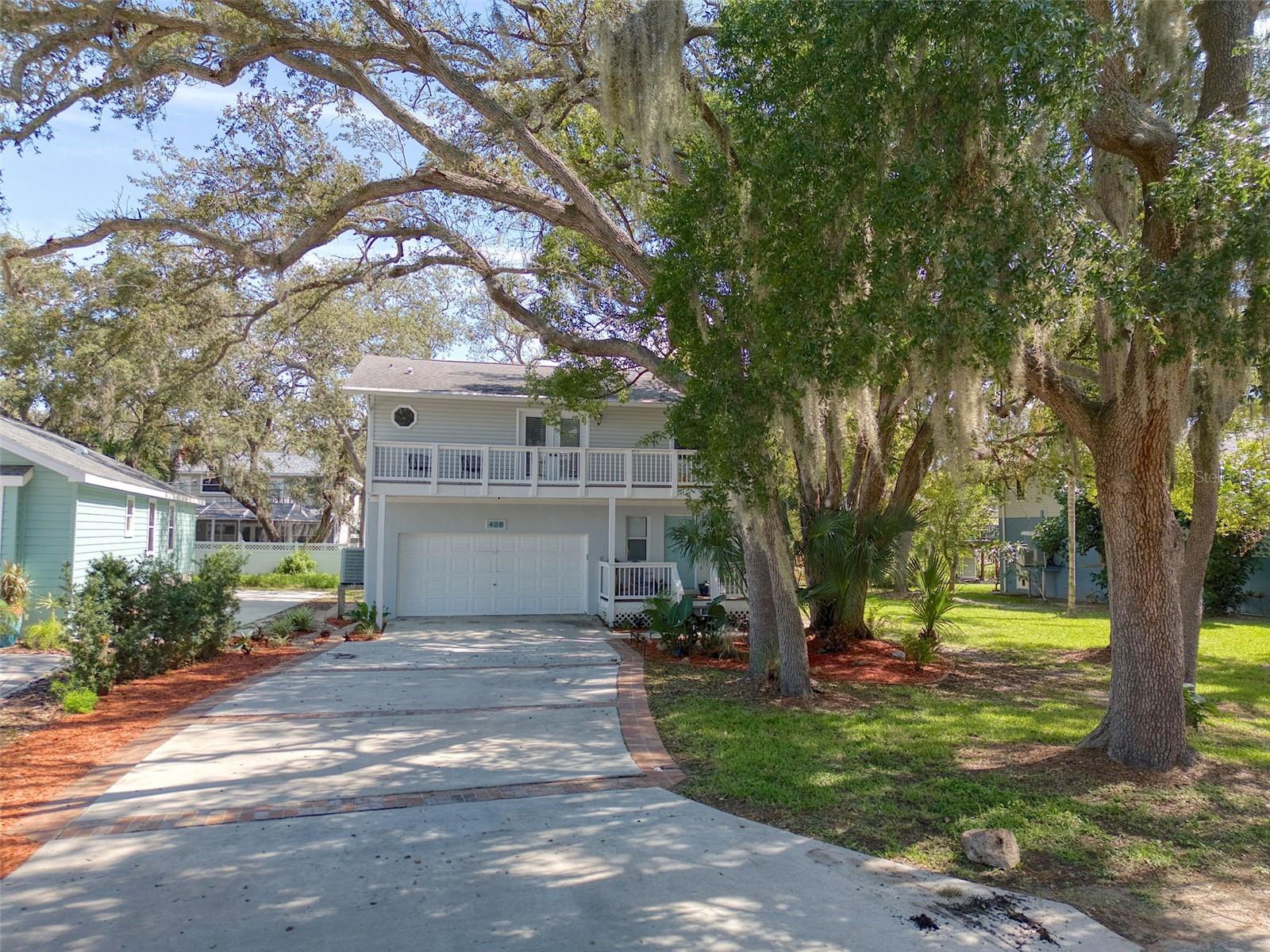 Bright and beautifully chic aptly describes this pristine 3 bedroom, 2 bath, home with amazing street appeal, in the highly sought after golf cart friendly Crystal Beach neighborhood which has a quaint and easygoing charm. Very importantly, this home has NEVER FLOODED! This coastal home epitomizes the Crystal Beach vibe, with its Key West facade, second floor balcony, stunning blonde luxury vinyl plank flooring, and coastal color tones. This well laid out open floor plan boasts a welcoming living room, dining room, and a kitchen with a white glass backsplash, modern quartz countertops, solid wood cabinetry, and white appliances. The primary bedroom suite is spacious and luxurious and is split from the other 2 bedrooms for privacy. The ensuite bathroom has a walk in shower with a frameless glass door and jacuzzi tub. All of this and a large walk in closet! The generous sized bedroom #2 is currently used as an office and has access via French doors to the attractive front deck. The upstairs area is completed by a comfortable family room, bathroom #2, bedroom #3 and a laundry room. The spacious back deck and grassy backyard has room for a pool on this 50x118 sq. ft lot and is accessed via french doors for perfect indoor/outdoor entertainment living. There is also plenty of storage and a 2 car garage. This beautiful home is move in ready with tasteful touches such as; renovated kitchen with quartz countertops, 6" base boards, brand new vinyl plank floors, new carpet upstairs and neutral color tones all achieved with elegance and great taste. The roof was replaced in 2015. Crystal Beach also allows short term rentals. The location is also amazing; walk or jump in your golf cart to nearby shops, restaurants, or a short walk or bike ride to Pinellas Trail. If you love the outdoors there are many recreational activities, from golf to fishing and boating. There are several marinas and boat ramps in close proximity. Couple this with excellent schools, pristine beaches and all that fabulous Crystal Beach has to offer and you have the ultimate Florida lifestyle home.
