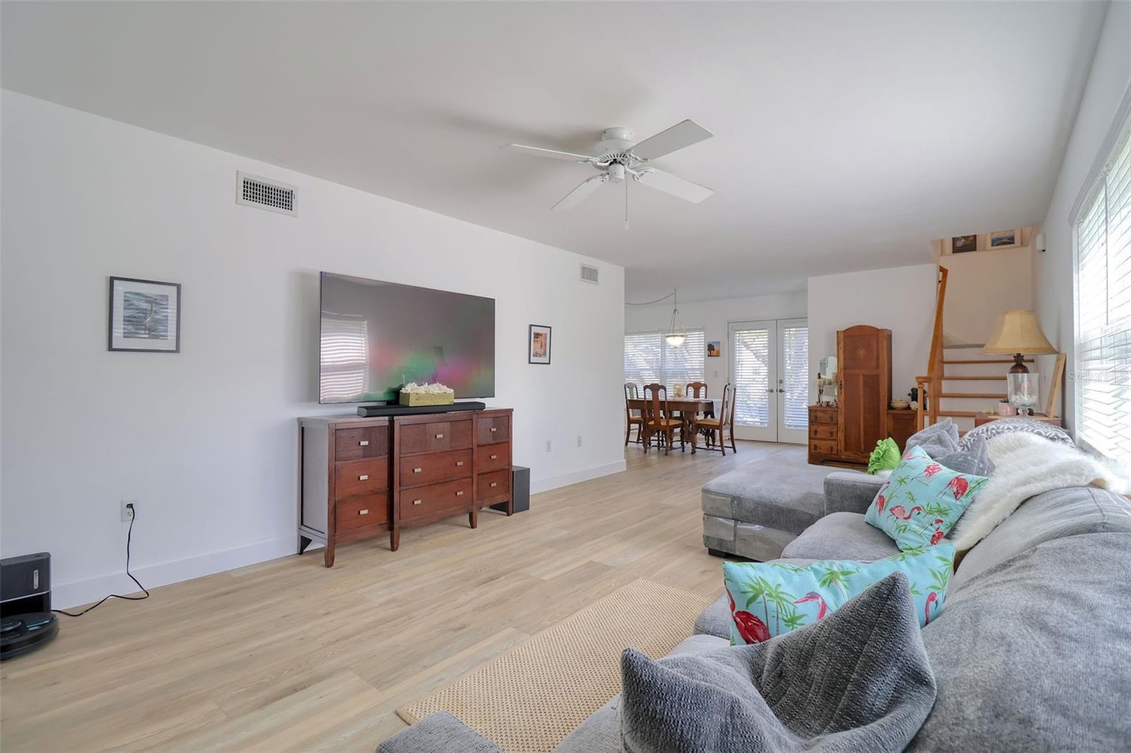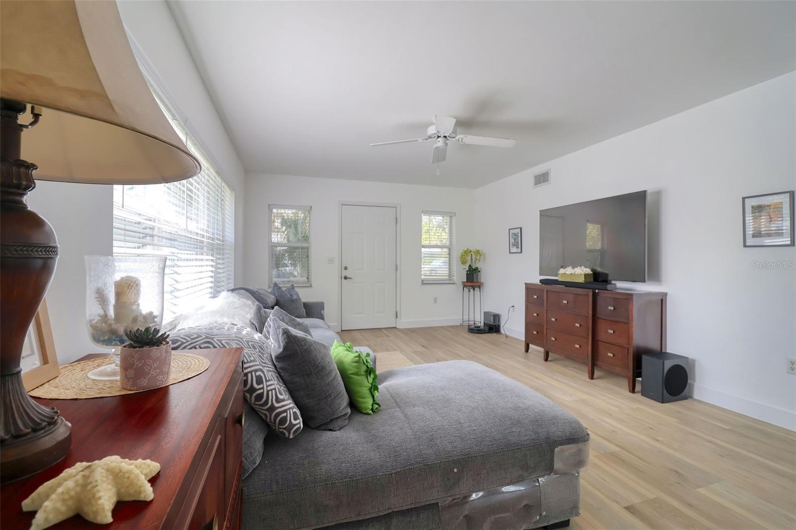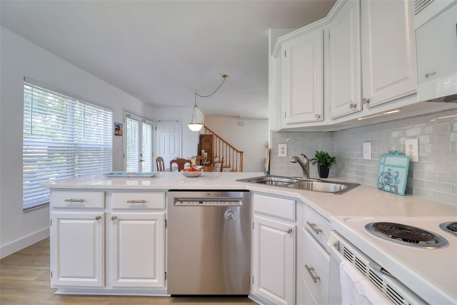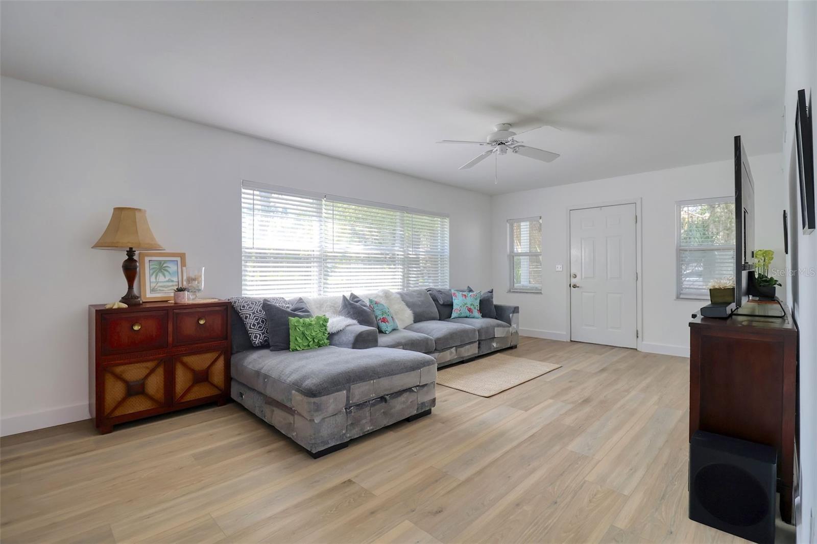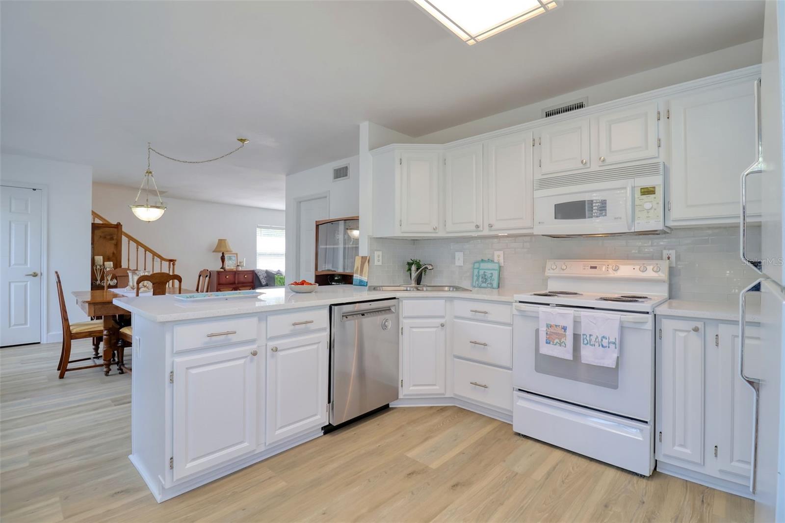 Bright and beautifully chic aptly describes this pristine 3 bedroom, 2 bath, home with amazing street appeal, in the highly sought after golf cart friendly Crystal Beach neighborhood which has a quaint and easygoing charm. Very importantly, this home has NEVER FLOODED! This coastal home epitomizes the Crystal Beach vibe, with its Key West facade, second floor balcony, stunning blonde luxury vinyl plank flooring, and coastal color tones. This well laid out open floor plan boasts a welcoming living room, dining room, and a kitchen with a white glass backsplash, modern quartz countertops, solid wood cabinetry, and white appliances. The primary bedroom suite is spacious and luxurious and is split from the other 2 bedrooms for privacy. The ensuite bathroom has a walk in shower with a frameless glass door and jacuzzi tub. All of this and a large walk in closet! The generous sized bedroom #2 is currently used as an office and has access via French doors to the attractive front deck. The upstairs area is completed by a comfortable family room, bathroom #2, bedroom #3 and a laundry room. The spacious back deck and grassy backyard has room for a pool on this 50x118 sq. ft lot and is accessed via french doors for perfect indoor/outdoor entertainment living. There is also plenty of storage and a 2 car garage. This beautiful home is move in ready with tasteful touches such as; renovated kitchen with quartz countertops, 6" base boards, brand new vinyl plank floors, new carpet upstairs and neutral color tones all achieved with elegance and great taste. The roof was replaced in 2015. Crystal Beach also allows short term rentals. The location is also amazing; walk or jump in your golf cart to nearby shops, restaurants, or a short walk or bike ride to Pinellas Trail. If you love the outdoors there are many recreational activities, from golf to fishing and boating. There are several marinas and boat ramps in close proximity. Couple this with excellent schools, pristine beaches and all that fabulous Crystal Beach has to offer and you have the ultimate Florida lifestyle home.
