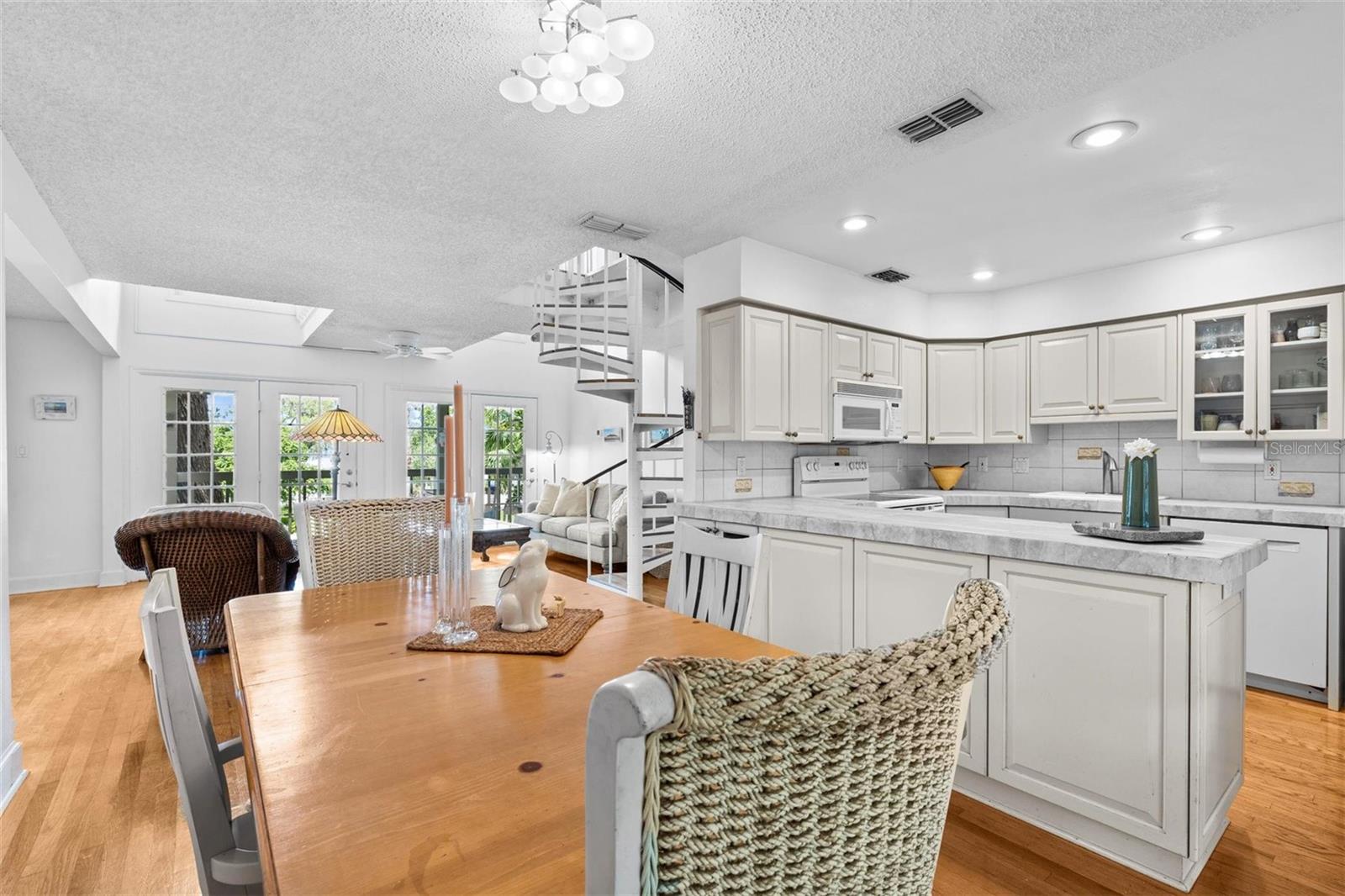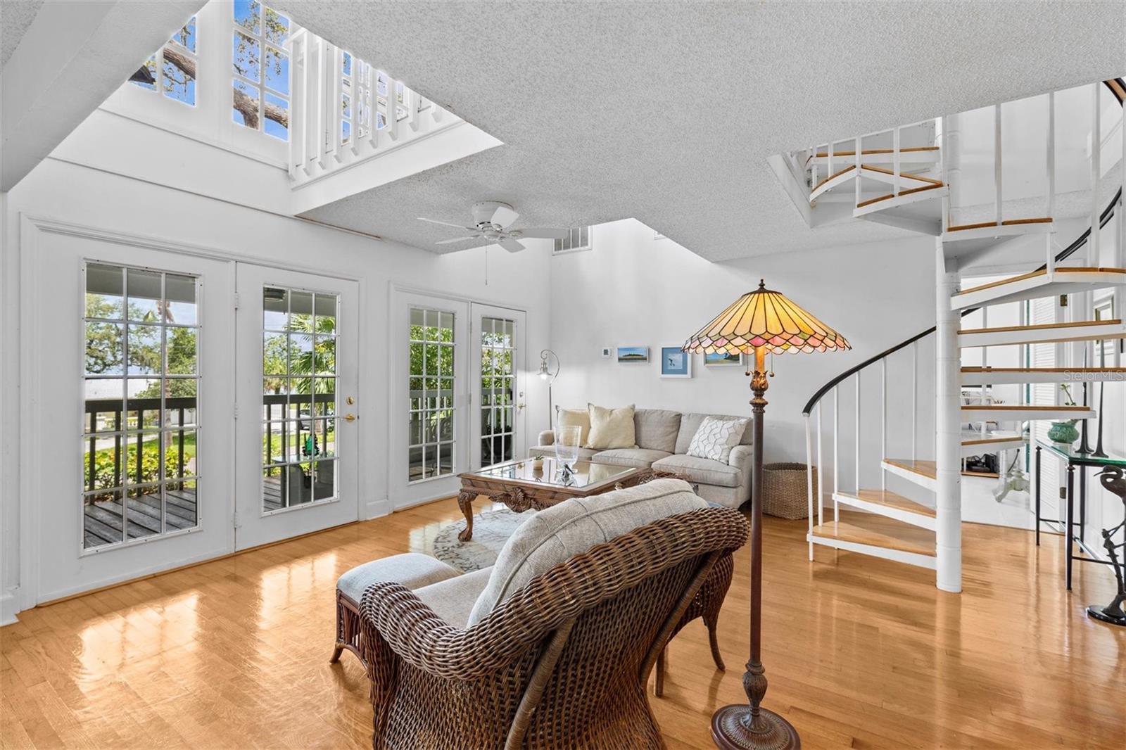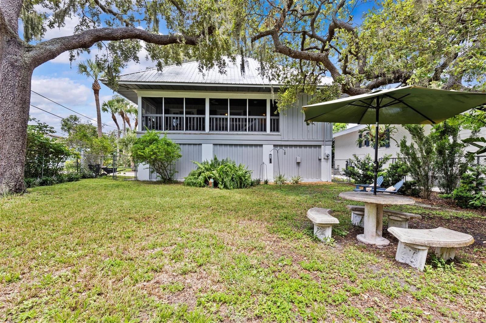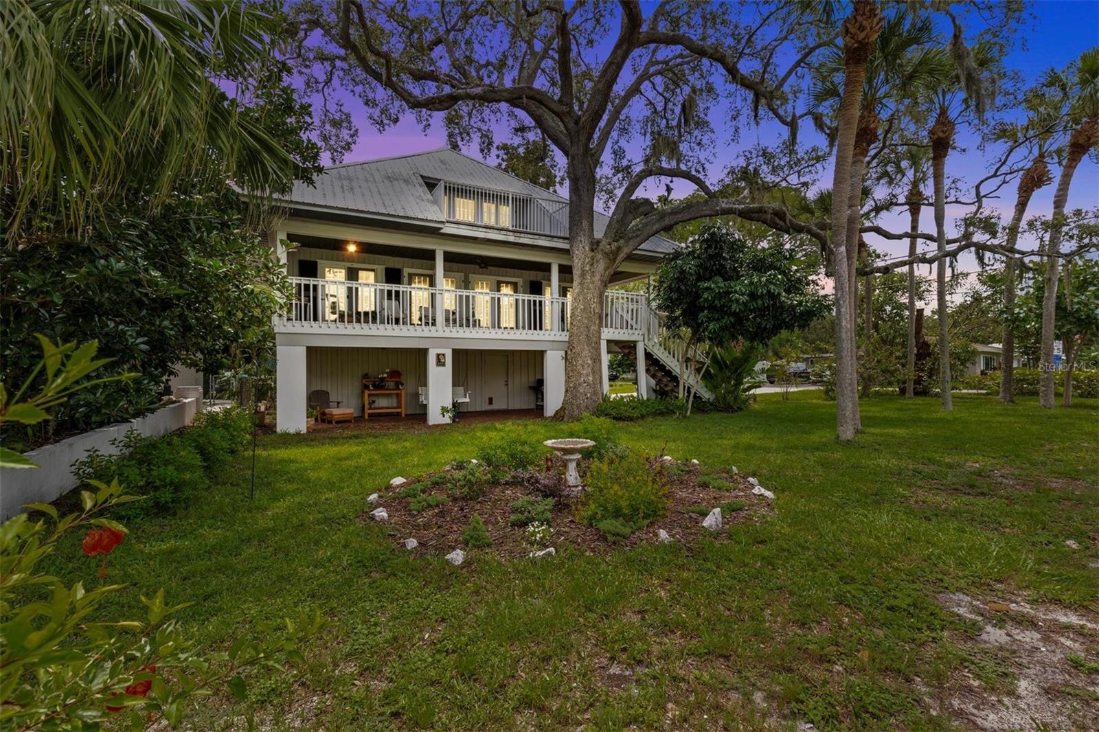 Coastal Key West home with Gulf water views! Located on a large corner lot in the heart of Crystal Beach. This property has never flooded! Featuring the great room layout with wood floors in the main living area. Two brand new A/C units in 2024 & 2025 and a metal roof in 2011. Three way split floor plan. The primary suite is up the spiral staircase with a private sitting room and a 3rd story private porch with Gulf water views! Plenty of natural light shines in throughout the whole home. Seven sets of French doors and spacious porches off every room for your outdoor living enjoyment! A very peaceful and serene treehouse style setting with Gulf breezes. The sunrise & sunsets offer a spectacular pallet of pastel color skies in the morning and evening, along with birds chirping. Wonderful cross ventilation on spring and fall days. Full size air conditioned laundry room off the back porch. Fenced-in backyard.The garage is spacious enough for 4 cars, workshop and room to store your kayaks, paddle boards & golf cart. This is a non-deed restricted area with no HOA. Your watercrafts & recreational vehicles can be stored on site. Located less than a block away from the Pinellas Exercise Trail offering a 45 mile stretch. A few short blocks to Crystal Beach’s Live Oak Park, Gulf Shore Park, new fishing pier being installed, and the coastline shell walking path down S. Gulf Dr. Less than 10 minutes to Downtown Dunedin to the south, or Tarpon Springs to the north. A prime Location! Come live the dream in the charming coastal community of Crystal beach, established in the early 1900s. Still holding the old world charm. A home you’ll be sure to be happy to own!