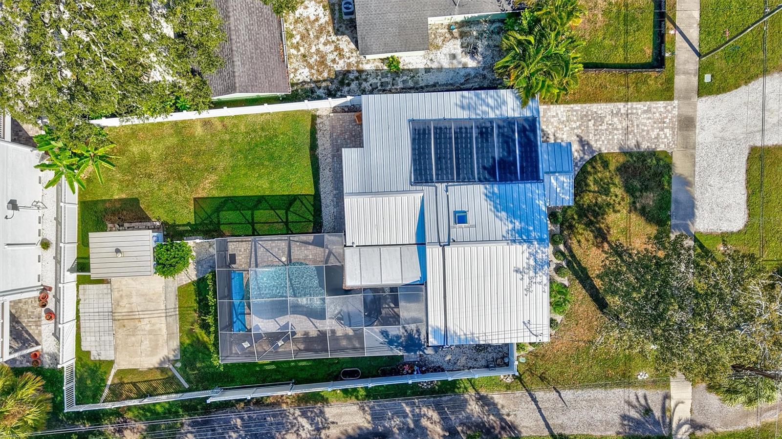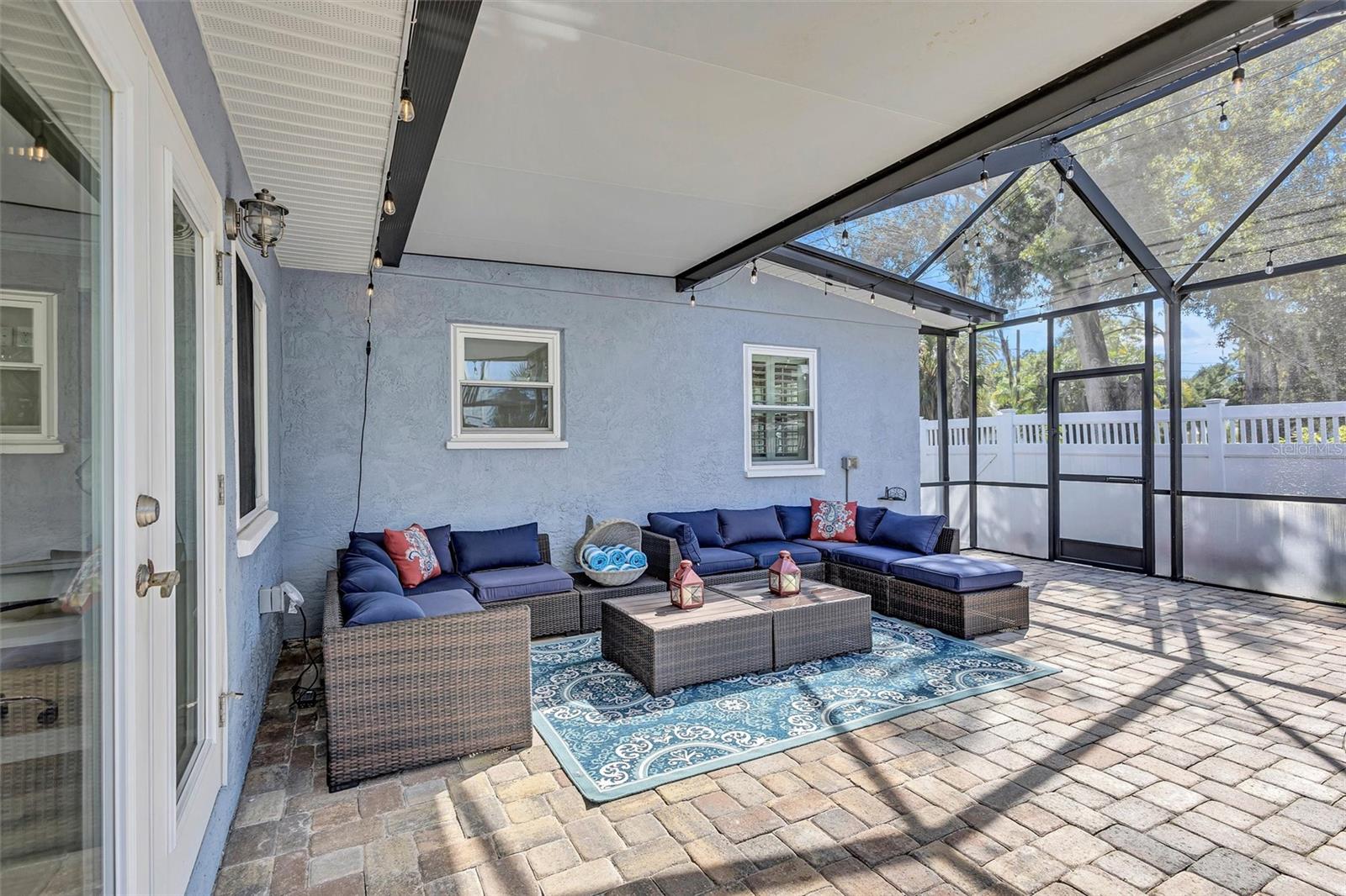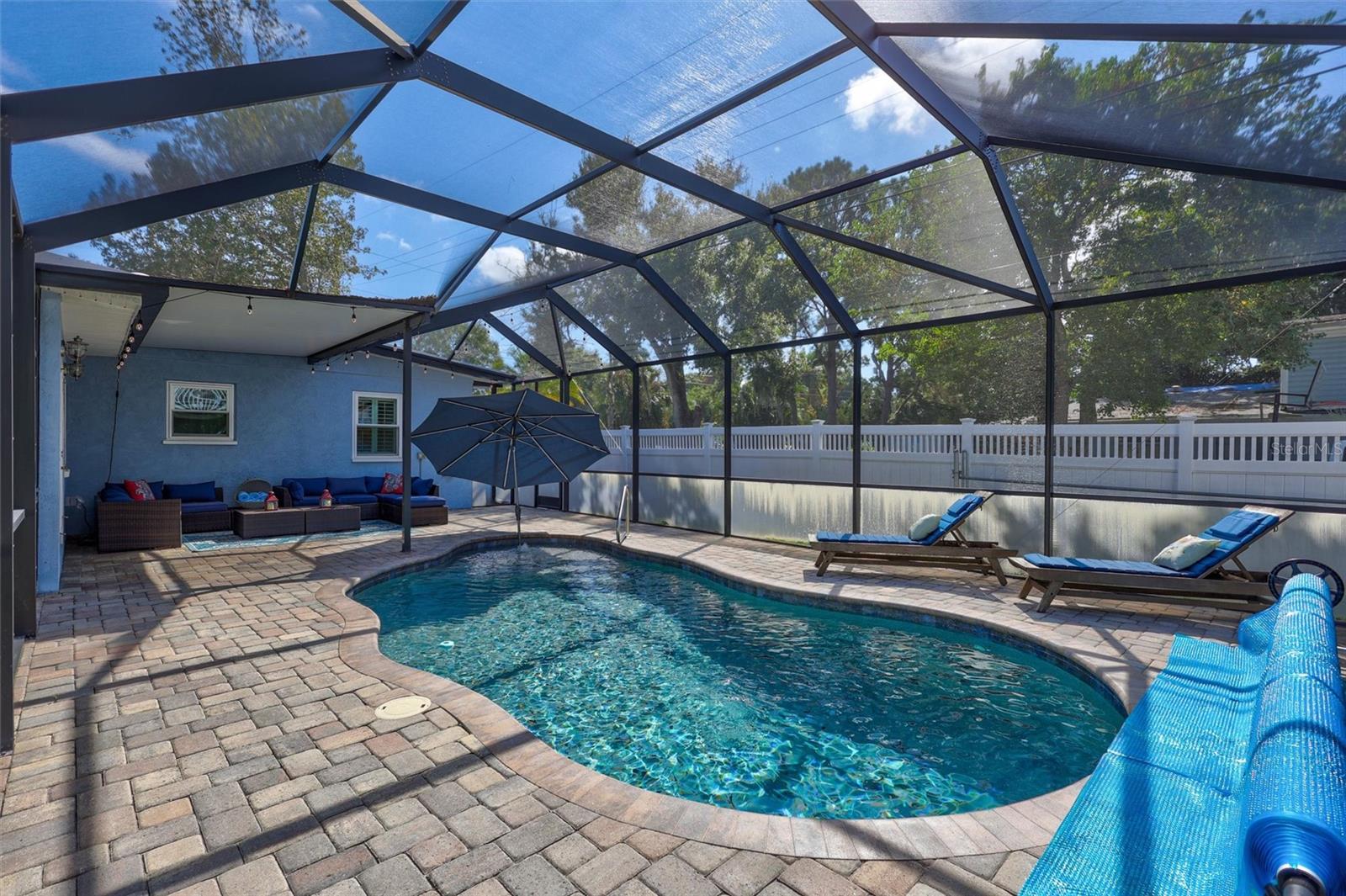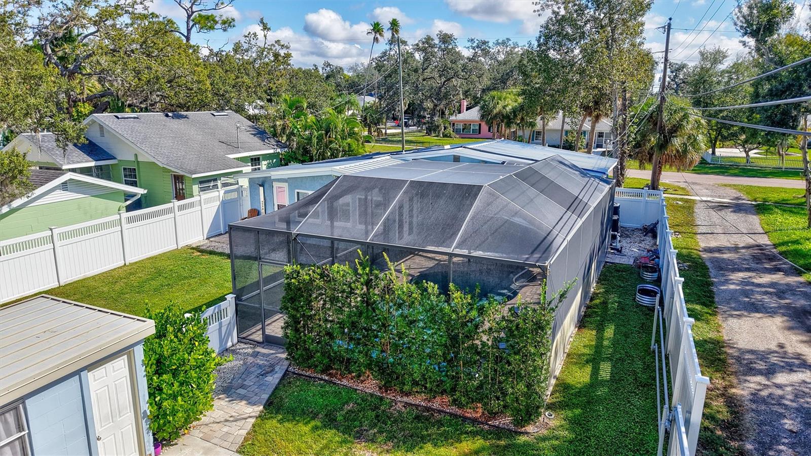 Come home to Crystal Beach — a charming, golf cart–friendly waterfront community where neighbors gather to watch breathtaking sunsets by the shore. This beautifully updated home has been completely transformed and is move-in ready. Step inside to an inviting open floor plan featuring plank tile flooring throughout, fresh interior paint, custom lighting, and a stunning wood plank ceiling. Enjoy peace of mind with hurricane-impact windows, solid block construction, a metal roof, and a brand-new AC system installed in 2023. Plus, new solar panels (fully paid off!) efficiently heat the sparkling saltwater pool, helping you relax and unwind in your private backyard oasis. The chef’s kitchen is a showstopper, offering bar seating, stainless steel appliances, granite countertops, and custom wood cabinetry. Both bathrooms have been tastefully remodeled with elegant tiled showers, glass doors, and brushed nickel rain shower heads. The primary suite features a walk-in closet and stylish barn doors for both the bedroom and bathroom, while the second bedroom (also with a barn door) currently serves as a cozy additional living area with direct pool access. The indoor laundry room is spacious and has access to the large fenced back yard. Step outside to your screened lanai and enjoy the heated saltwater pool, outdoor shower with hand-held rain shower and sink, a fully fenced yard, and detached storage shed—plus plenty of space for extra parking. The home features an additional parking pad in the rear of the home accessed by the alley, which is the perfect spot for the RV, Boat or extra cars. The block shed is equipped with electric and is perfect to store all your lawn tools and bikes, or to create your mini-workshop. The front pavered driveway is beautiful and spacious, and additional parking is also in the front of the home on the shelled drive. This incredible home is located just steps from the water and minutes from local dining and shops. There is an OPTIONAL HOA (Crystal Beach Community Association) with fees of just $30 per year, which hosts numerous events throughout the year for the community. Crystal Beach is the perfect location to launch your paddle boards, take in the sunset, meet up with friends, and enjoy the Live Oak park located across from the water. The community will soon have a new Fishing pier which is currently being re-built. Zoned for great schools including Ozona Elementary, Palm Harbor Middle and Palm Harbor University. Whether you’re looking to downsize, find your perfect winter retreat, or invest in a property that can be leased short or long term, (as there are no rental restrictions here!) this Crystal Beach gem checks every box.