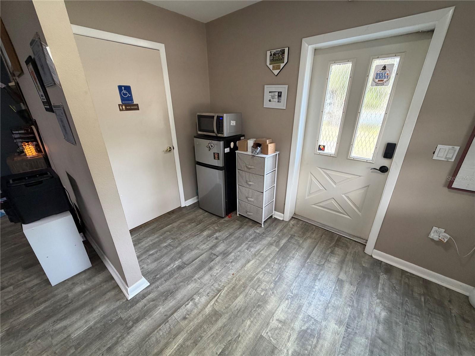 Take your business to the next level with this rare live/work property designed for convenience and flexibility. Ideal for entrepreneurs or professionals, this property features a 1-bedroom, 1-bath living space with a full kitchen, along with a separate entrance, welcoming lobby, and two private offices with 2 additional bathrooms. Outside, you’ll find a paved parking lot and disability-accessible walkways to the entrance. Two negotiable 240-square-foot air-conditioned sheds provide nearly 500 square feet of additional conditioned storage. There is also flex space that can easily serve as a second bedroom, office expansion, or multipurpose room. This property can be financed as a home with FHA,VA, USDA or conventional financing or a commercial building with options like SBA depending on your situation and needs and use of the property.