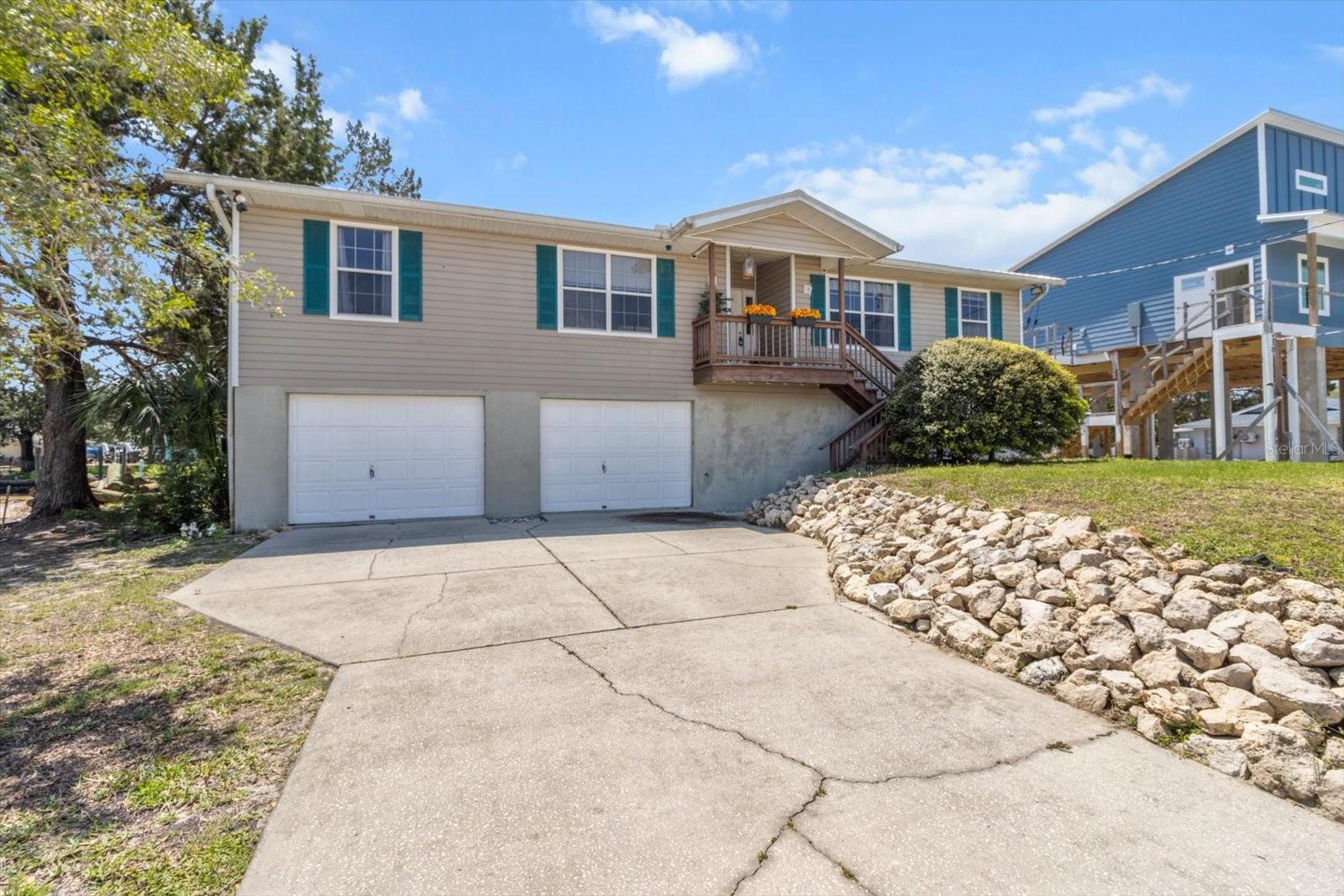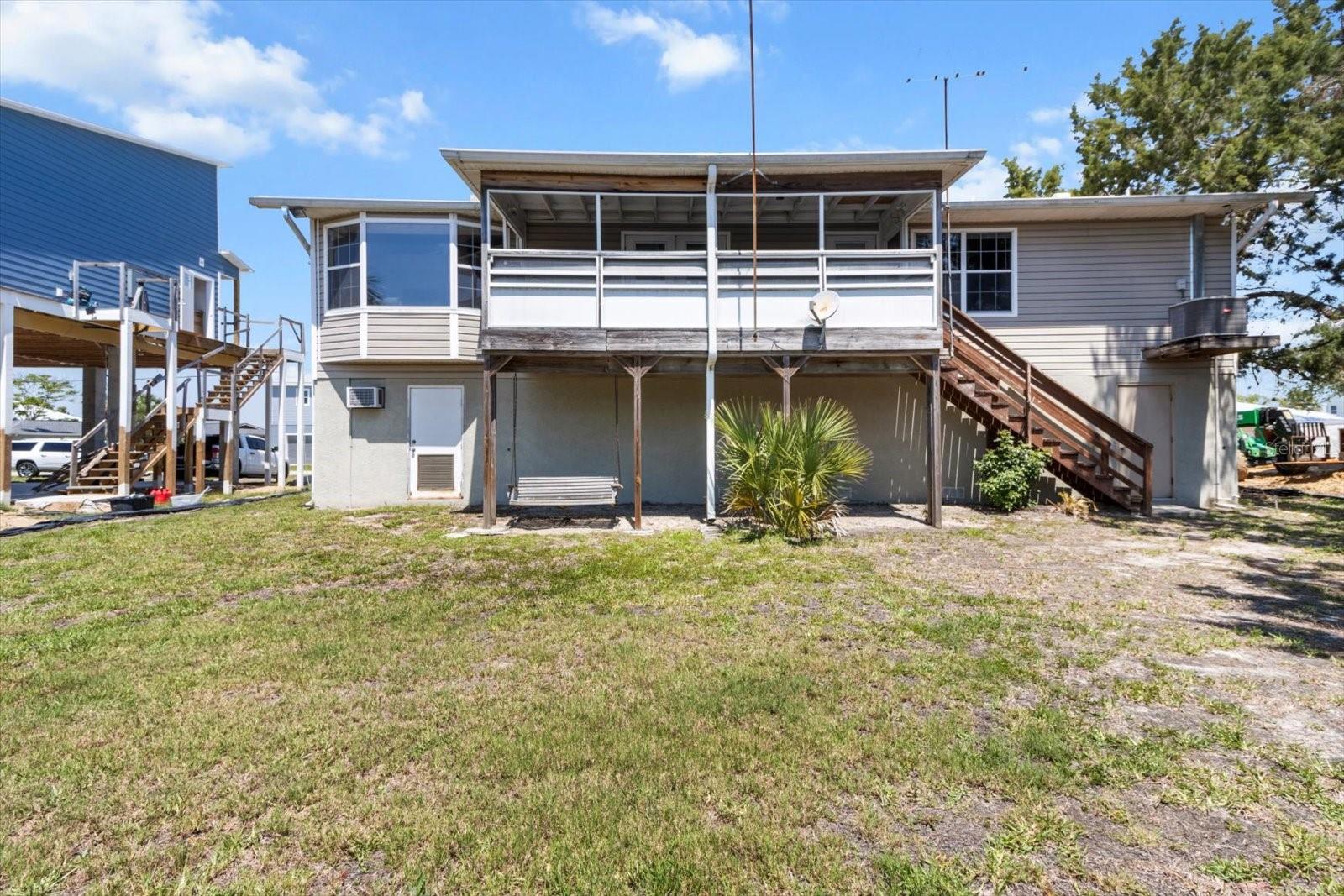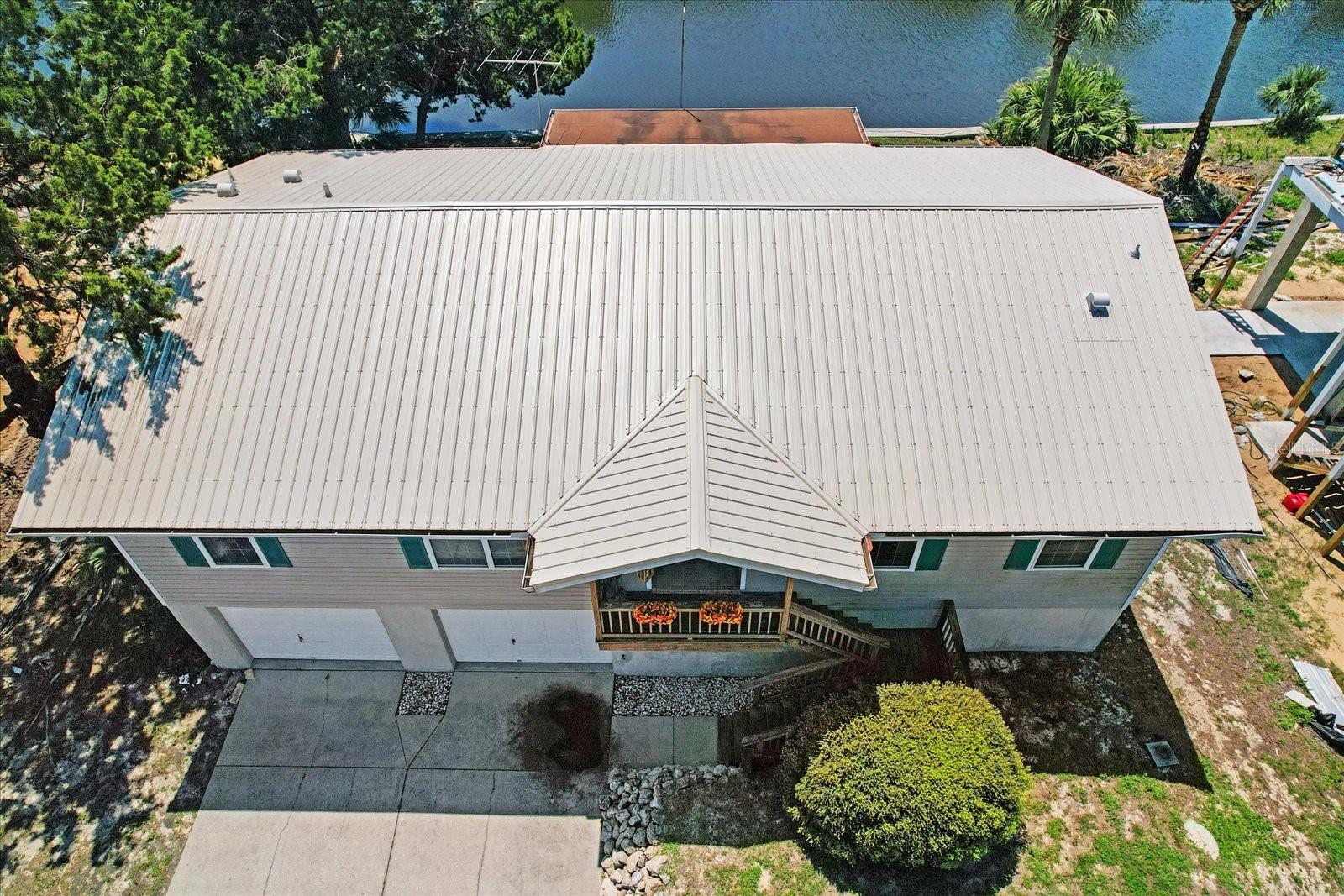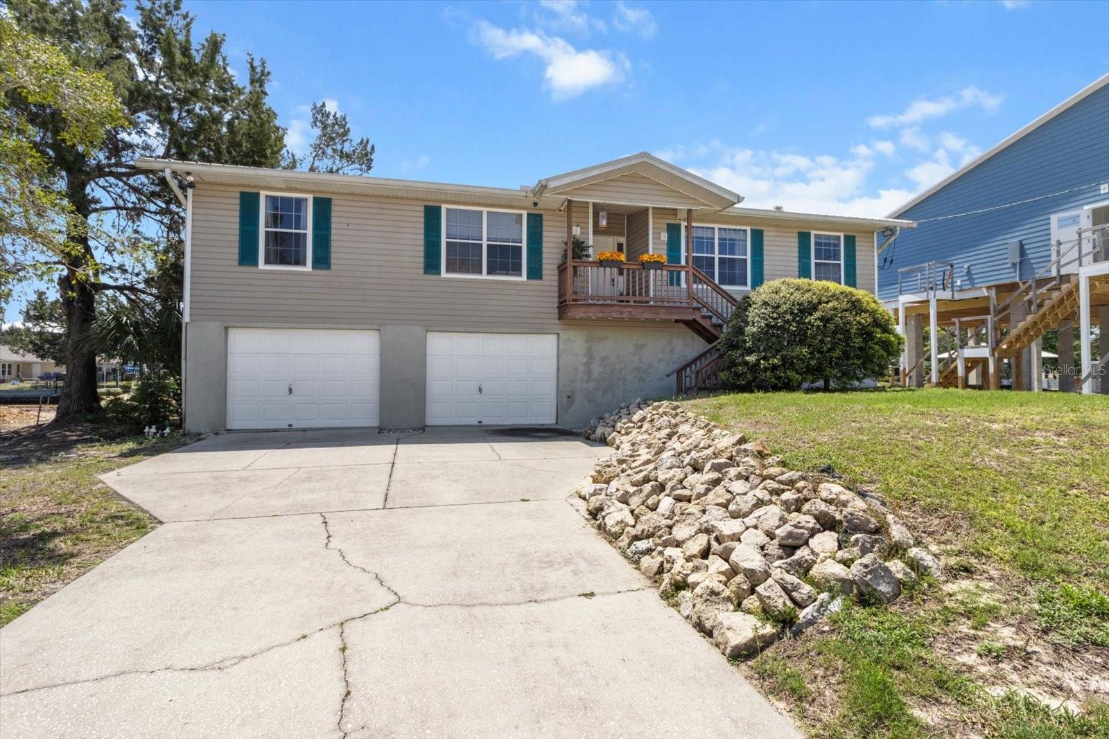 Waterfront Stilt Home in Dixie Shores! NEVER FLOODED! No restrictions on rentals - VRBO Welcome! 3 bedrooms, 2 baths, wood & carpet flooring - huge garage! Workshop under the home - concrete walls - 1529 sq. ft of parking & workroom! New HVAC in 2023; new roof in 2020! Could use some TLC inside but factored into price! Take a look - not many under 600K that never flooded!