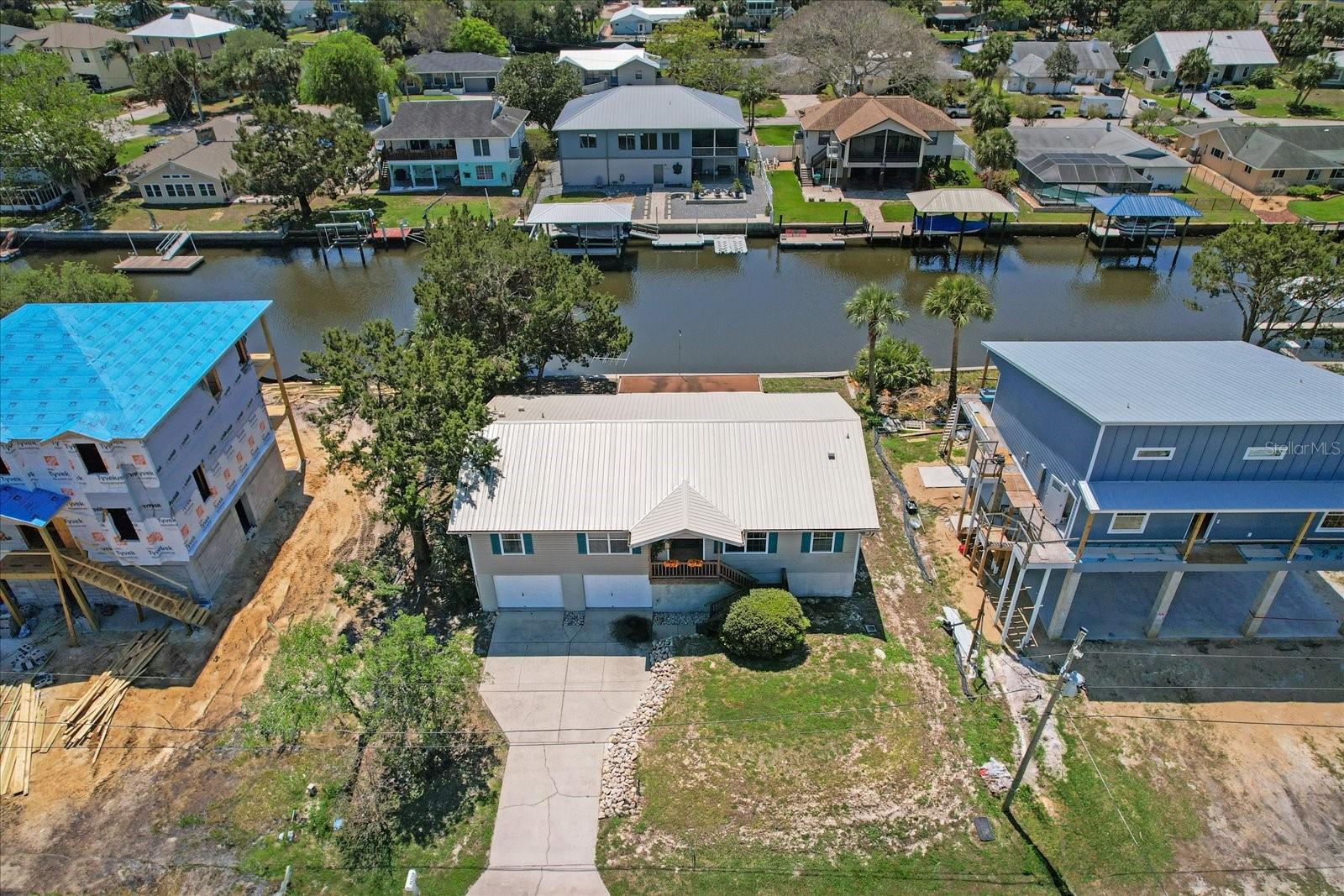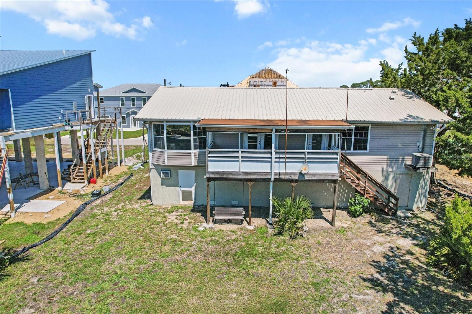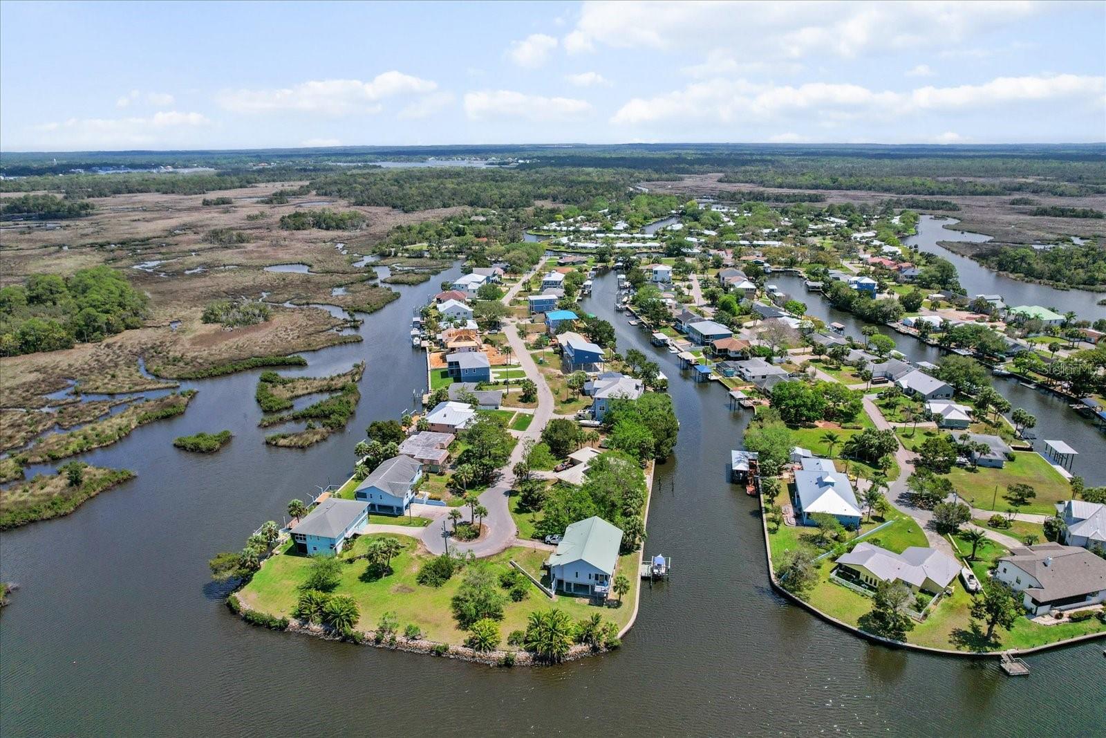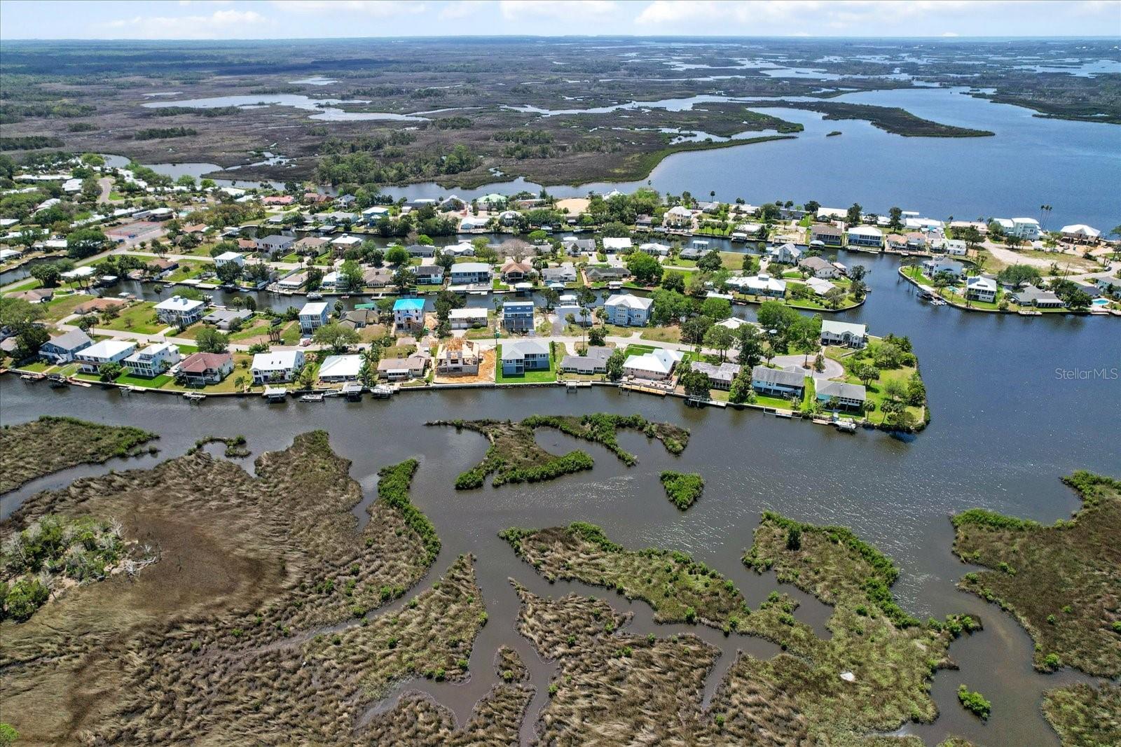Waterfront Stilt Home in Dixie Shores! NEVER FLOODED! No restrictions on rentals - VRBO Welcome! 3 bedrooms, 2 baths, wood & carpet flooring - huge garage! Workshop under the home - concrete walls - 1529 sq. ft of parking & workroom! New HVAC in 2023; new roof in 2020! Could use some TLC inside but factored into price! Take a look - not many under 600K that never flooded!