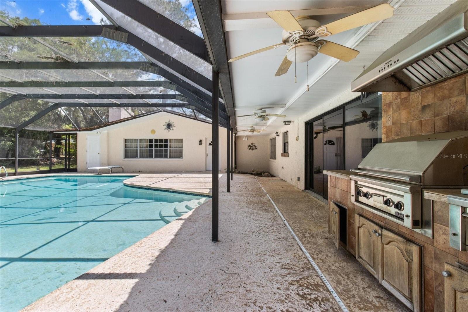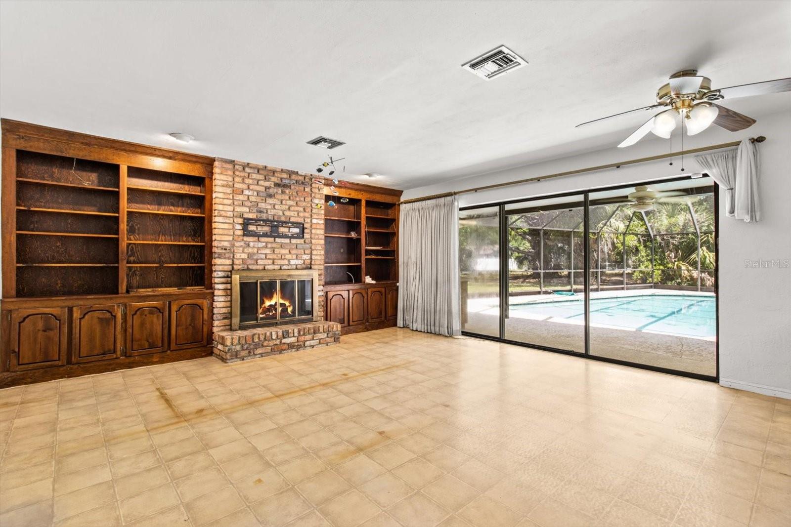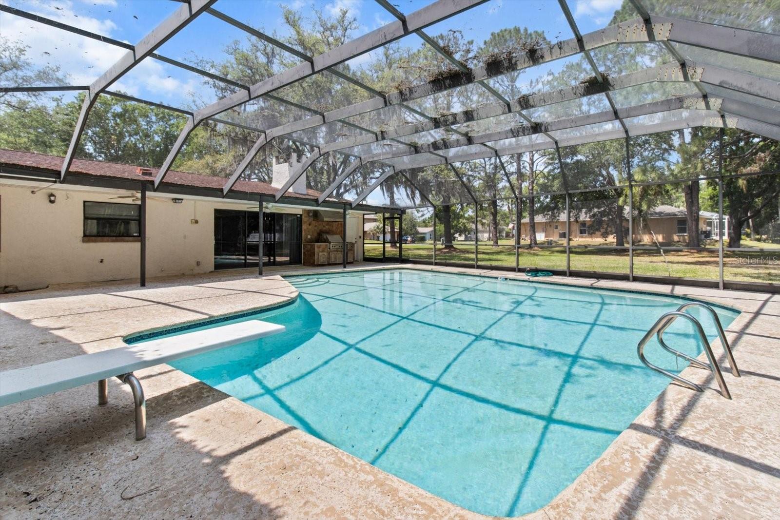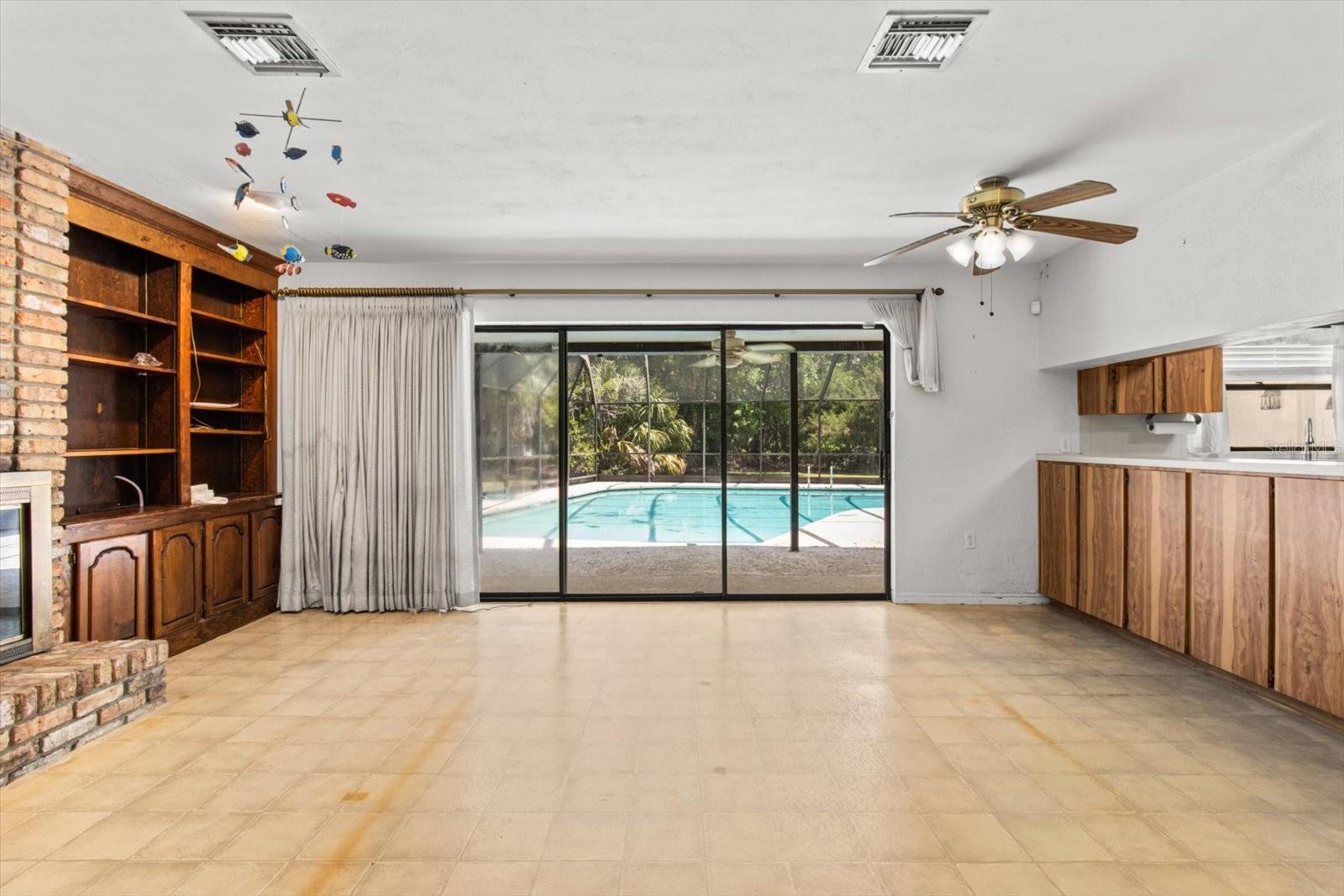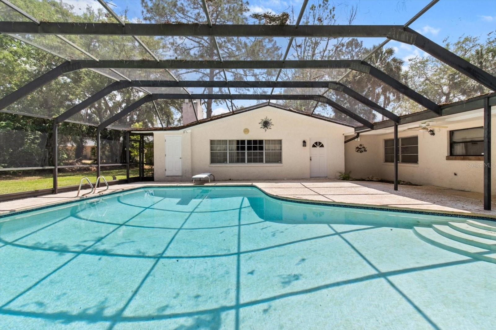 A Rare opportunity to purchase a "Diamond in the Rough". The perfect VRBO - close to water & golf course. Huge 4 or 5 bedroom, 4 1/2 bath, 3 fireplaces, 2 family rooms, an enormous inground pool with a diving board and an outdoor kitchen. 3327 sq. ft. of living area; 4163 under roof. Yes, it flooded in Helene and seller had all drywall & insulation removed. Many walls are plaster. Appliances are working but seler makes NO representation as to the condition. Situated on 3 lots near the Plantation Golf Course. Offered at $375,000.