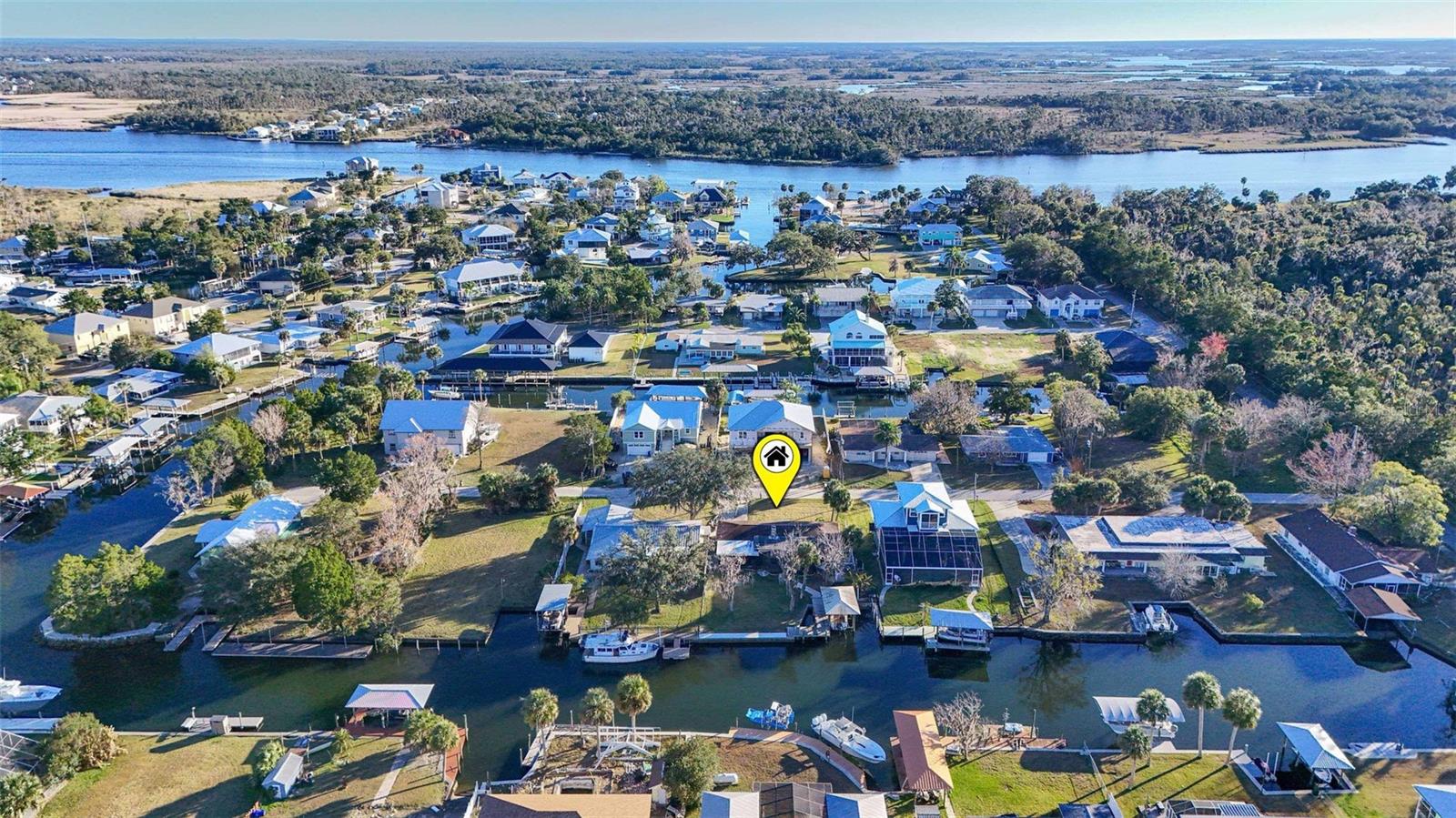 Coastal Waterfront Living in Woodland Estates! Welcome to this 3-bedroom, 2-bath home with a desirable open split floor plan, perfectly positioned on the west side of Woodland Estates. With direct canal access and a private boat lift operated by remote, this home invites you to embrace the laid-back Florida lifestyle. Cast a line or simply enjoy the view—tarpon, ladyfish, redfish, sheepshead, manatees, and dolphins are frequent visitors to the canal just beyond your backyard. Inside, a see-through double-sided fireplace adds warmth and coastal charm, creating an inviting connection between living spaces. The kitchen features granite countertops, offering both style and durability. The primary bedroom includes an en-suite bath with a walk-in shower, providing a comfortable and private retreat. Step out to the screened-in lanai and unwind while overlooking the tranquil waterway—ideal for morning coffee or sunset gatherings. The fenced backyard, storage shed, and irrigation system add both function and convenience. Designed for ease of living, the home also offers wheelchair accessibility, making it a thoughtful option for a wide range of buyers.