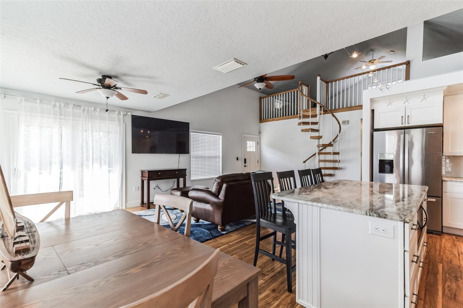 Experience a slice of paradise in the heart of Crystal River's waterfront community! Nestled in a one-of-a-kind location, this stunning 1/3-acre waterfront property offers the best of both worlds—whether you prefer to take your boat across the bay for dinner or enjoy a ride in your golf cart to the local neighborhood eatery and saloon. Tucked away on a peaceful cul-de-sac, the spacious lot features a long gravel driveway with ample space for vehicles, boat trailers, and more. The home is built with a solid block foundation, complete with flow-through vents and dual garage doors on either side, offering versatile space for various needs. Step outside to a newer staircase and wrap-around deck, where you can immerse yourself in the outdoor lifestyle and take in breathtaking sunset views. Inside, a beautifully updated kitchen shines with sparkling white cabinets, stainless steel appliances, and granite countertops, all seamlessly connected to the dining and living areas of the great room. The main level boasts an en-suite bedroom, a guest bedroom, and a guest bath, each featuring two closets separated by a charming window bench. Above, a spacious open loft provides additional flex space, perfect for your unique needs. Whether you're seeking a personal vacation retreat or a full-time residence, this home offers the tranquility you crave. Please note, short-term rentals are strictly prohibited by city ordinance, ensuring your peace and quiet for years to come.