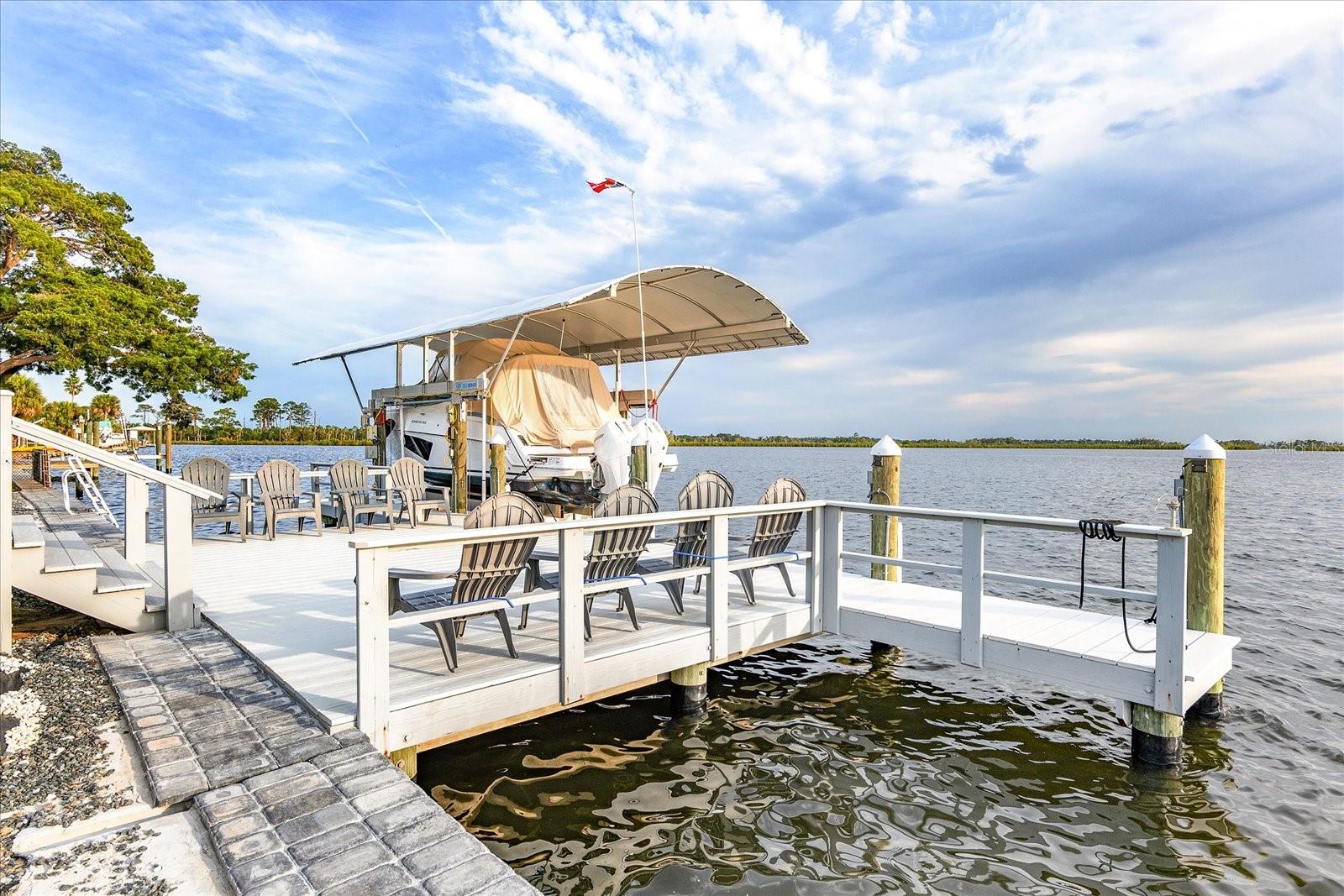 Booming town of Crystal River has this water front property situated beyond the city limits, this property presents a prime opportunity for lucrative investment through short-term rental platforms such as Airbnb or VRBO, offering an additional stream of income for savvy investors. Embark on aquatic adventures just moments from your doorstep, with easy access to the Gulf of Mexico for exhilarating scalloping and fishing excursions, or journey to The Crystal River and Kings Bay to swim alongside majestic manatees or explore the enchanting freshwater springs. In addition, every set of windows includes storm shutters that will seal the entire home protecting it from mother nature. A new set of flood barriers (DAM EASY) are included for the 3 exterior doors. The home includes a security camera system that you can control and oversee from anywhere in the world. . Immerse yourself in the essence of coastal luxury at this remarkable property, perfectly situated along the pristine shores of Dixie Bay. This turnkey home, impeccably designed with meticulous attention to detail, offers a haven of comfort and style. Relax in the welcoming living area, featuring a charming fireplace, or host gatherings in the newly renovated gourmet kitchen. Boasting a large island, premium appliances, custom cabinetry, and granite countertops, this culinary haven is bathed in natural light streaming through the expansive windows that showcase the breathtaking bay views. A second living area features this wall of windows with stunning waterfront views and adjoins the spacious master, with large closet and bath. Three other bedrooms and two bathrooms are on the other side of the home. The home is newly renovated with designer tile, including 18” tile baseboards throughout the house and is the perfect juxtaposition of modern and charming. Savor the beautiful sunsets from your sprawling waterproof composite deck (approx. 2700+/- sq. ft.) as you embrace the true essence of coastal living. An additional extension of 16x24 dock, complemented by a covered 13000lb capacity boat lift, effortlessly caters to your boating needs, accommodating various vessels from V-boats to Tritons and Pontoons. When it comes to security and protection, the home has new exterior hurricane proof doors. Other updates to give you peace of mind include a newer A/C system installed in 2018 and a metal roof added in 2021. Seize this rare opportunity to own a piece of waterfront paradise and elevate your lifestyle to new heights of luxury. Schedule your private showing today and take the first step towards realizing your dream of coastal living at its finest.
