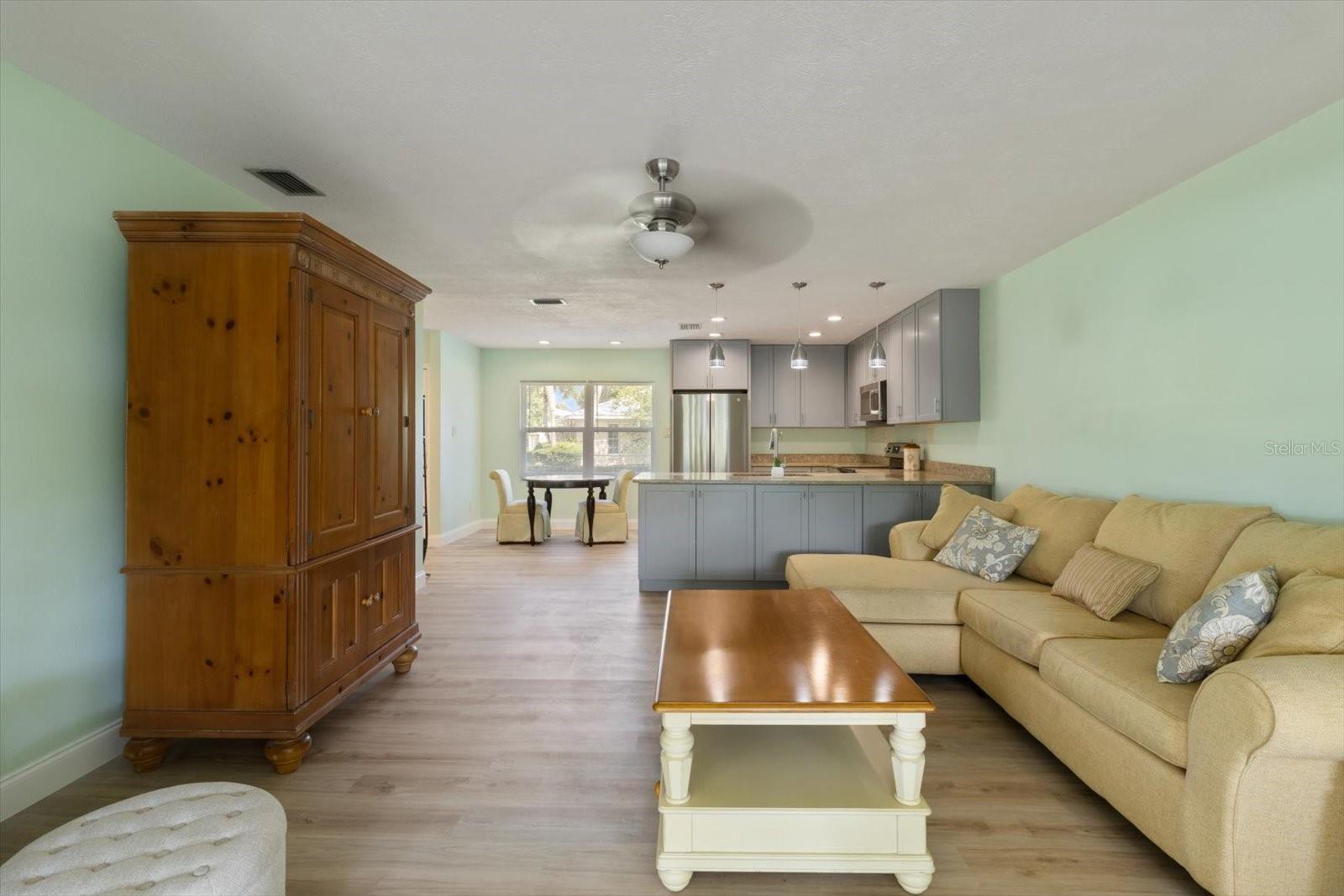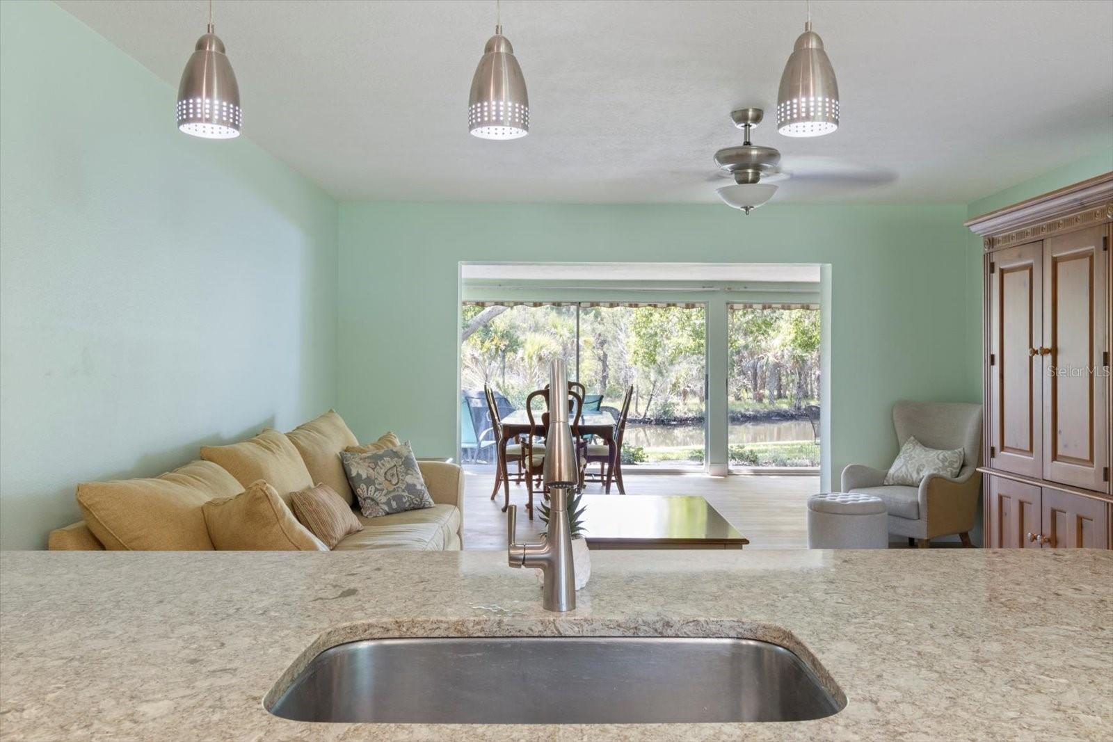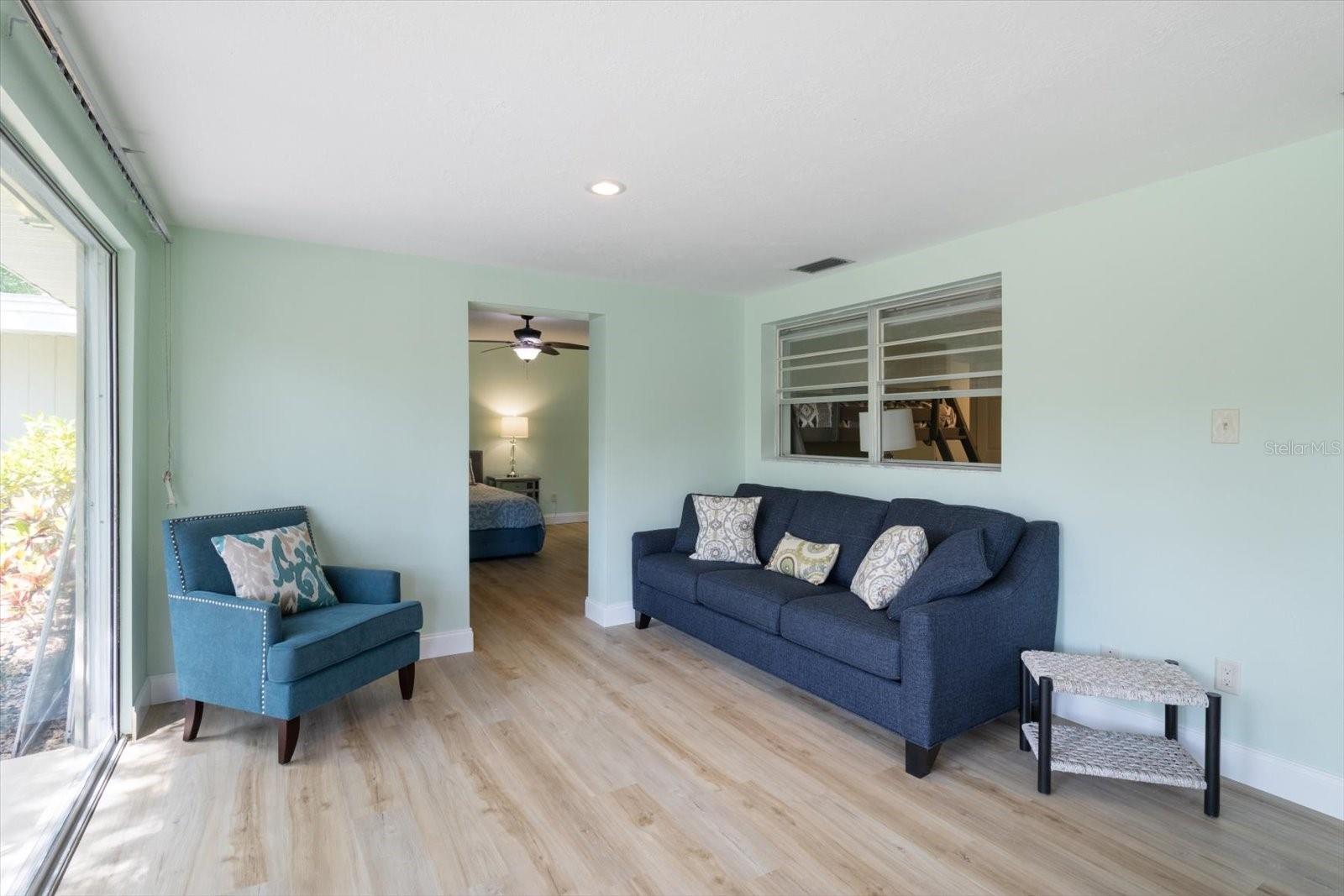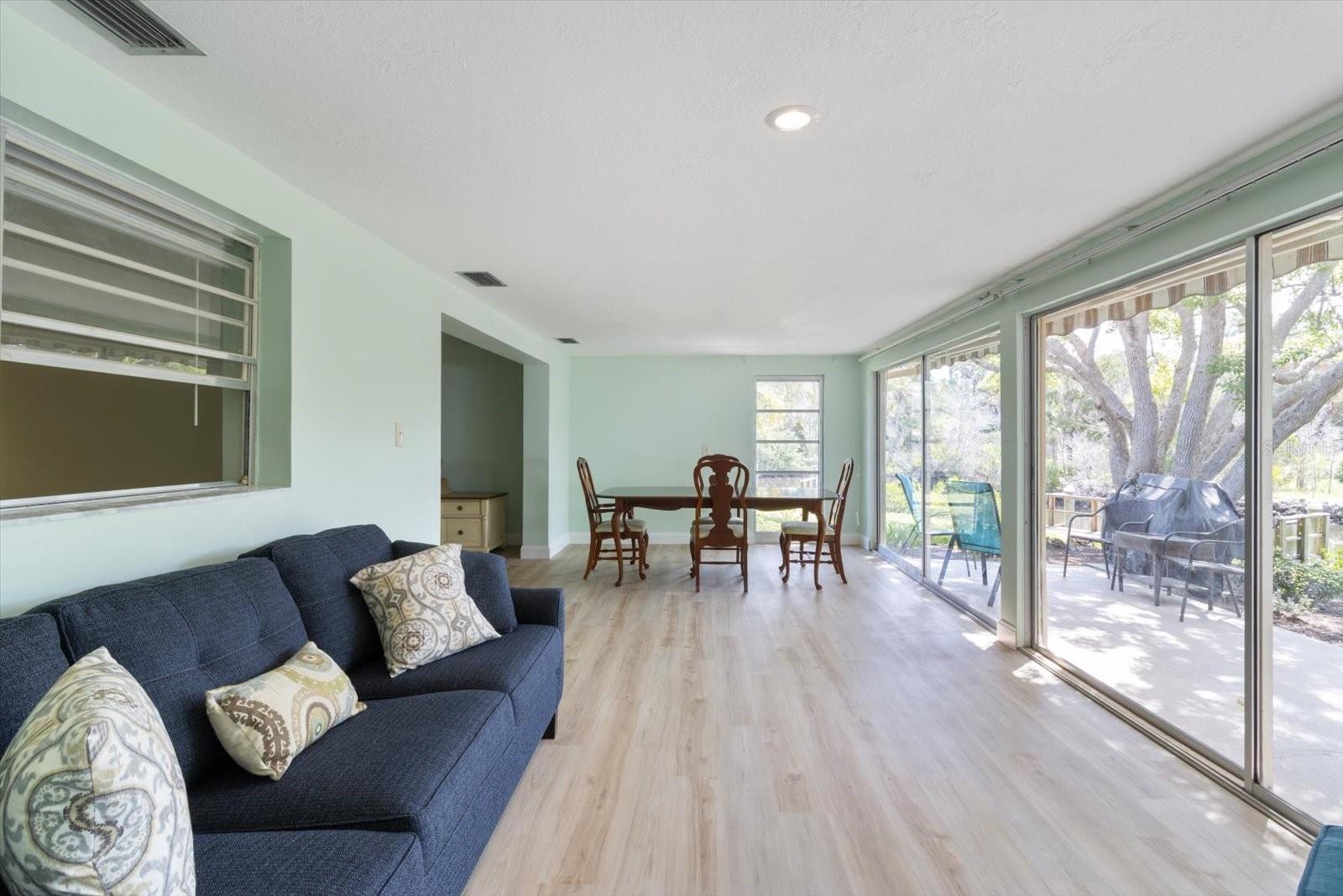 Welcome to the fabulous waterfront villa you've been dreaming of! Located in The Islands of Dixie Shores, this beautiful 2 bedroom, 2 bath condo has been completely renovated, is fully furnished and looks like pages of a magazine. Located on the end, this corner unit offers more privacy and seclusion. Panoramic sliders offer so much natural light. You will love the modern kitchen with quartz countertops and brand new appliances. Luxury Vinyl Plank throughout the house gives this home a bright coastal vibe. Both bedrooms have views of the water and both offer plenty of space. Take in the breathtaking views of the water from every turn. Bathrooms feature beautiful cabinets and tile. The layout of this home is just right for entertaining friends and family. Watch the game in the living room, take in the views of the water from the dining room, sip wine from the Florida room or dine al fresco - this home defines the Florida Lifestyle! The HOA fee includes reroofing (just complete in 2021) and flood insurance, as well many other amenities like a swimming pool, tennis courts and more. ***new sliders and front door to be installed this summer. *** all measurements are estimates and must be verified by buyer