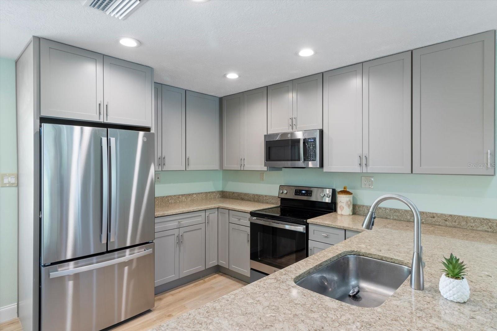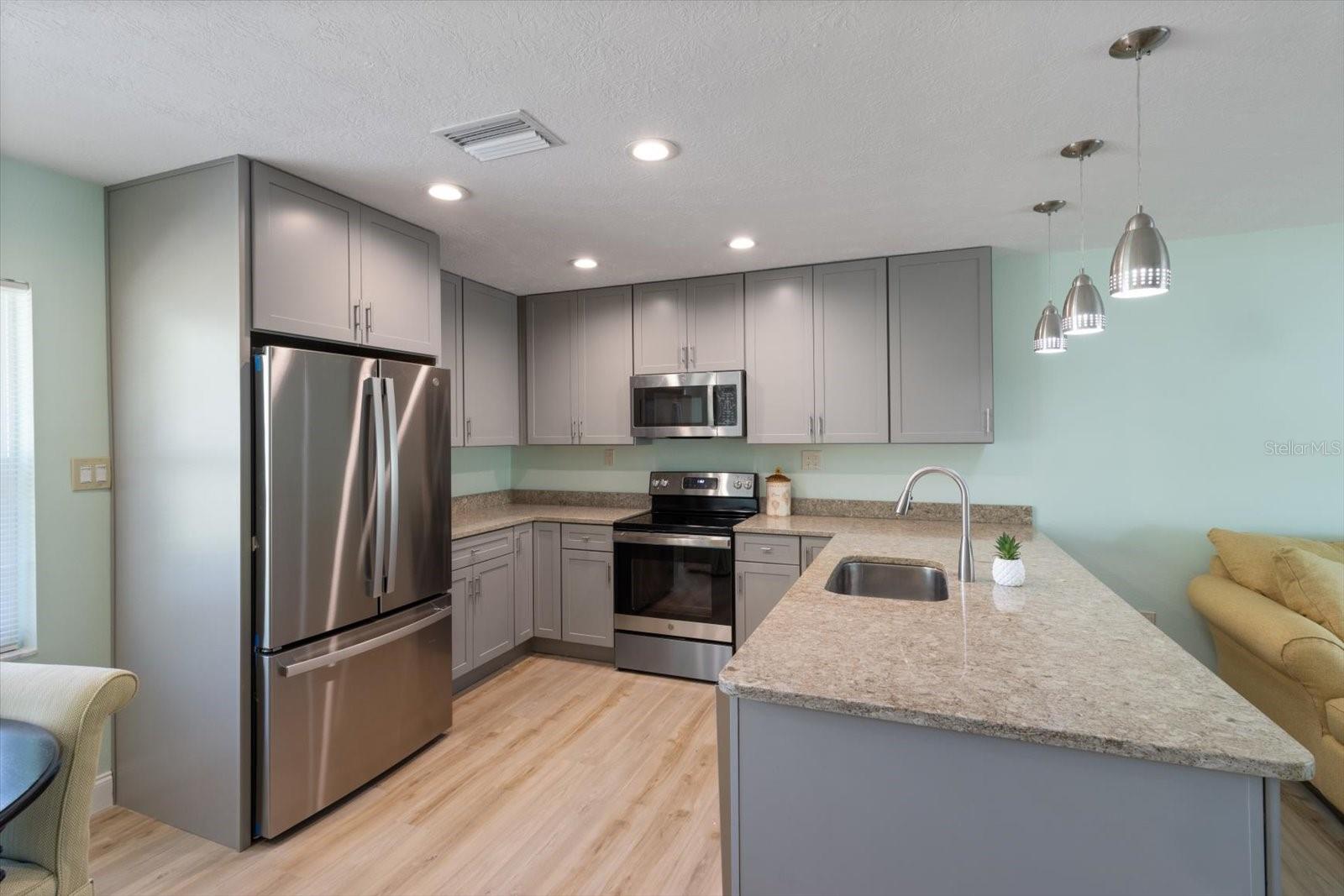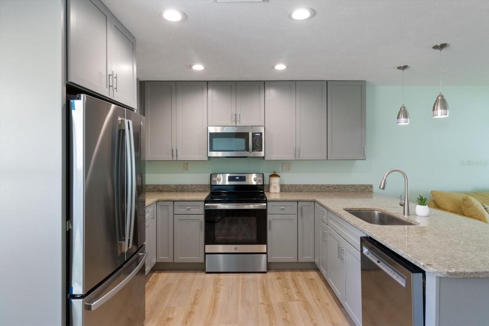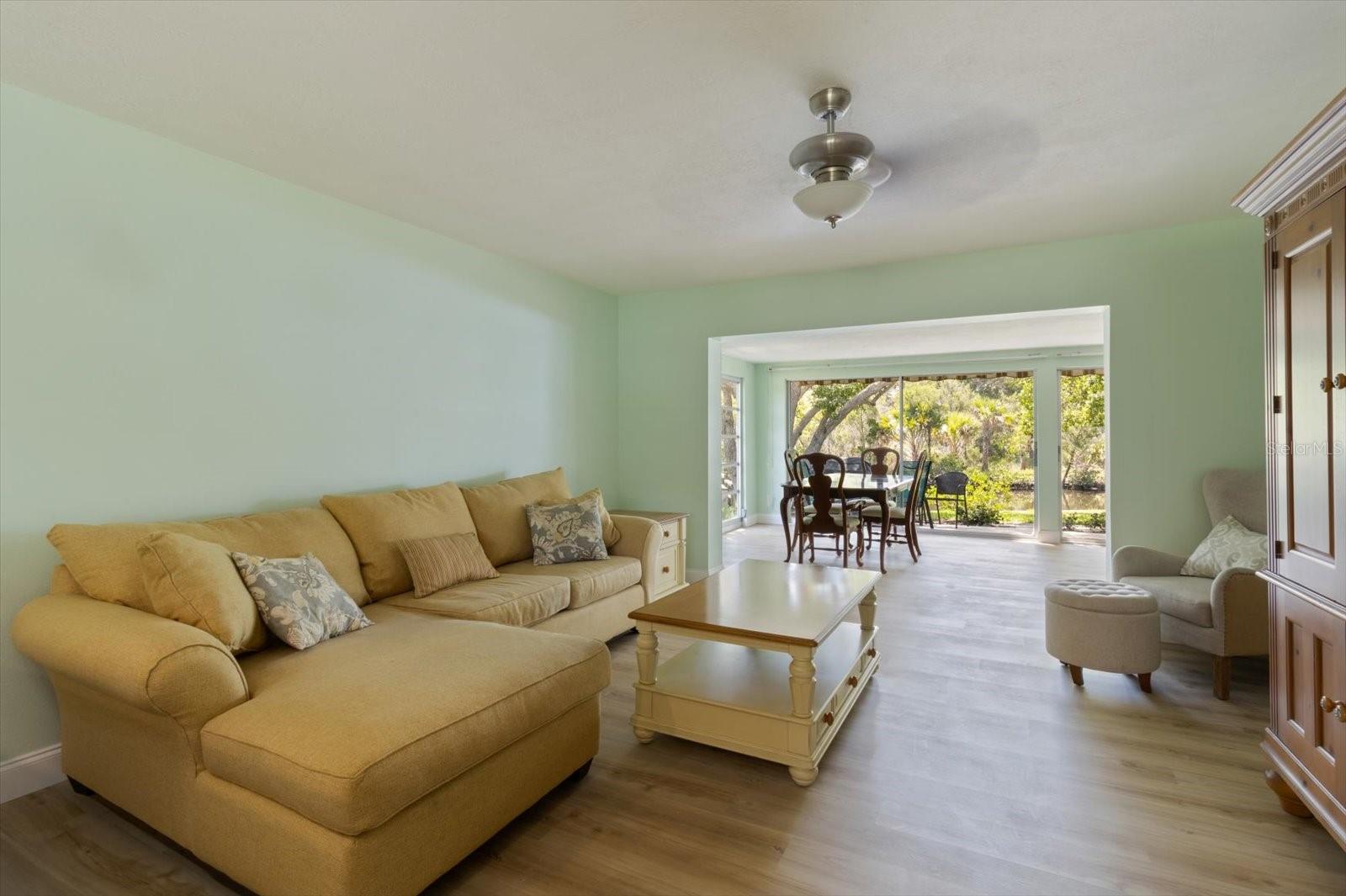 Welcome to the fabulous waterfront villa you've been dreaming of! Located in The Islands of Dixie Shores, this beautiful 2 bedroom, 2 bath condo has been completely renovated, is fully furnished and looks like pages of a magazine. Located on the end, this corner unit offers more privacy and seclusion. Panoramic sliders offer so much natural light. You will love the modern kitchen with quartz countertops and brand new appliances. Luxury Vinyl Plank throughout the house gives this home a bright coastal vibe. Both bedrooms have views of the water and both offer plenty of space. Take in the breathtaking views of the water from every turn. Bathrooms feature beautiful cabinets and tile. The layout of this home is just right for entertaining friends and family. Watch the game in the living room, take in the views of the water from the dining room, sip wine from the Florida room or dine al fresco - this home defines the Florida Lifestyle! The HOA fee includes reroofing (just complete in 2021) and flood insurance, as well many other amenities like a swimming pool, tennis courts and more. ***new sliders and front door to be installed this summer. *** all measurements are estimates and must be verified by buyer