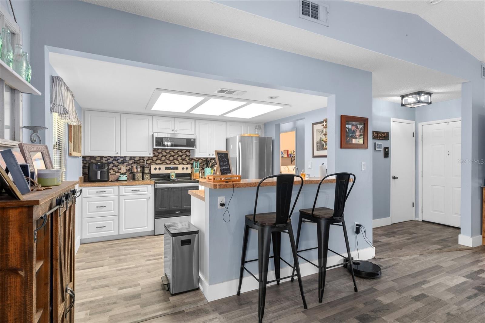 Assumable FHA Loan at 5.625% interest rate! Flood-free from recent hurricanes. Backing up to the 27,500-acre Crystal River State Preserve, discover this beautifully remodeled home that stands out in your search with its contemporary finishes and thoughtful design. Featuring 2-bed, 2-bath split floor plan, this residence offers abundant storage, vaulted ceilings in the living area, and sleek laminate flooring paired with tall baseboards throughout. Guest bath has been tastefully updated, boasting a solid wood countertop and a shower with an extra-long storage niche—perfect for your essentials. The kitchen, remodeled in 2019, showcases stainless-steel appliances (including a fridge, microwave hood, and range) and stylish wood cabinets, making it a joy for any home chef. The HVAC system was replaced in 2009, the new roof, lift kit and drain field were installed in 2022. Energy efficiency is a highlight, with double-paned windows and extra insulation in the garage attic keeping utility costs low. A unique feature of this property is the split 2-car garage: one half is currently set up as a storage space, while the other half is finished to match the home's interior, offering a versatile 18x9ft bonus space. It can easily be converted back to a full garage if desired. Step outside to your expansive entertainment pad at the back of the home, complete with stylish privacy panels, where you can enjoy the serene setting. Just a street over, the Eco-Walk Trailhead provides access to a scenic 7-mile trail system. The fully fenced backyard is perfect for your furry friends, & a shed offers addl. storage for the well pump and water softener system. Located just 4.5 miles north of downtown Crystal River, Indian Woods is a charming community with minimal development and no deed restrictions. Enjoy easy access to the best of the Nature Coast, including world-class fishing, stunning natural springs, and the chance to spot famous manatees. The sellers are motivated, —schedule your appointment today!