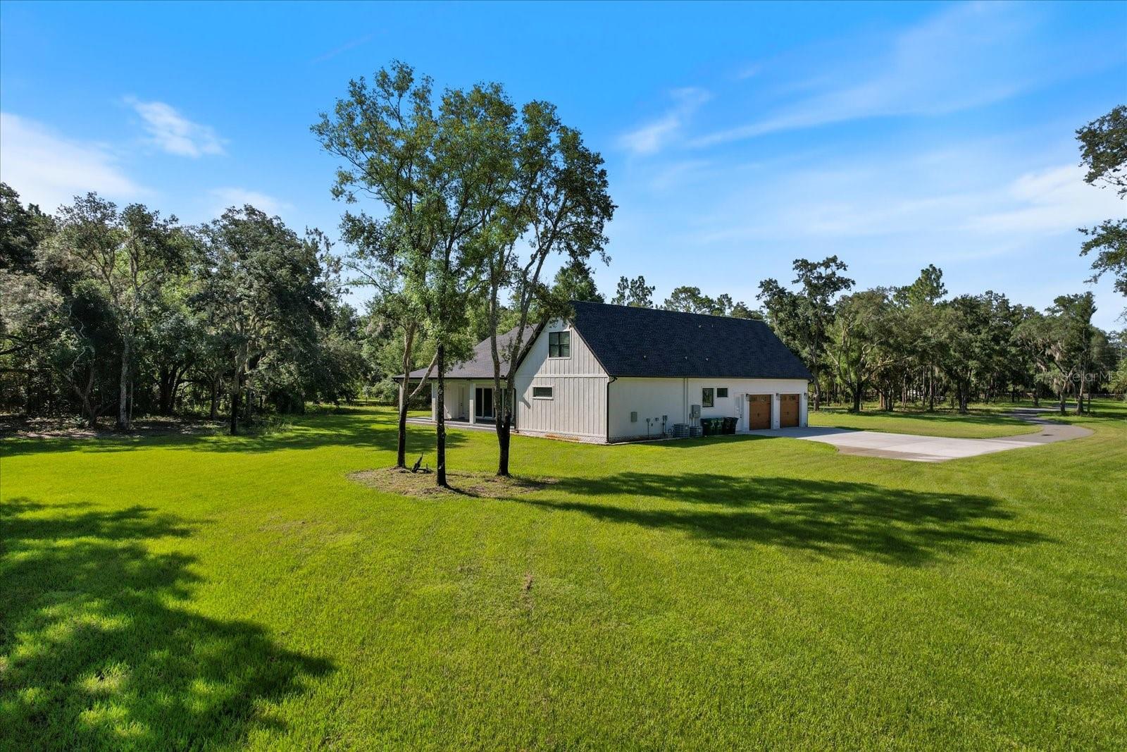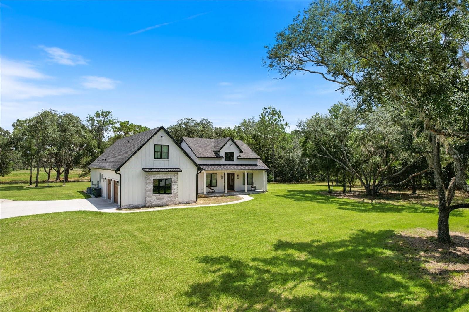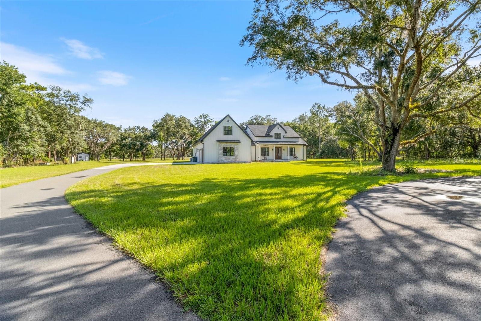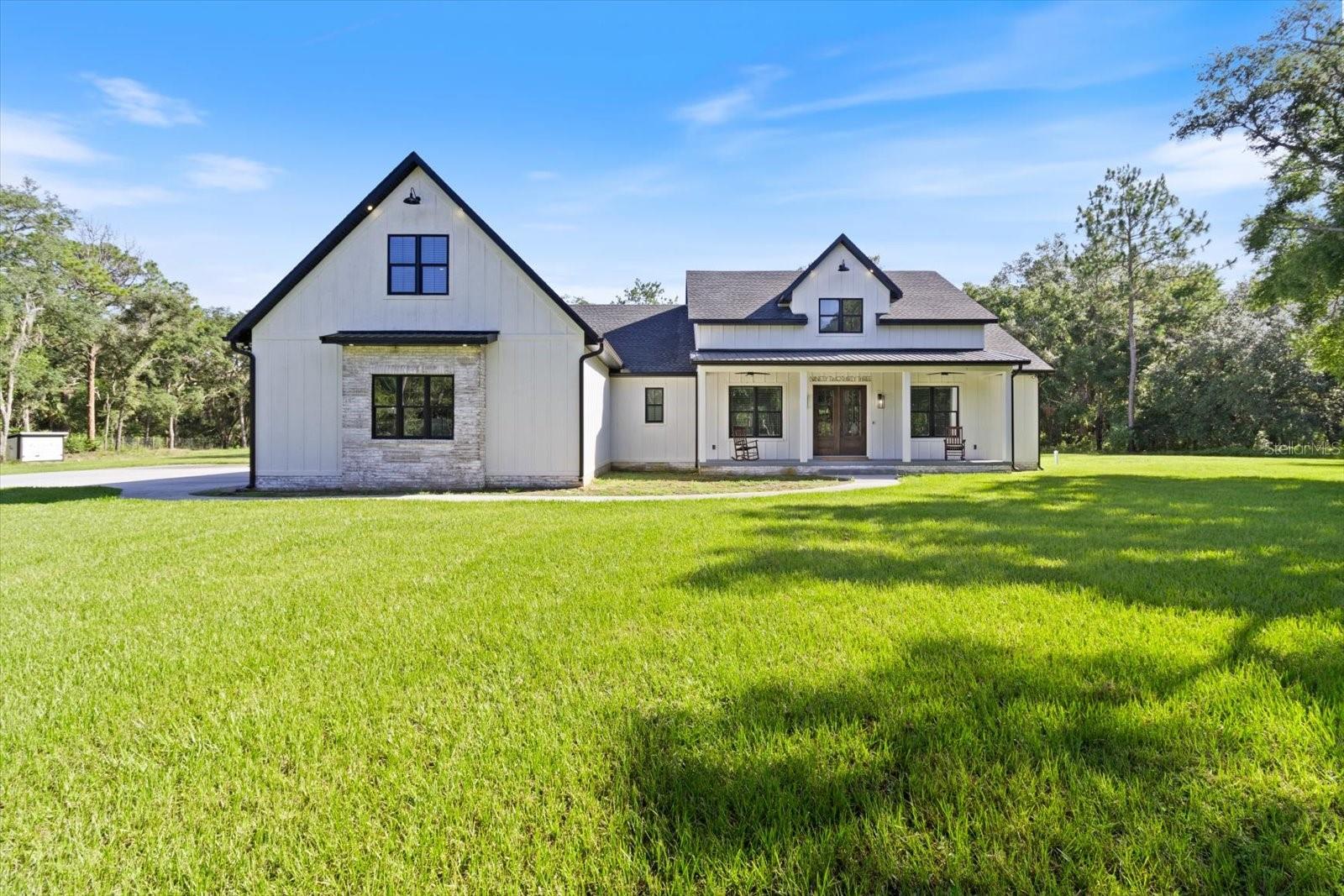 Amazing opportunity to own a recently built, Stunning Custom Farmhouse in Crystal River's Shamrock Acres Subdivision. Completed in 2023, this homestead is nestled in the serene and private setting of the exclusive Shamrock Acres subdivision in Crystal River, Florida, This exquisite property spans 5.85 acres, providing endless opportunities for outdoor activities and peaceful relaxation.. This home offers high ceilings throughout with red oak beams and custom red oak doors in the living area with a large open concept which fosters a spacious and friendly ambiance. The floor to ceiling gas fireplace is a focal point of the open living room with a cooking enthusiasts dream of a kitchen featuring a 10' island, quartz countertops, 6 burner gas range with commercial hood and pot filler. 4 bedrooms and 3 baths are located downstairs with a large game/media room, large office and a full bath upstairs. Adjoining the master bath is the large laundry room with plenty of cabinet space. Another bonus is the oversized garage with ample space and 8' tall insulated doors. Just minutes from several state parks, hiking / biking trails, rivers, lakes, fresh water springs and the Gulf of Mexico. Enjoy world class fishing, boating, swimming, diving, paddleboarding, kayaking, scalloping AND swim with our world famous manatees! Quiet, small town living, while only being a 1 hour drive to Tampa and 1.5 hour drive to Orlando! Don't miss the chance to own this unique gem in the heart of Crystal River. Schedule your private tour today and experience the exceptional lifestyle that awaits you at Emerald Oaks.