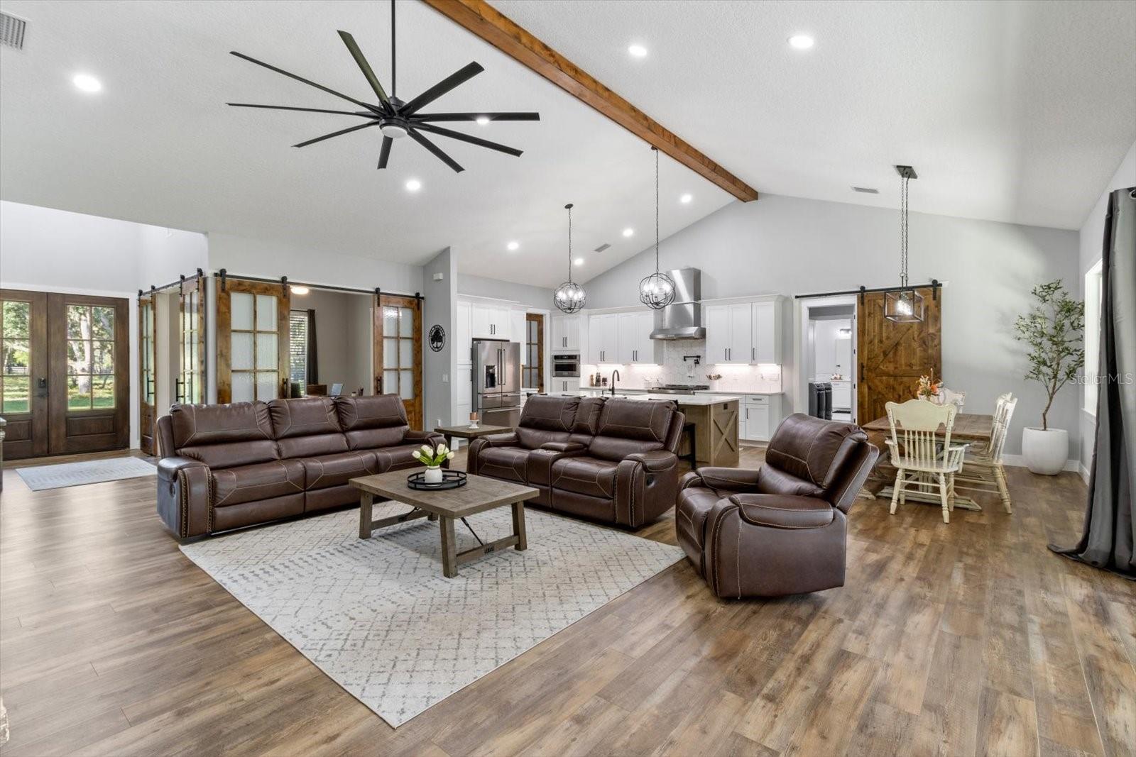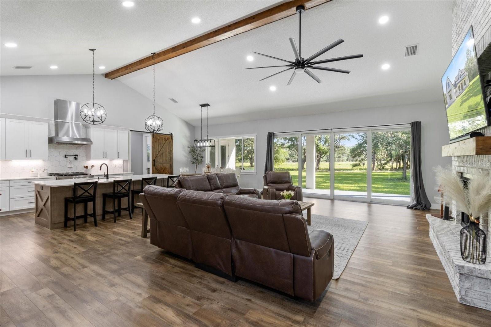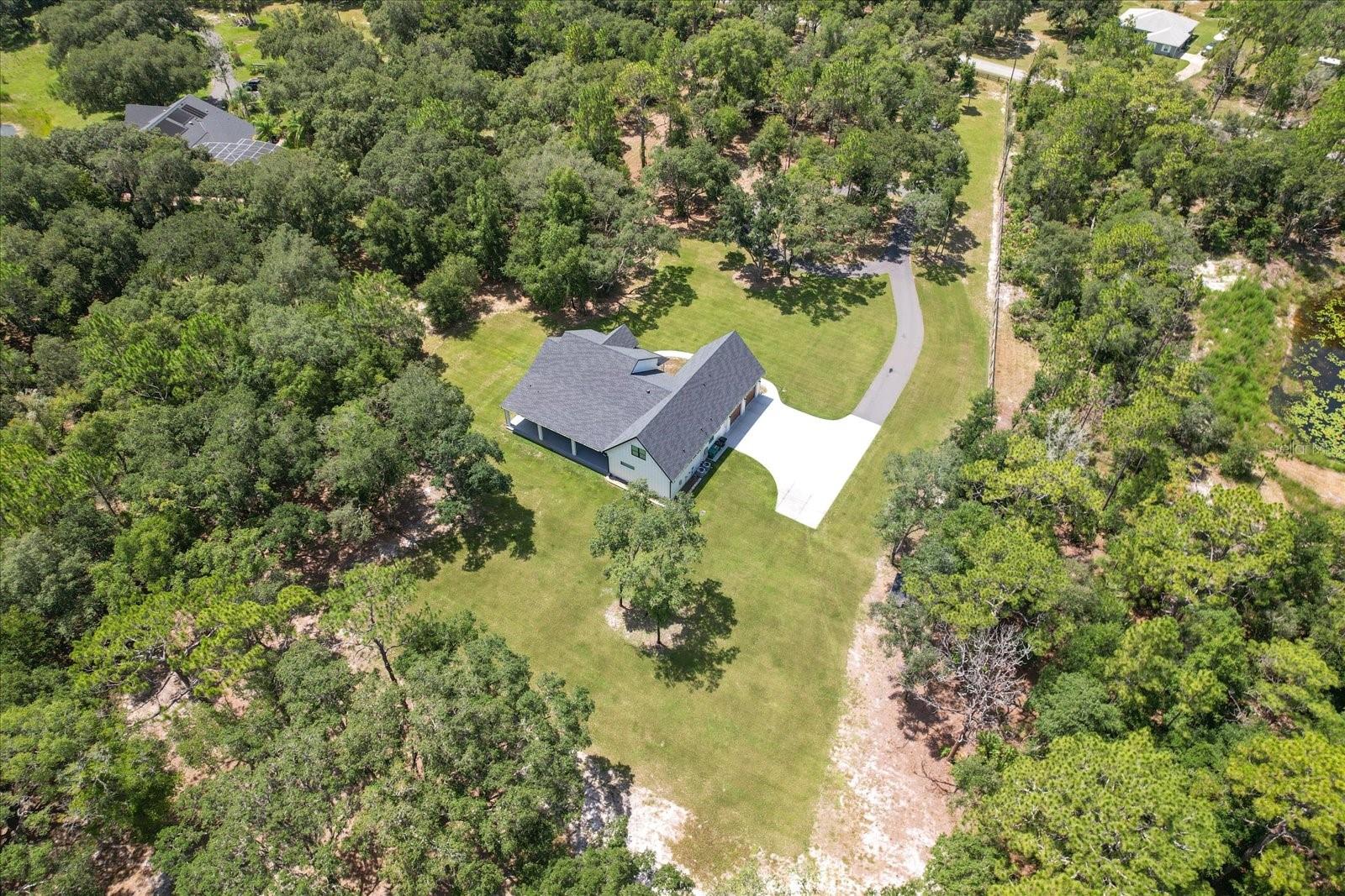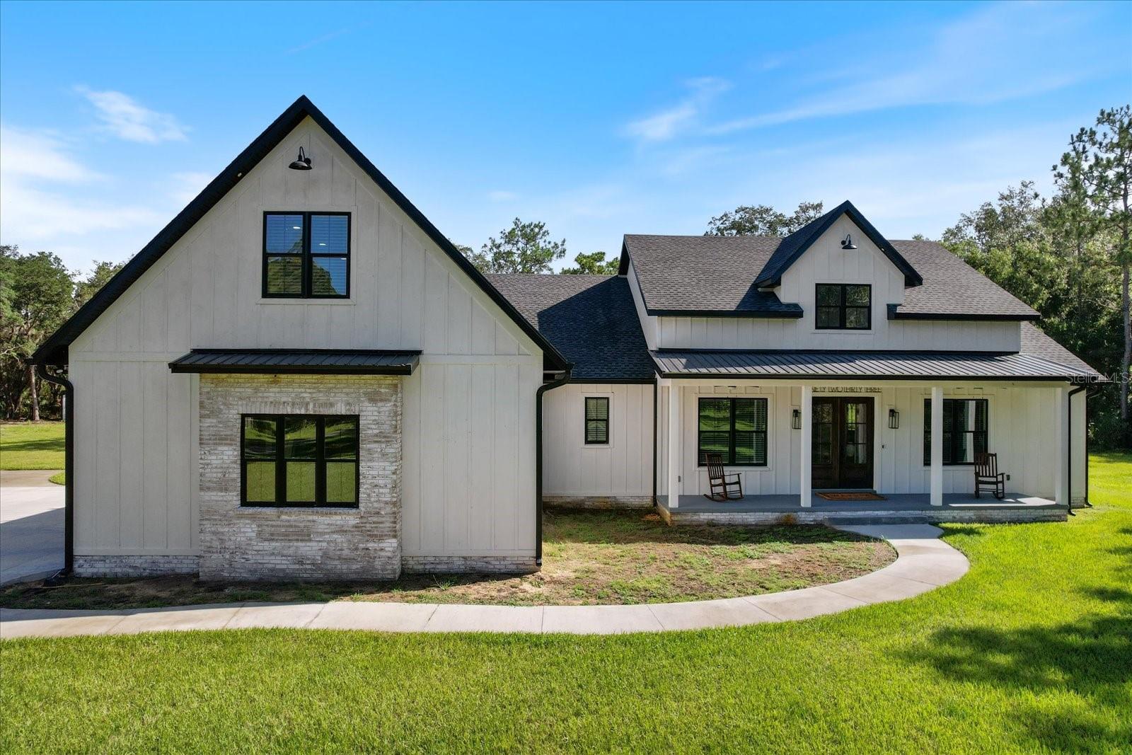 Amazing opportunity to own a recently built, Stunning Custom Farmhouse in Crystal River's Shamrock Acres Subdivision. Completed in 2023, this homestead is nestled in the serene and private setting of the exclusive Shamrock Acres subdivision in Crystal River, Florida, This exquisite property spans 5.85 acres, providing endless opportunities for outdoor activities and peaceful relaxation.. This home offers high ceilings throughout with red oak beams and custom red oak doors in the living area with a large open concept which fosters a spacious and friendly ambiance. The floor to ceiling gas fireplace is a focal point of the open living room with a cooking enthusiasts dream of a kitchen featuring a 10' island, quartz countertops, 6 burner gas range with commercial hood and pot filler. 4 bedrooms and 3 baths are located downstairs with a large game/media room, large office and a full bath upstairs. Adjoining the master bath is the large laundry room with plenty of cabinet space. Another bonus is the oversized garage with ample space and 8' tall insulated doors. Just minutes from several state parks, hiking / biking trails, rivers, lakes, fresh water springs and the Gulf of Mexico. Enjoy world class fishing, boating, swimming, diving, paddleboarding, kayaking, scalloping AND swim with our world famous manatees! Quiet, small town living, while only being a 1 hour drive to Tampa and 1.5 hour drive to Orlando! Don't miss the chance to own this unique gem in the heart of Crystal River. Schedule your private tour today and experience the exceptional lifestyle that awaits you at Emerald Oaks.