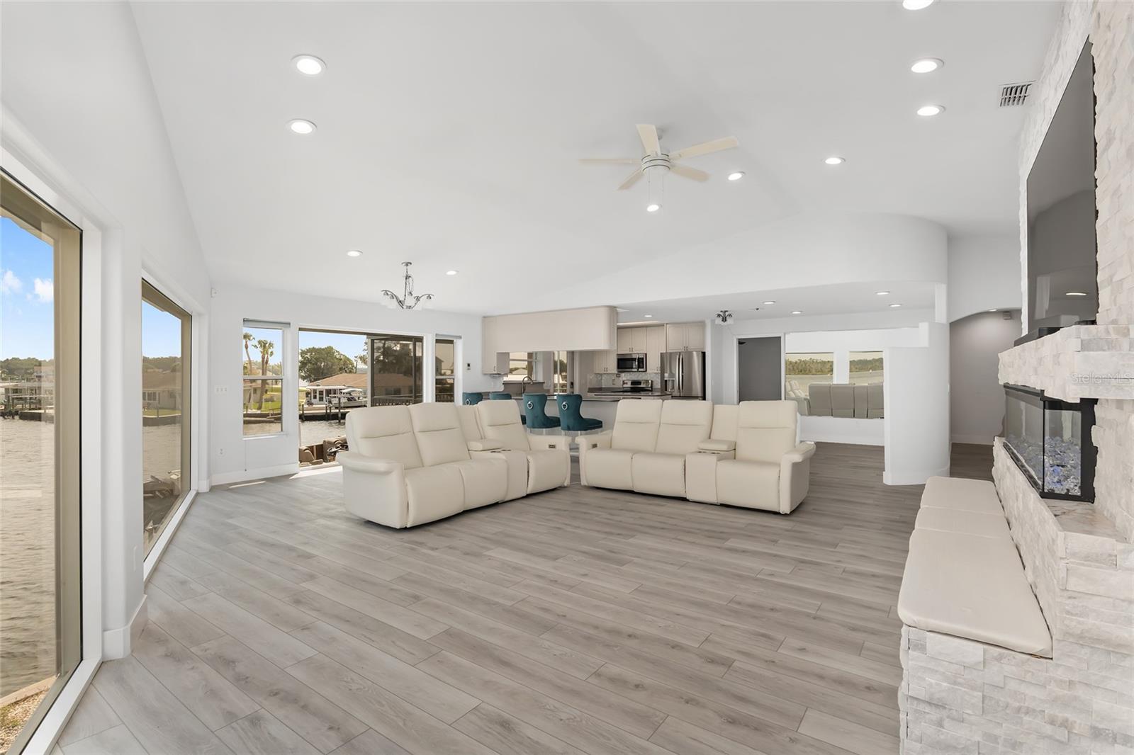 The main living area was not affected by flooding from HELENE.NO FEMA claim will be made as a result of Helene. OWNER FINANCING AVAILABLE AT A 5.5 INTEREST RATE! Watch the manatees and dolphins play in your backyard overlooking BREATHTAKING VIEWS on a nice corner lot directly on Crystal River. NO HOA & Approved for SHORT TERM RENTAL. Check out the video tour link found under facts and features. It is rare for a home like this to come available on the main river. The second floor living space was initially built up in 1994 and was beautifully remodeled in 2024 with luxury vinyl plank flooring, updated bathrooms, new fans and fixtures, brand new appliances, and a stunning fireplace. Home includes built-in electric hurricane shutters, security system in place with motion detector for the exterior of the home, a screened-in cargo lift, built-in home vacuum and flood gates for the 1st floor. The master bedroom has a large window with a great view of the river, the master bath comes with his and her sinks and a large walk-in closet. The kitchen features views of the river, corian countertops and stainless steel appliances. A large screened porch upstairs provides a peaceful place to enjoy the sunrises and sunsets while sipping on your favorite beverage. Downstairs has a workshop and plenty of room for storage or create your own game room, man cave or use for entertaining. Play pool while enjoying the expansive open water view. Nice downstairs covered porch which is right on the water. Boat lift with composite deck and floating dock, seawall with reinforced concrete and 3 ft. cap redone in 2014. New Drain Field in 2022, Quick access to the gulf or a day in the spring. AC - 3 years. Brand new surge protector. Spacious 2 car garage with room to park 4 vehicles in the driveway. Don't miss out on this one, won't last long! Schedule your showing today!
