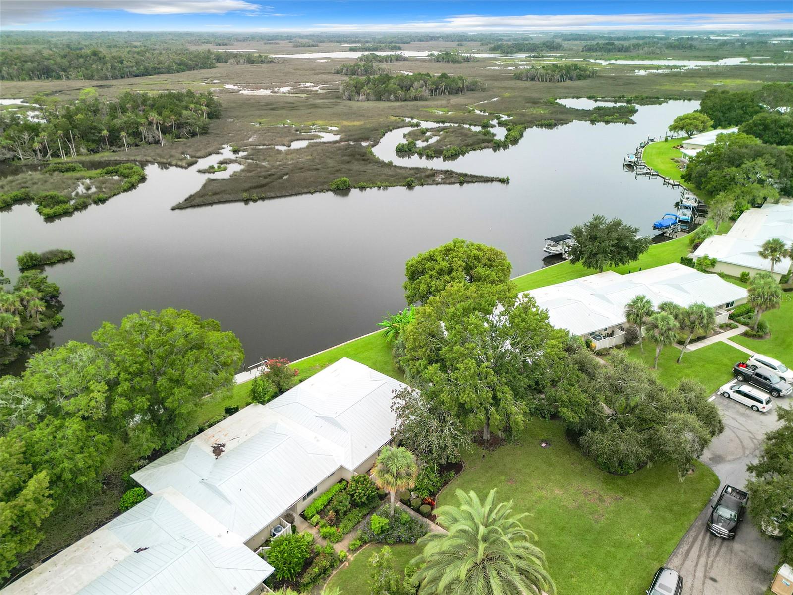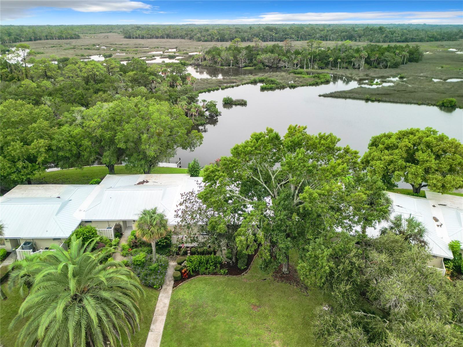 WATERFRONT, END UNIT 2 bed/2 bath home with a new composite board PRIVATE DOCK built in 2022 and a lovely unobstructed view of open water and Florida wildlife. MOVE-IN READY. This home was just totally renovated by the owner's CUSTOM BUILDER to include granite kitchen countertops and tile backsplash. Brand new GE appliances, new hot water heater, new washer & dryer. Brand new HURRICAN/IMPACT TINTED WINDOWS and SLIDING DOORS. New metal roof (2022). The rear patio has electric remote awnings with wind & rain sensor/auto retract. Lush tropical landscaping. One of the best water views in the community! Located in Crystal River – the Manatee Capital of the World – on Florida’s Nature Coast, this condo is set against the backdrop of Dixie Bay and the Salt River with direct, no-bridge access to the Gulf of Mexico. Crystal River's waterways are known for world-class fishing, boating, and scalloping. This home is also conveniently near historic Downtown Crystal River restaurants, bars, cafes, shops, Fort Island Beach, and surrounded by state protected waterways and lands. Just over 1 hour from Tampa, Gainesville, and Ocala. We accept international currency and cryptocurrency.