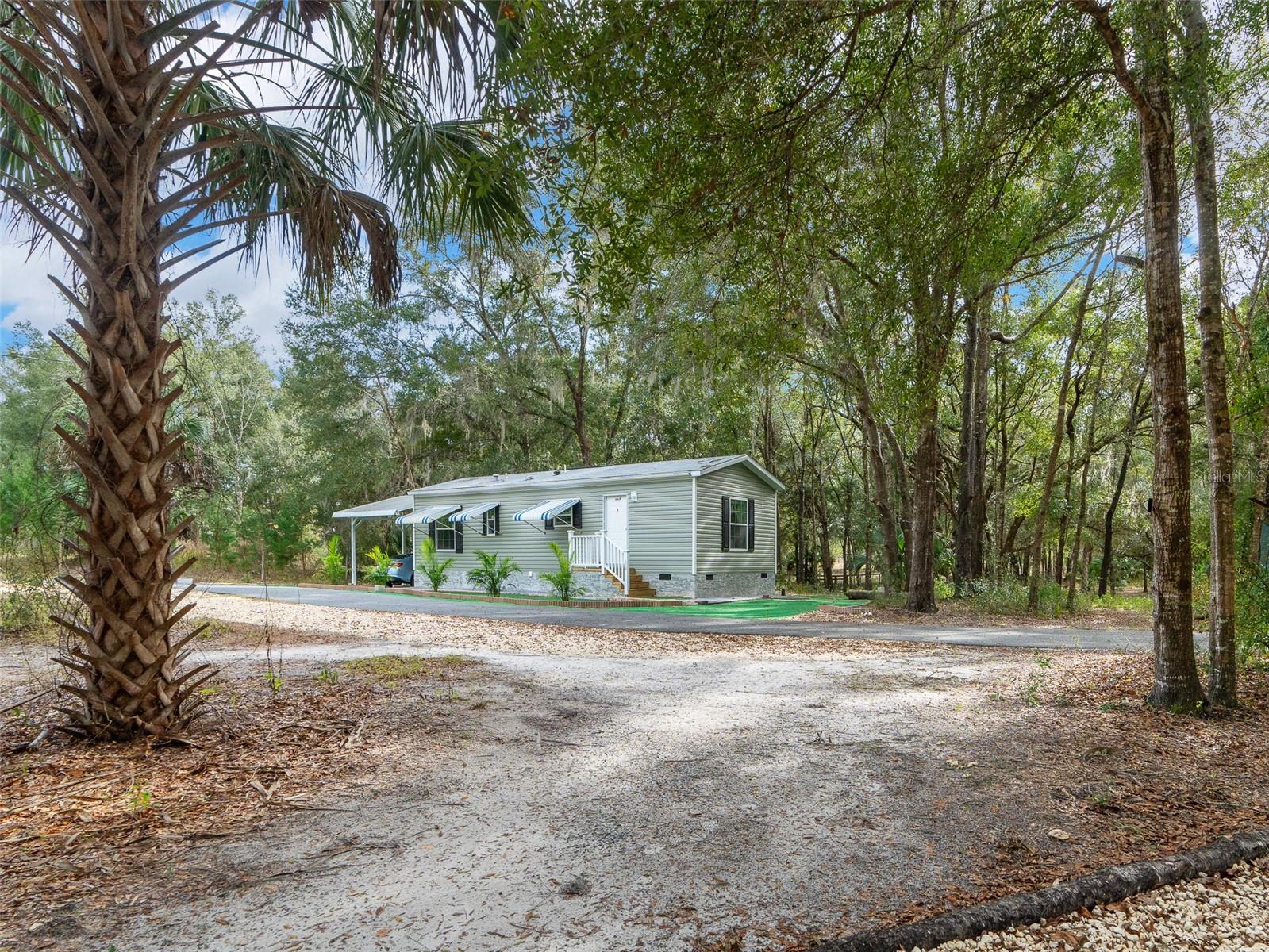 Situated on a gorgeous and private 3.01 acre property this 2-bedroom, 2-bath block home offers the best of both serene countryside living and nearby coastal attractions. With 1,008 SqFt of thoughtfully designed space this residence is the perfect escape from the hustle and bustle, featuring a spacious and functional layout along with an attached two-car garage. Surrounded by majestic oak trees and sable palms, the natural beauty of the landscape provides a tranquil setting, ideal for those who appreciate privacy and the charm of nature right outside their door. An added highlight of this property is a HUD-approved accessory dwelling unit—a fully equipped 1-bedroom, 1-bath home built in 2023 with 720 SqFt of its own living space. Whether you’re looking to create rental income, establish a welcoming Airbnb retreat or provide comfortable accommodations for family members as part of a family compound, this additional unit is ready to meet your needs.The homes have been both rented for $3,400 a month, so perfect for an investment opportunity. For those dreaming of a homestead this property is zoned for farm animals and horses, allowing you to create your own private mini-farm where you can enjoy the peaceful, rural lifestyle. These homes are not only beautiful but built to last! Both homes are Code Approved and inspected for Hurricane Zone 2, ensuring they’re ready for winds up to 140 mph.Positioned in a high and dry location, these homes have never experienced flooding from hurricanes – providing peace of mind in every season. Just 19-miles away is Fort Island Gulf Beach where you can enjoy fishing, boating, sunbathing and endless coastal adventures. Spend your mornings exploring the waters and your afternoons relaxing under the shade of your oak trees back at home—a lifestyle of peace and recreation awaits!