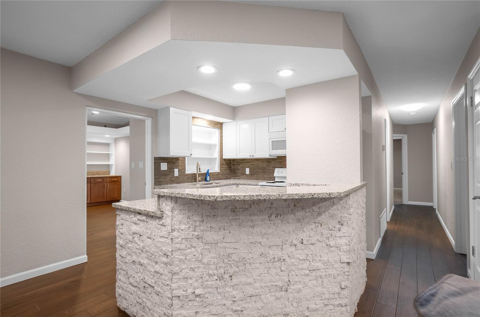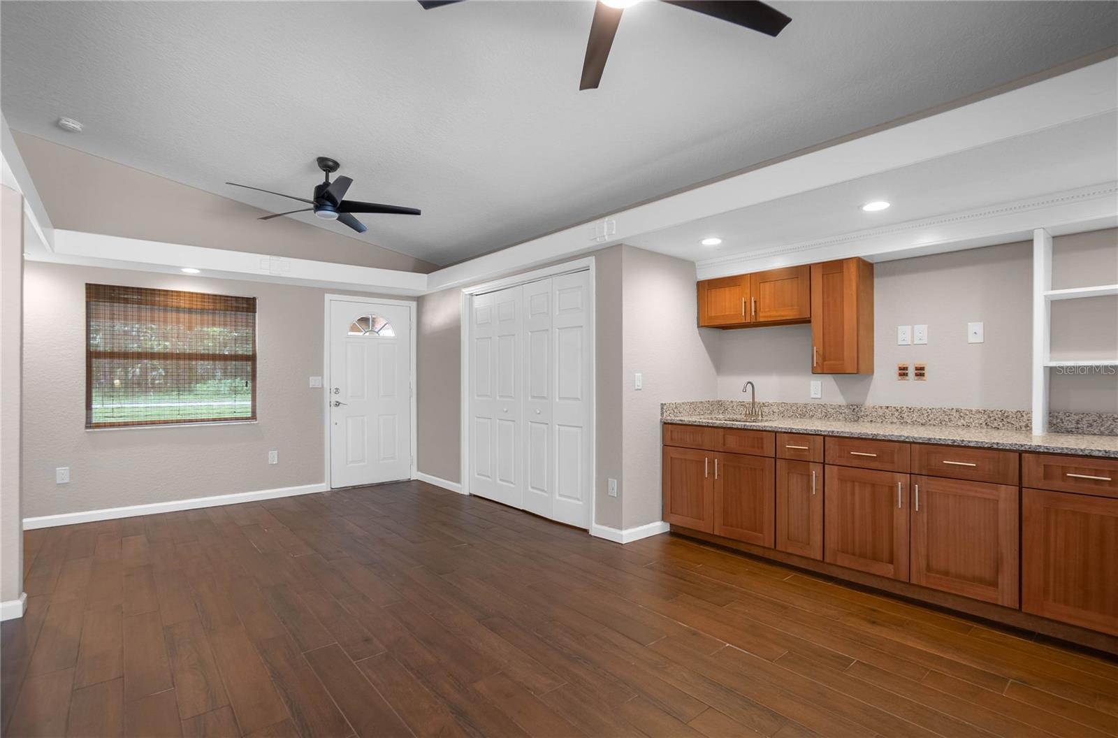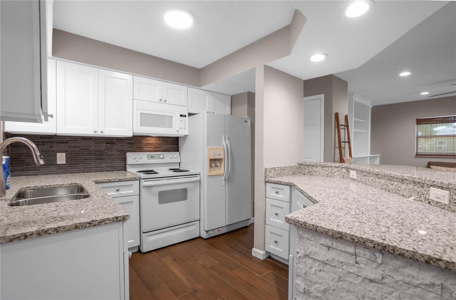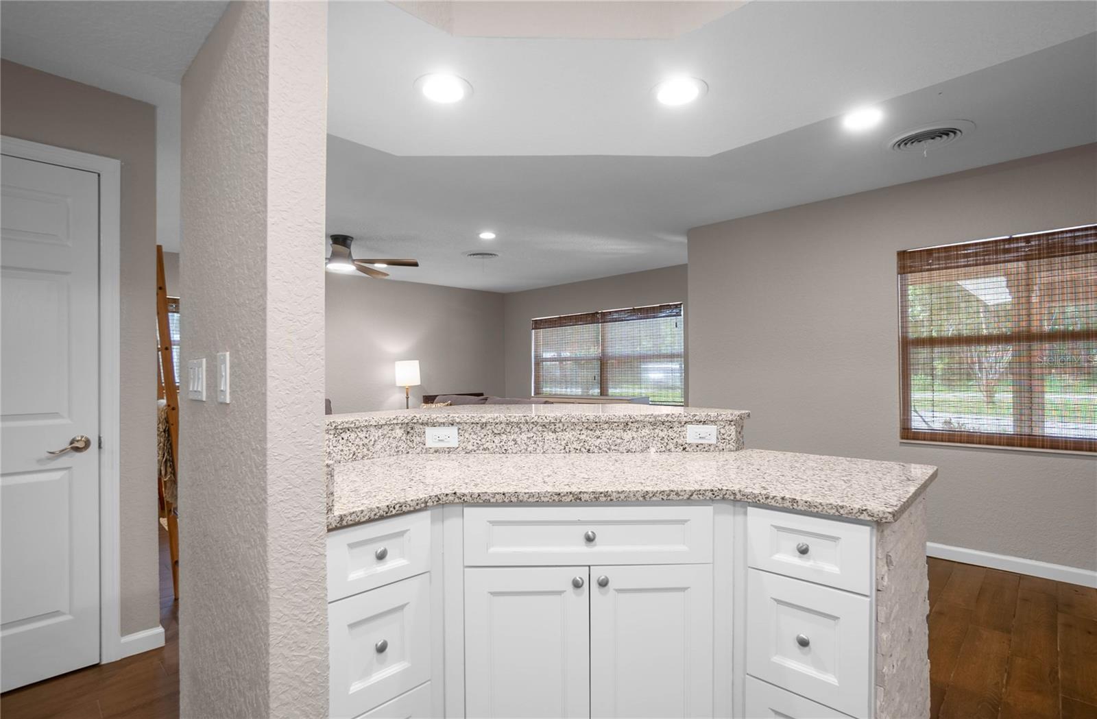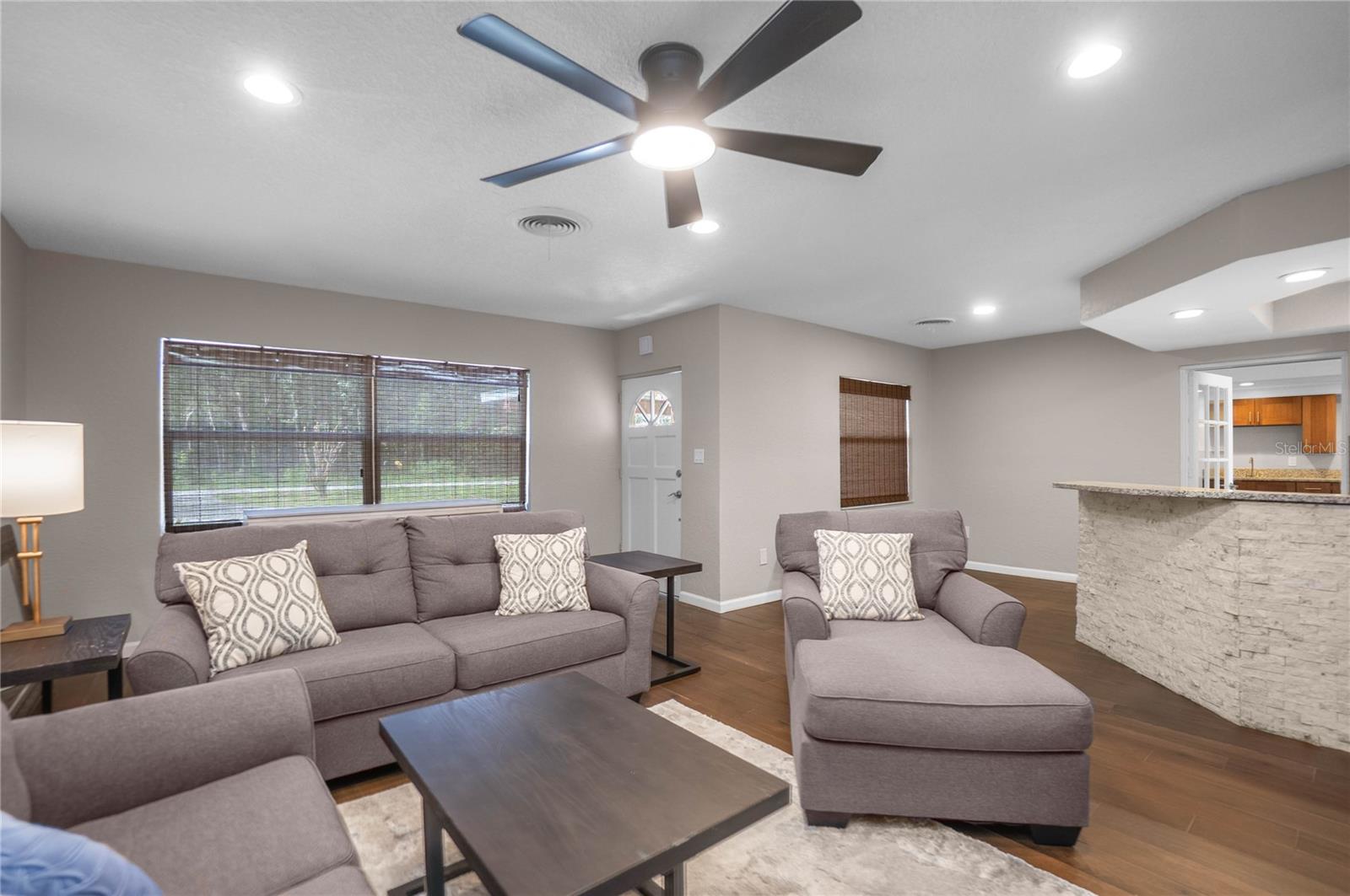 Absolutely charming 3/2 with 1674 square feet of living space nestled on a generous .44-acre parcel in the desirable Woodland Estates Community. Home features a roomy living and dining room combination, perfect for everyday life or entertaining, updated bathrooms & kitchen with white wood cabinetry, granite countertops, breakfast bar, and appliances. Additionally, the home includes a versatile flex room complete with a kitchenette and built-in shelving—ideal for a guest suite, office, or creative space, primary suite with walk-in closet and bathroom. Outdoors present a custom attached double carport, a spacious rear screened patio, circular driveway, storage shed and updated roof & AC. As a resident of Woodland Estates, you’ll also enjoy access to a community boat ramp in lieu of busy public locations, offering easy access to the area's scenic waterways. Don’t miss your opportunity to secure an affordable and move-in ready home for $235,000.